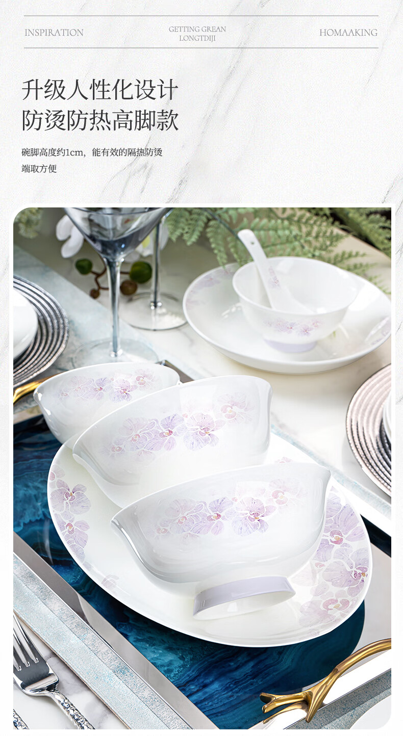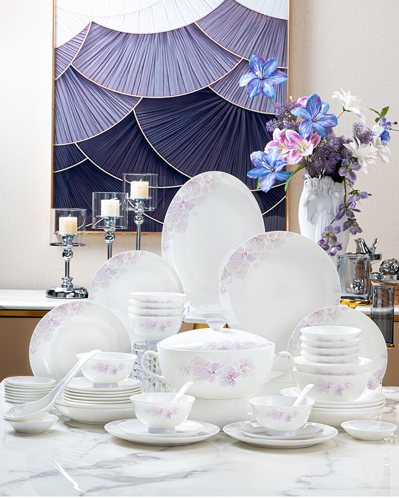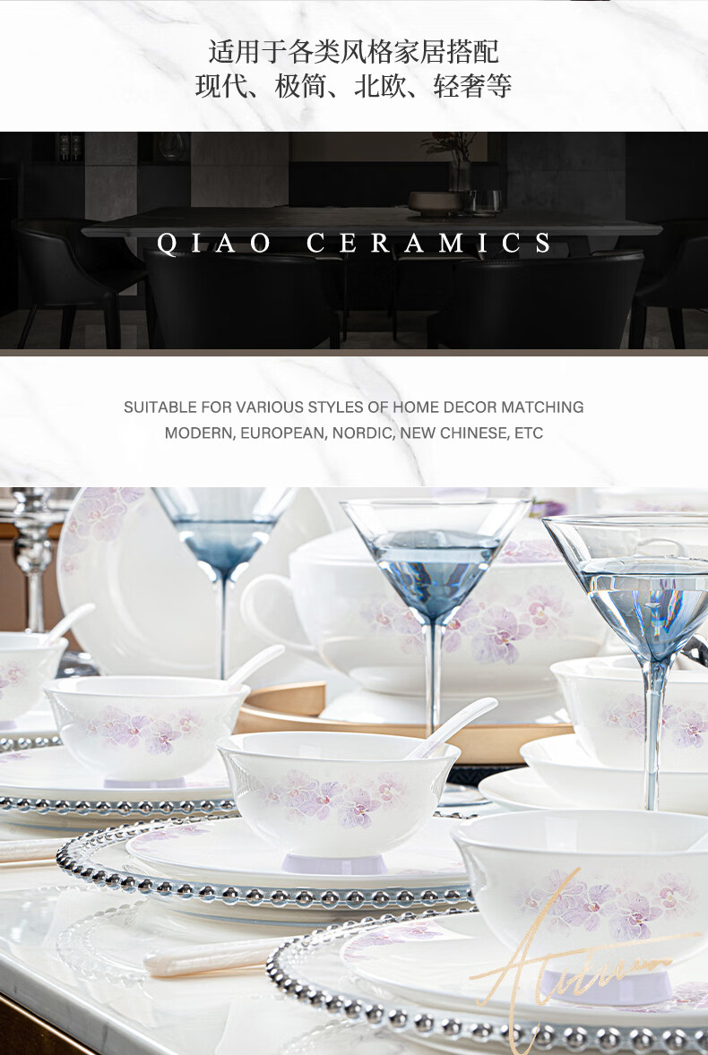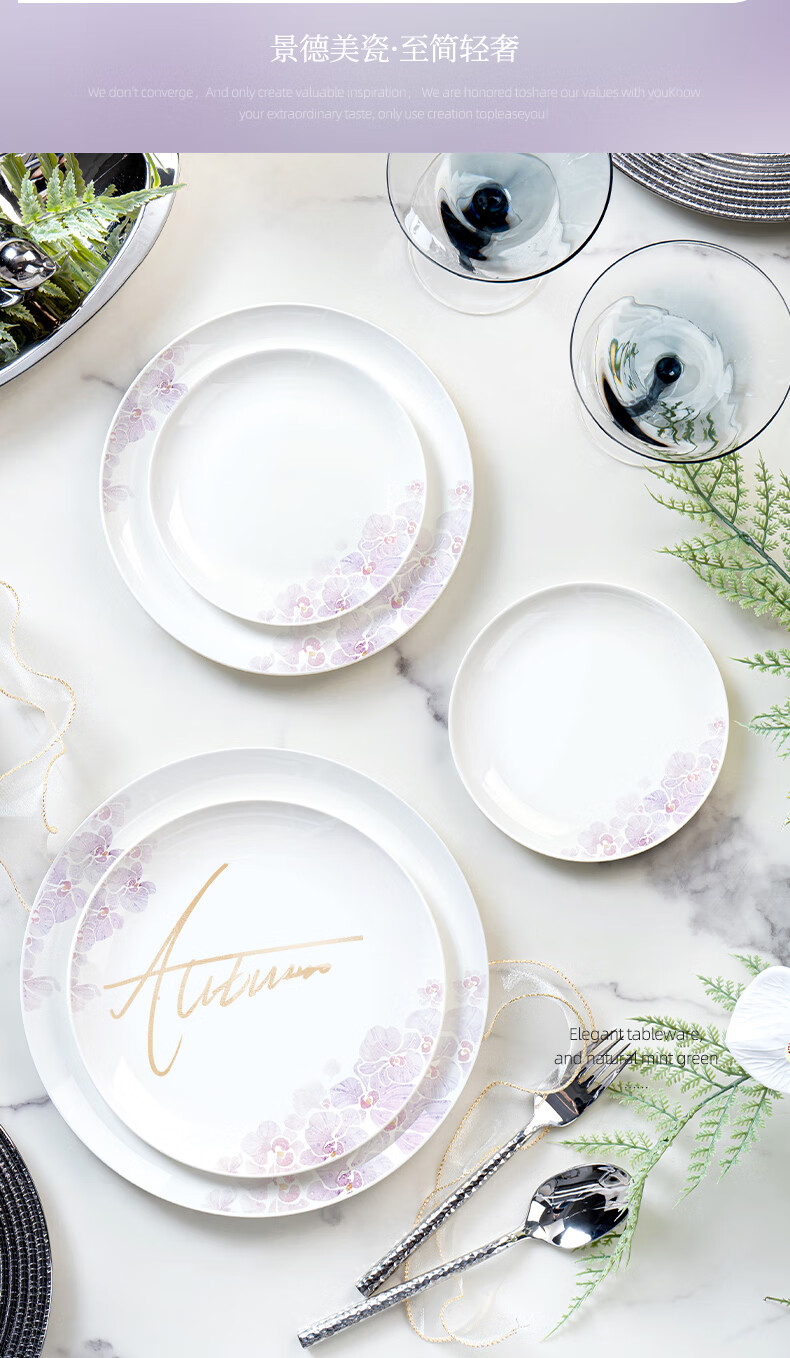 NINE CRANES Jingdezhen 2025 new high-end ceramic bowl set simple home gift light luxury bowl and plate set 66-piece set | high-end gift box | free shipping insurance