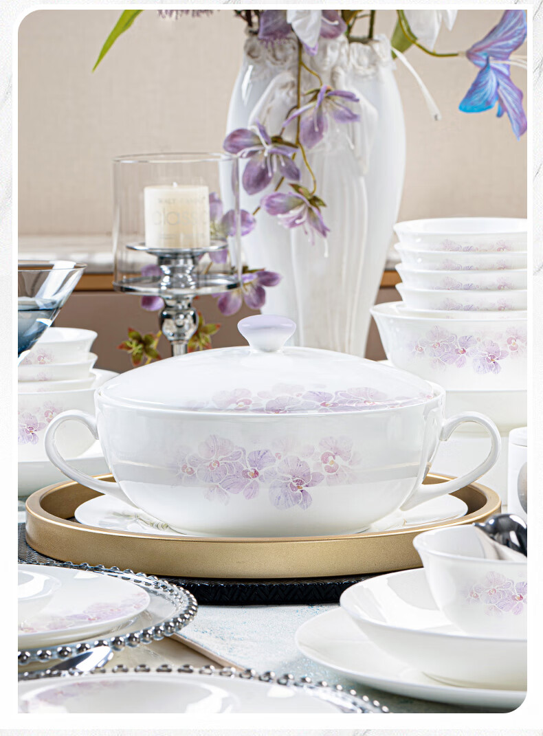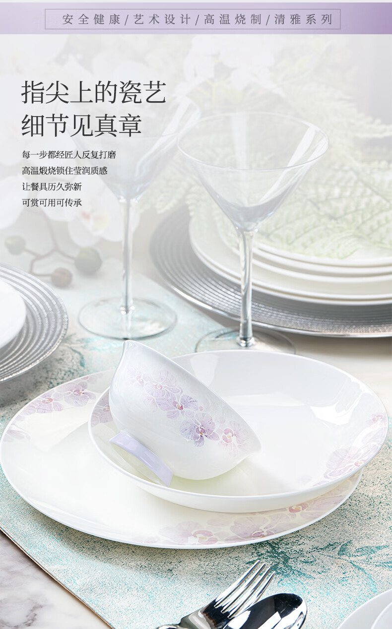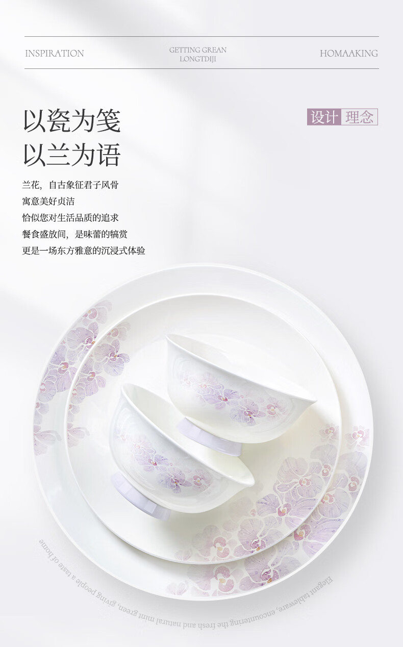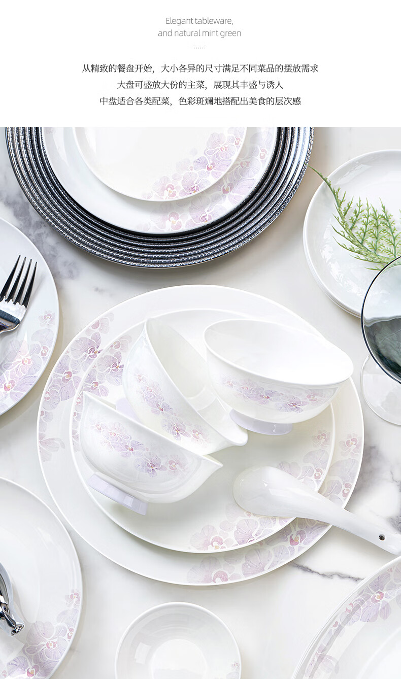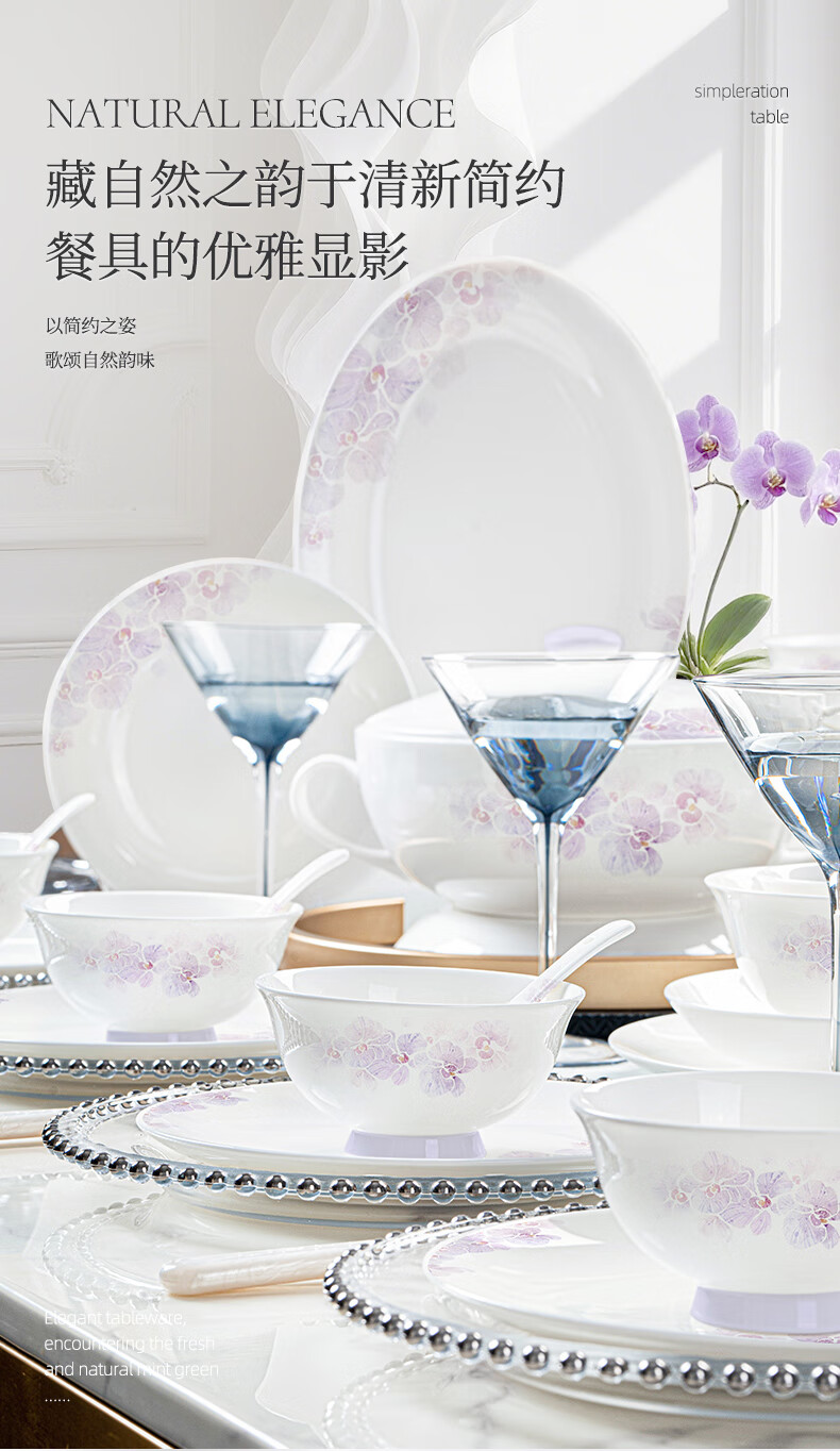 NINE CRANES Jingdezhen 2025 new high-end ceramic bowl set simple home gift light luxury bowl and plate set 66-piece set | high-end gift box | free shipping insurance