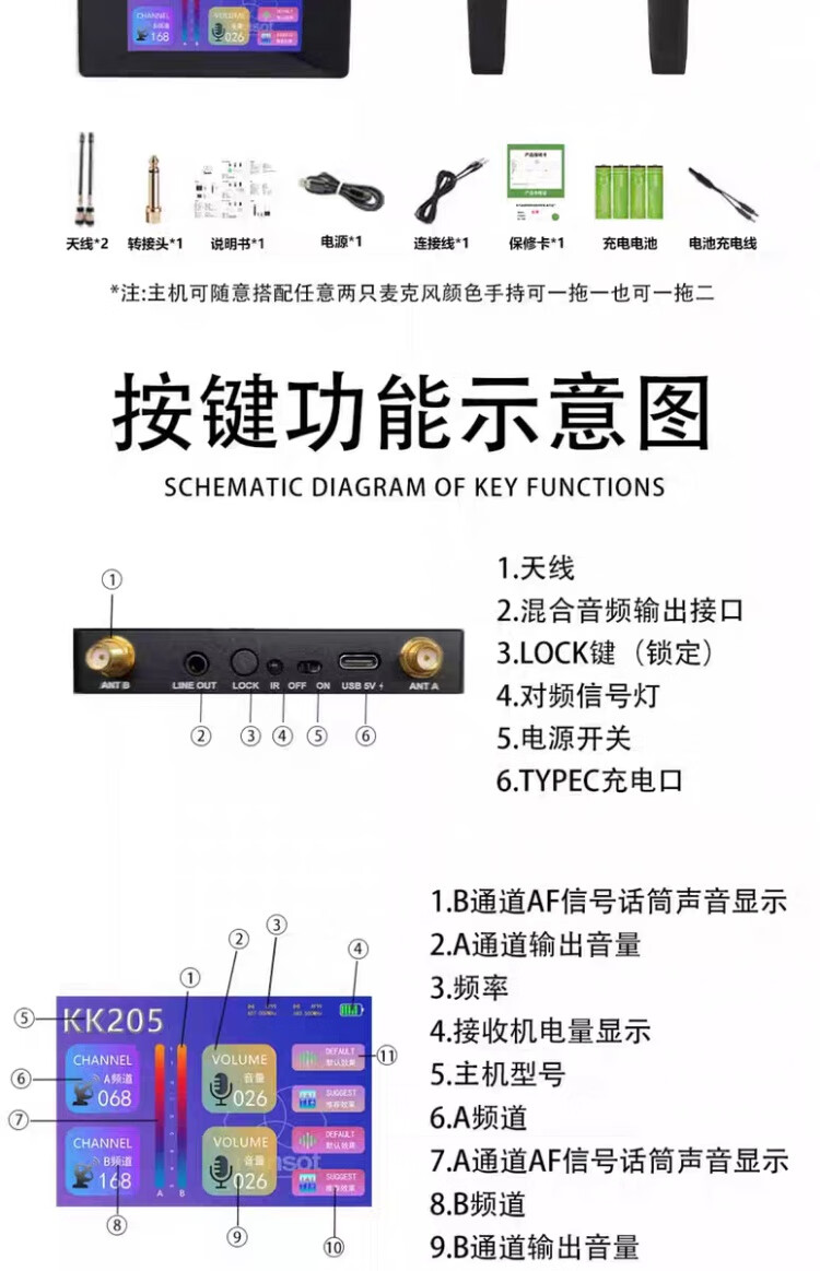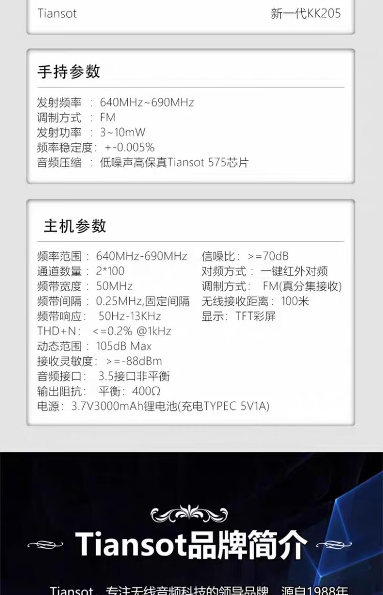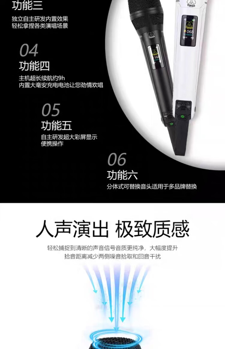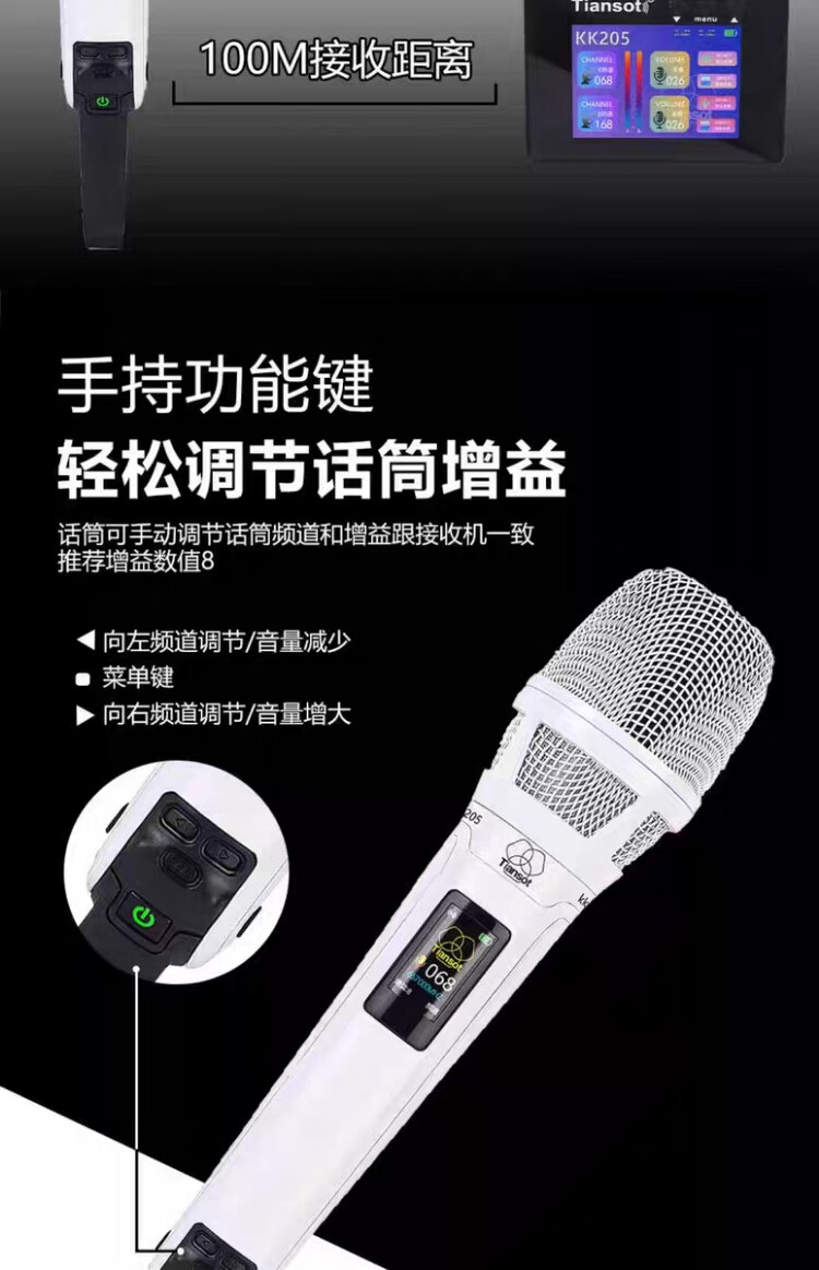 Tiansot Tissot KK205 wireless microphone internet celebrity anchor singing live outdoor touch screen microphone white one for two