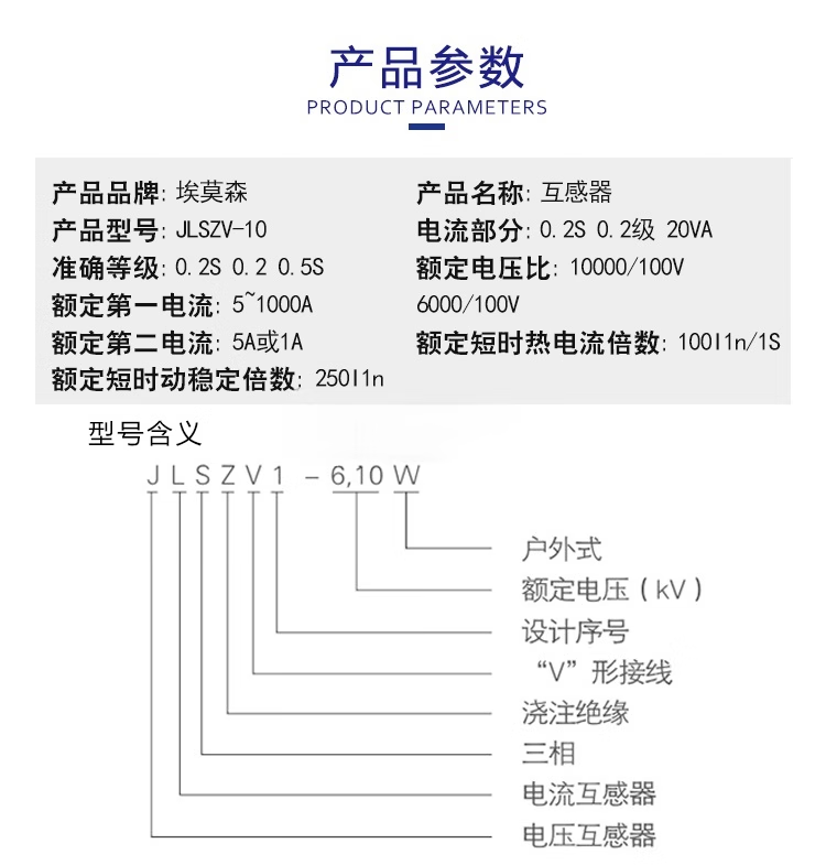 Emerson JLSZV-10 high-voltage metering box 10KV outdoor dry-type combined transformer three-phase three-wire metering box accessories (meter box + cable)