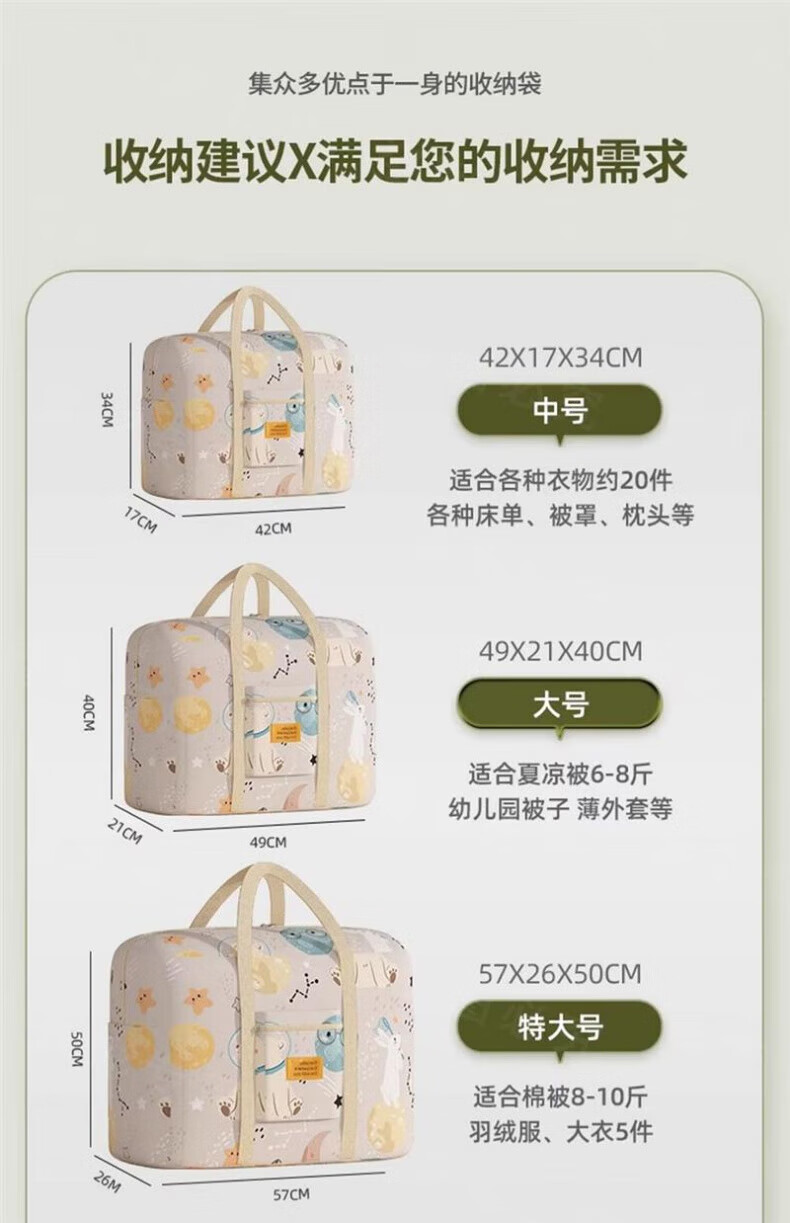 木允瑶收纳袋子大容量学生装冬天衣服物棉被行李袋牛津布搬家打包整理袋 小白鸭 双层加厚 特大号 57*26*50cm