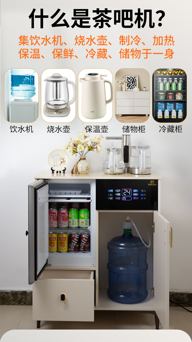 Meijia Meiju 2025 new cream style fully automatic tea bar machine all-in-one cabinet water dispenser with refrigerator refrigeration household high-end white (can be as low as around 5) hot and cold type