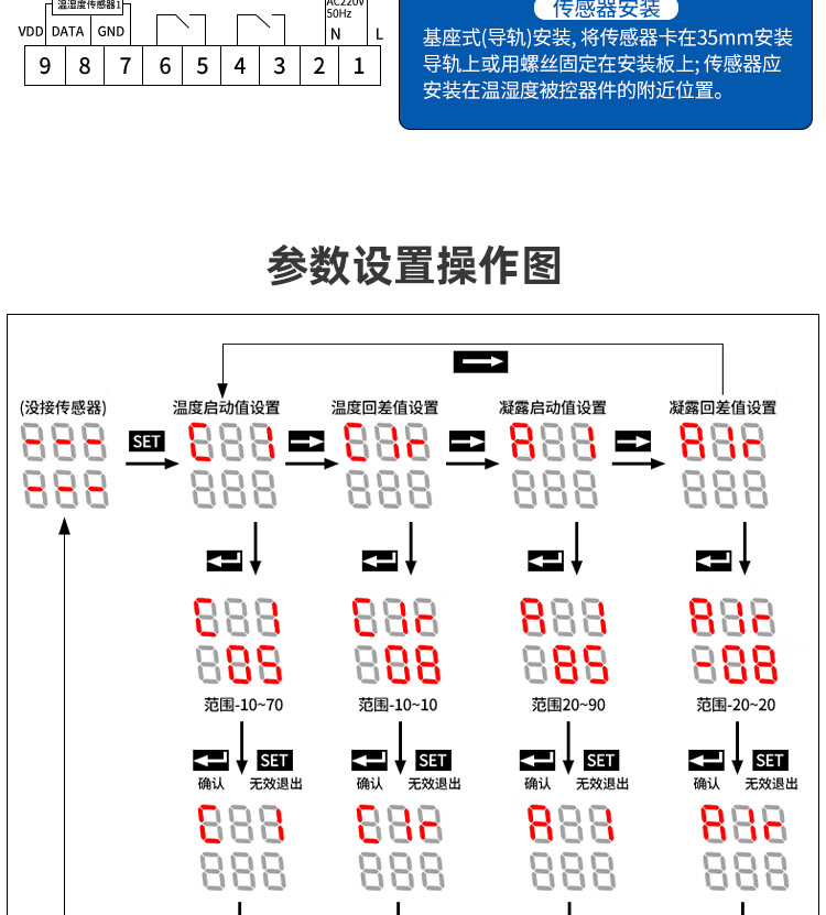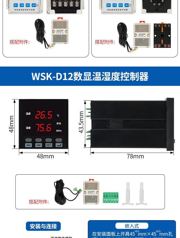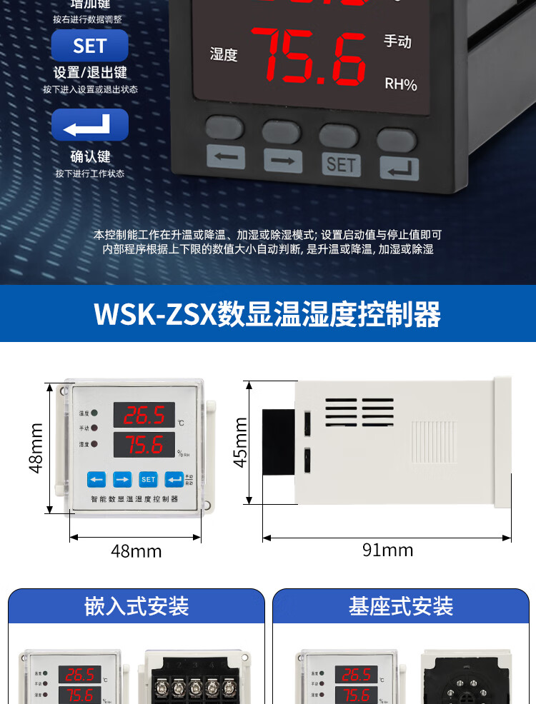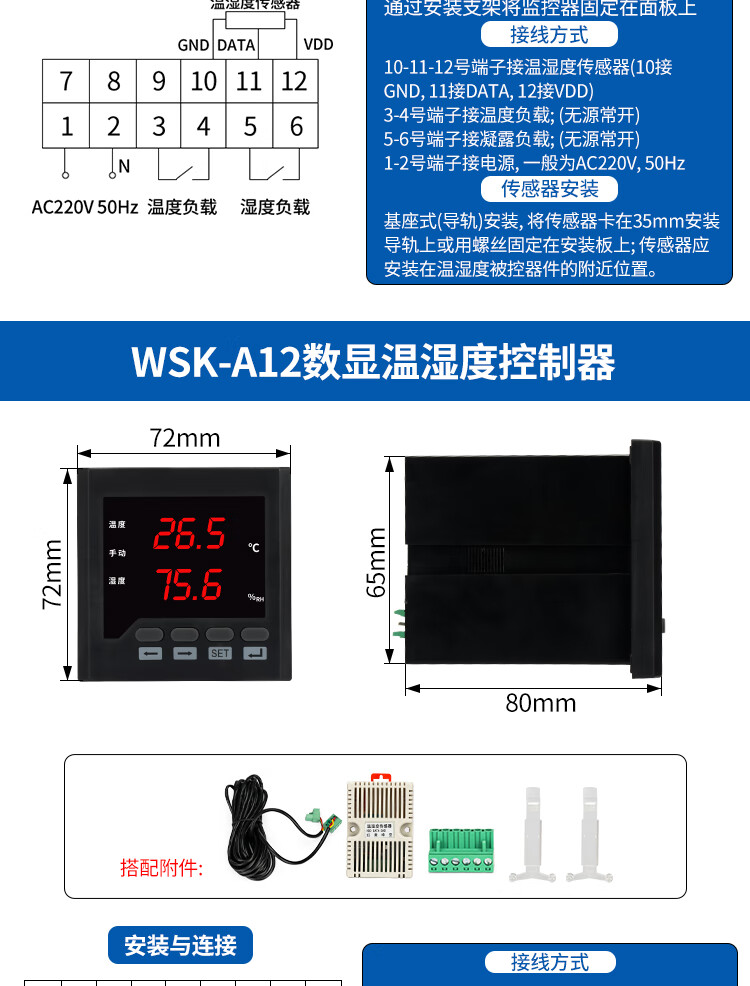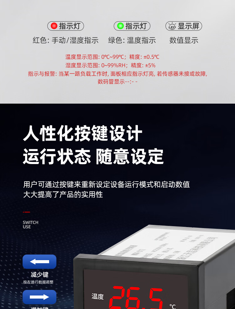 Temperature and humidity controller intelligent digital display anti-condensation temperature controller high voltage distribution cabinet dehumidification button type WSK-A12