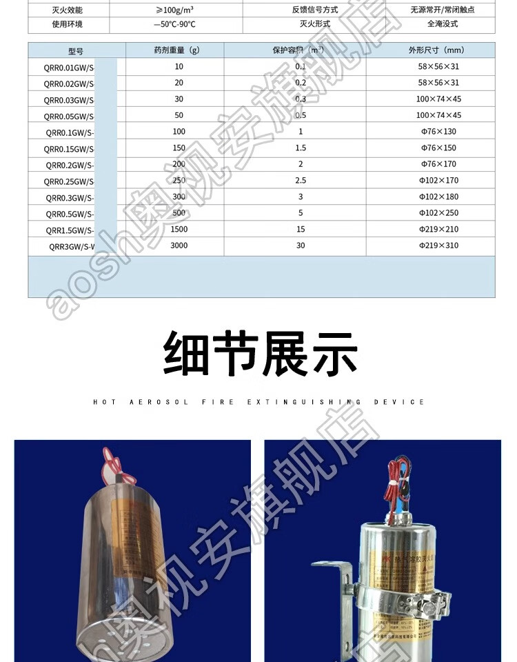 S-type hot aerosol gas fire extinguisher power distribution room computer room household QRR5LW50g automatic fire extinguishing device Taihe'an Zone 1 gas fire extinguishing complete set