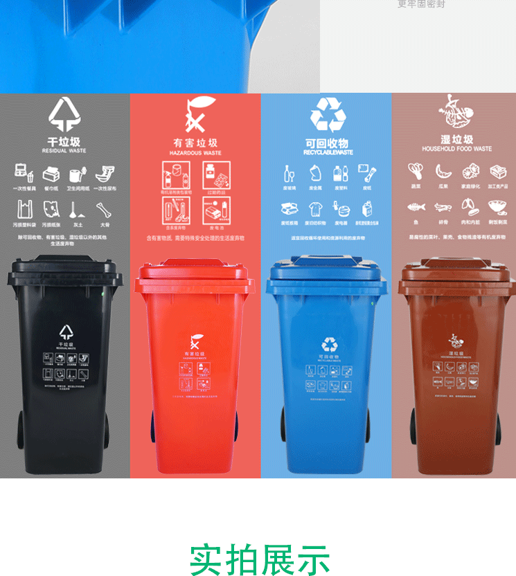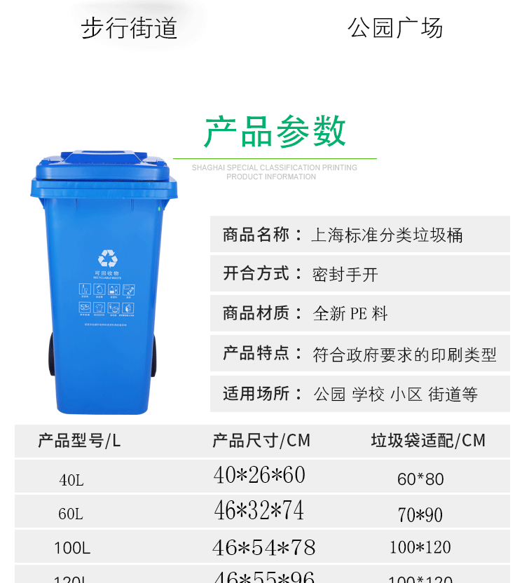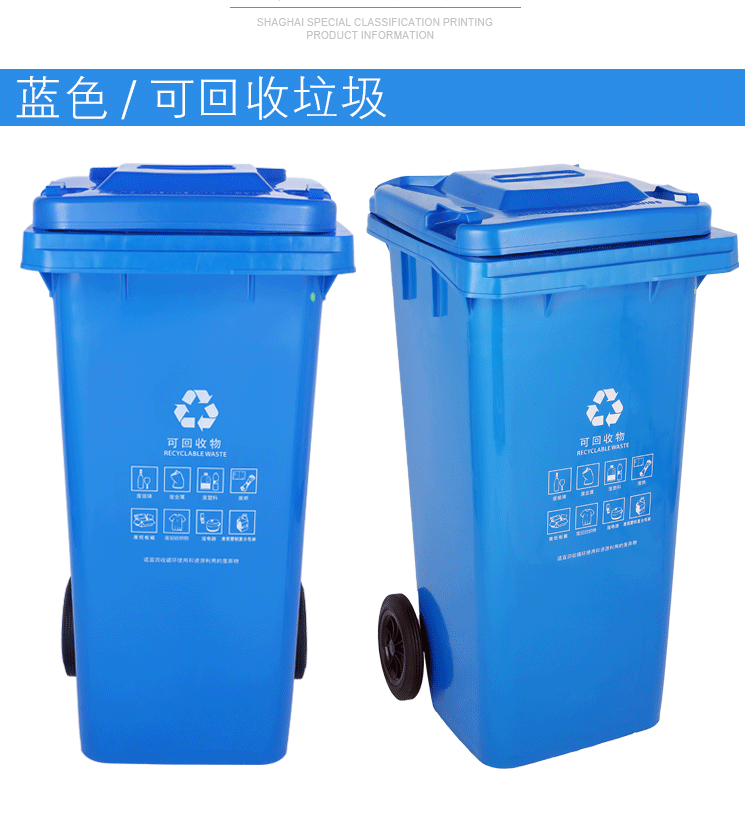 Yue Changsheng Shanghai wet and dry separation trash can outdoor sanitation large trash can garbage classification trash can 120 liters of dry garbage 60 liters red with lid hazardous waste Shanghai classification standard