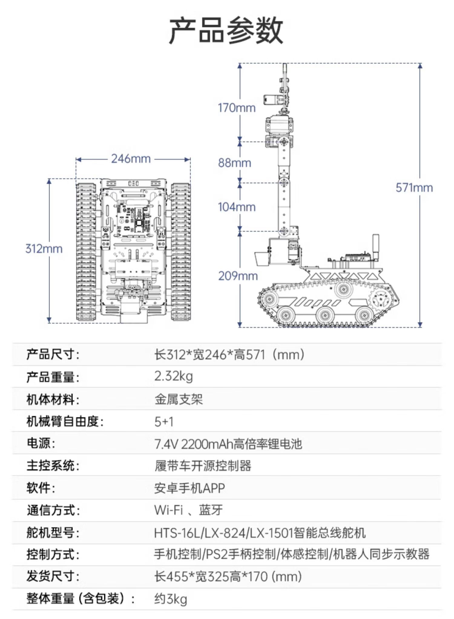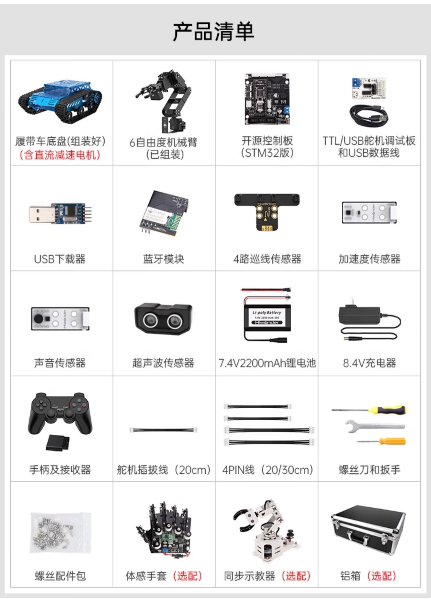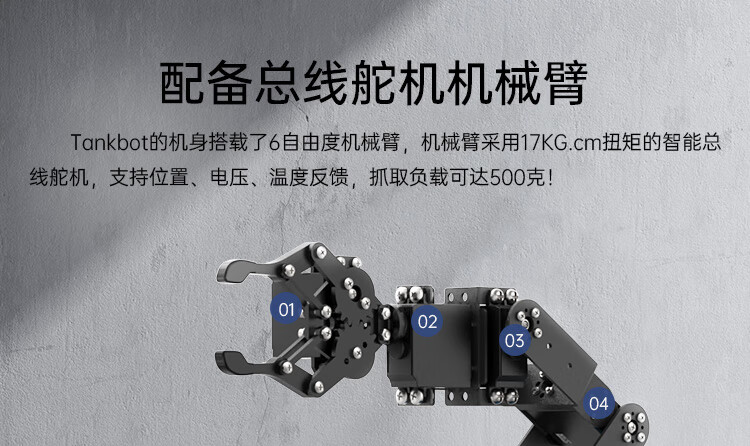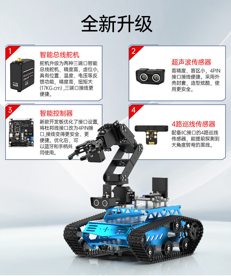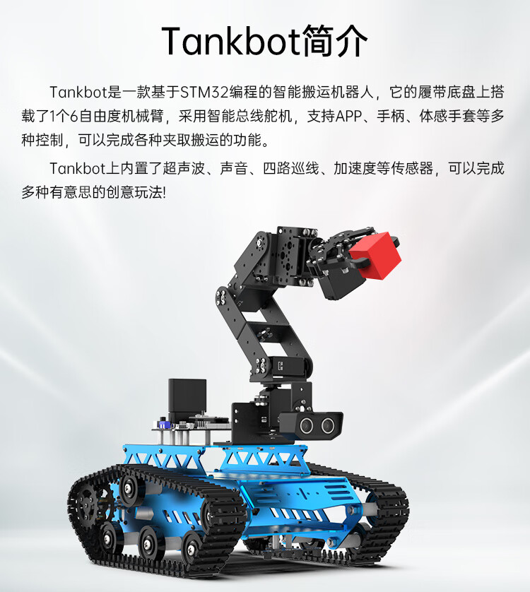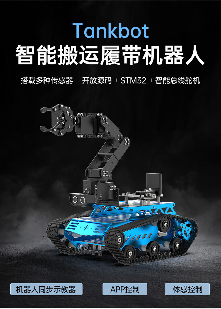 Yue Changsheng Huan'er 6-degree-of-freedom robotic arm robot Tankbot tracking and obstacle avoidance open source handling programming crawler car standard configuration (black)
