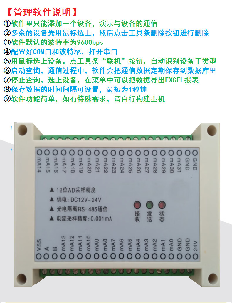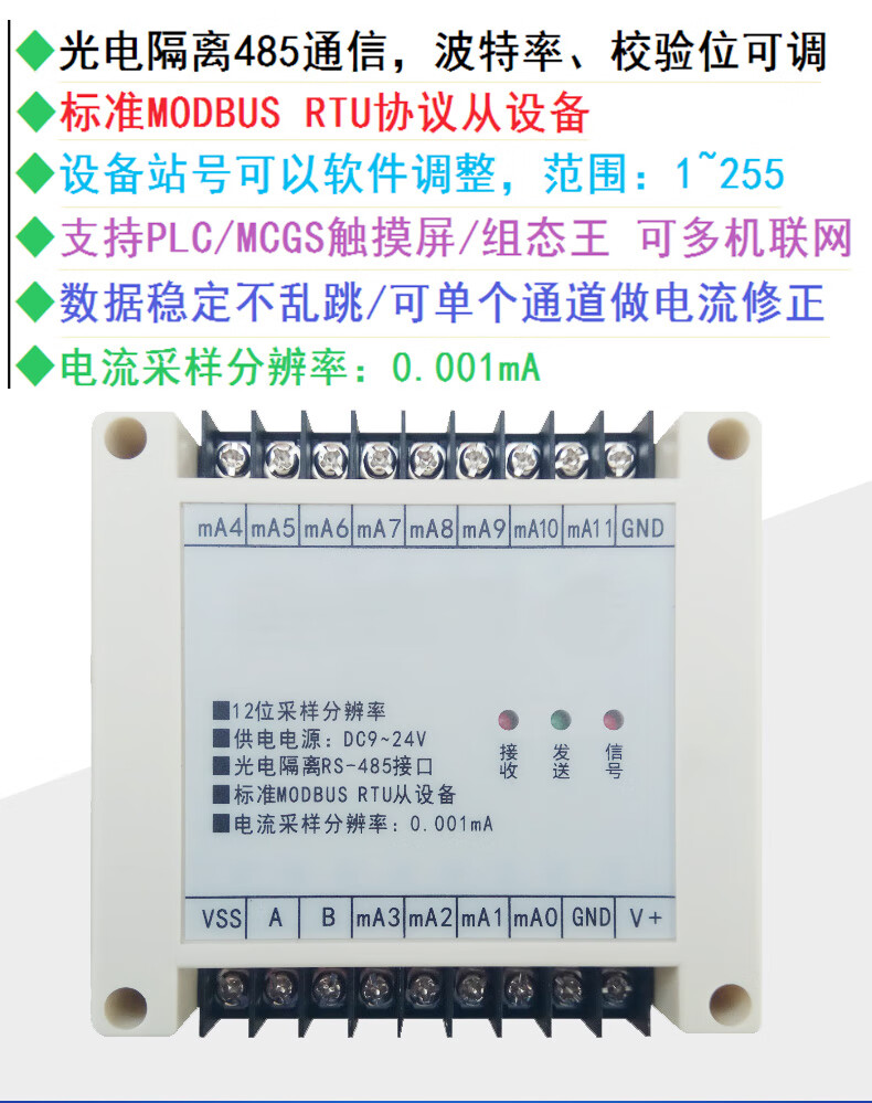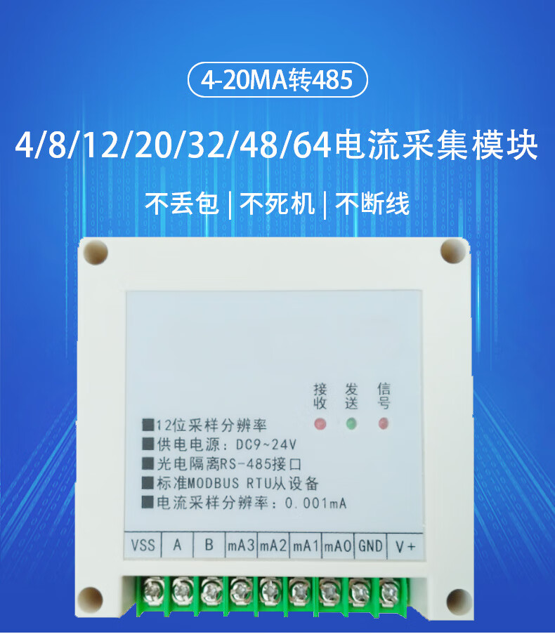 Yue Changsheng 4/8/12/20/32/48/64 channels 4-20mA to 485 AI current analog acquisition input module 20 channels 4-20MA to 485