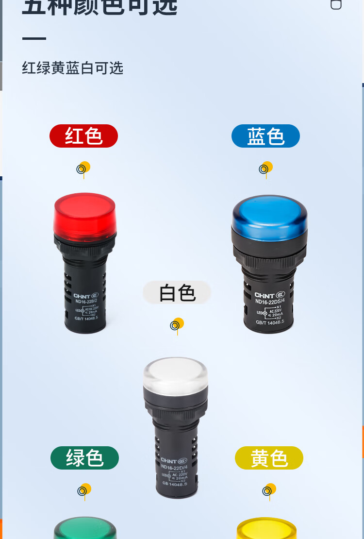 Chint LED signal light indicator light ND16-22D yellow green red 220v 380v 24v 12v AC110V red