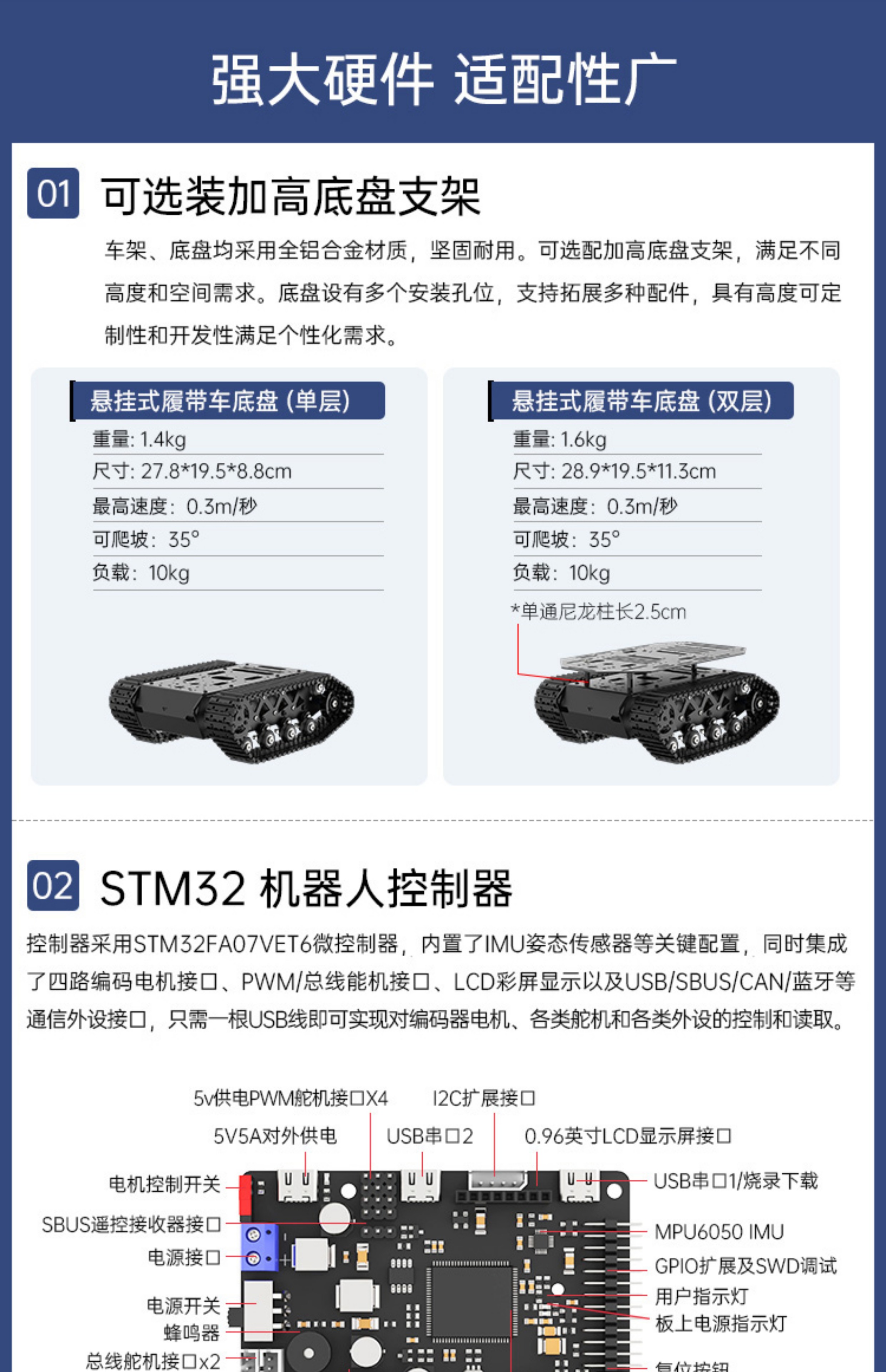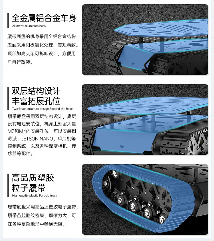 Yue Changsheng crawler vehicle chassis All-metal suspension strong shock-absorbing tank robot coding motor Intelligent car chassis ROS car controller