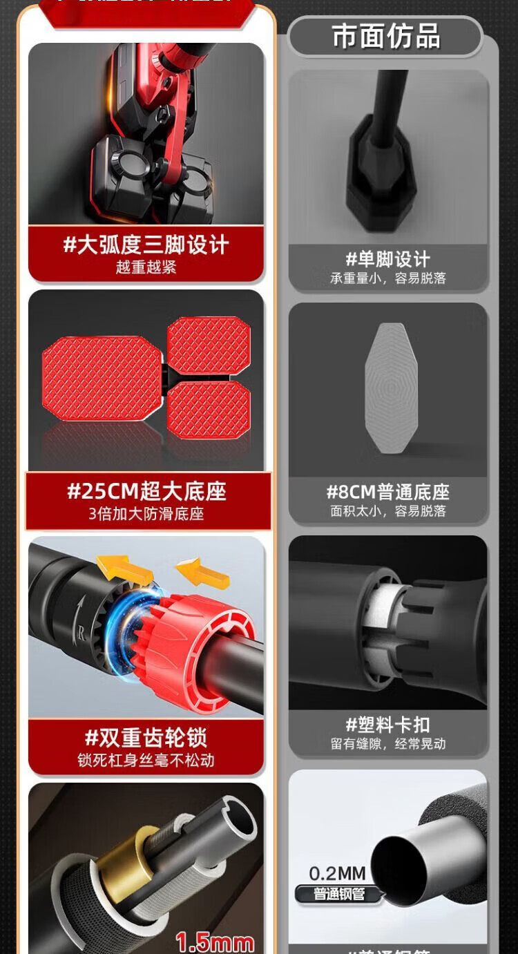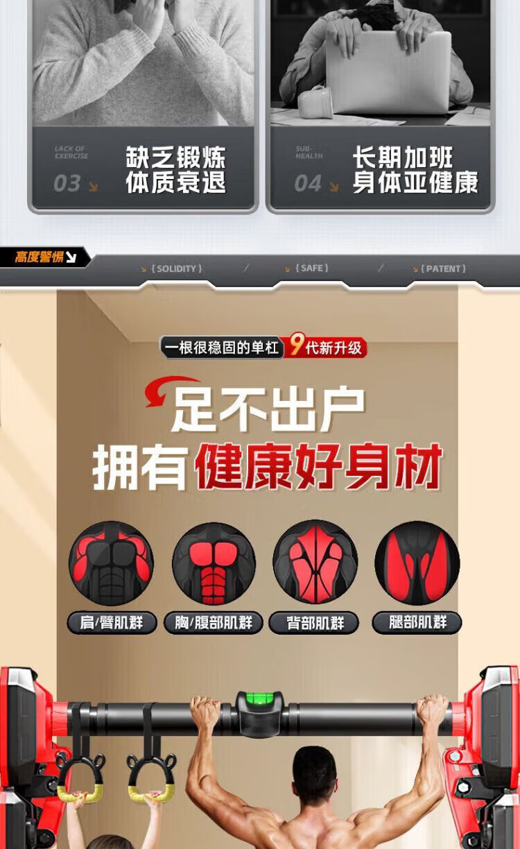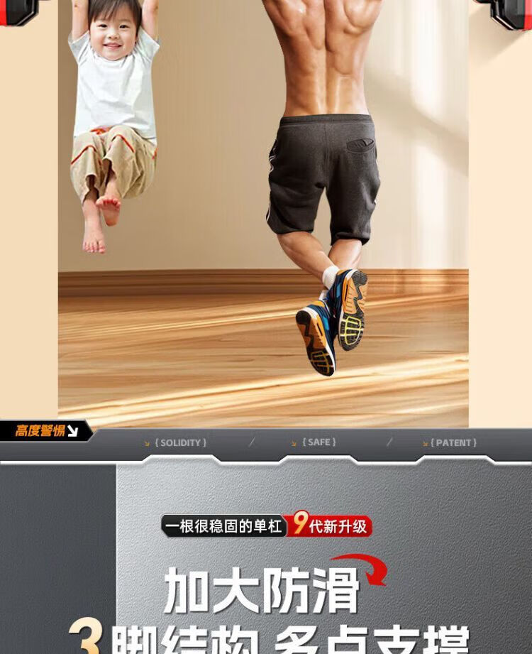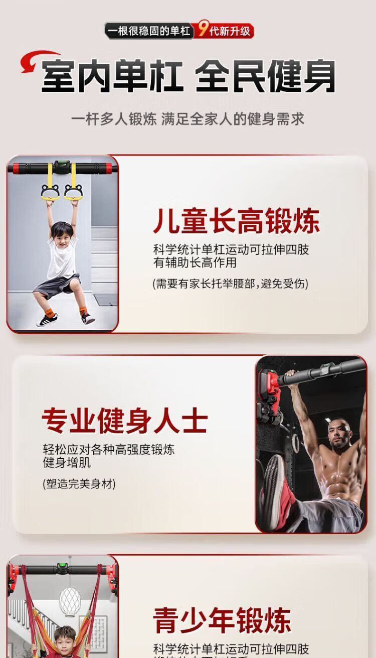 Ripa pull-up device, household horizontal bar, indoor punch-free fitness equipment, adjustable, stable and non-slip for children, new upgraded 3-foot plate + level, load-bearing 2560 catties/installation distance 136-180CM