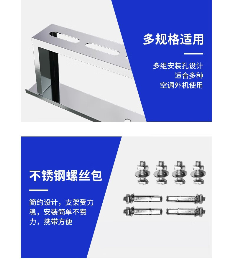 Qisen Stainless Steel Air Conditioner Outdoor Unit Bracket Floor Stand 1.5 HP 3 HP 5 HP Universal Type 304 Heightened Ground Air Conditioner Bracket 304 Thickened Air Conditioner Bracket (With Screw Package) 3-5P Universal Style - Height 30cm