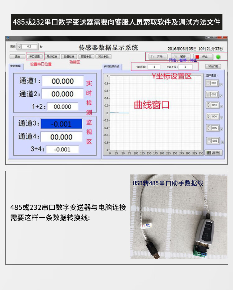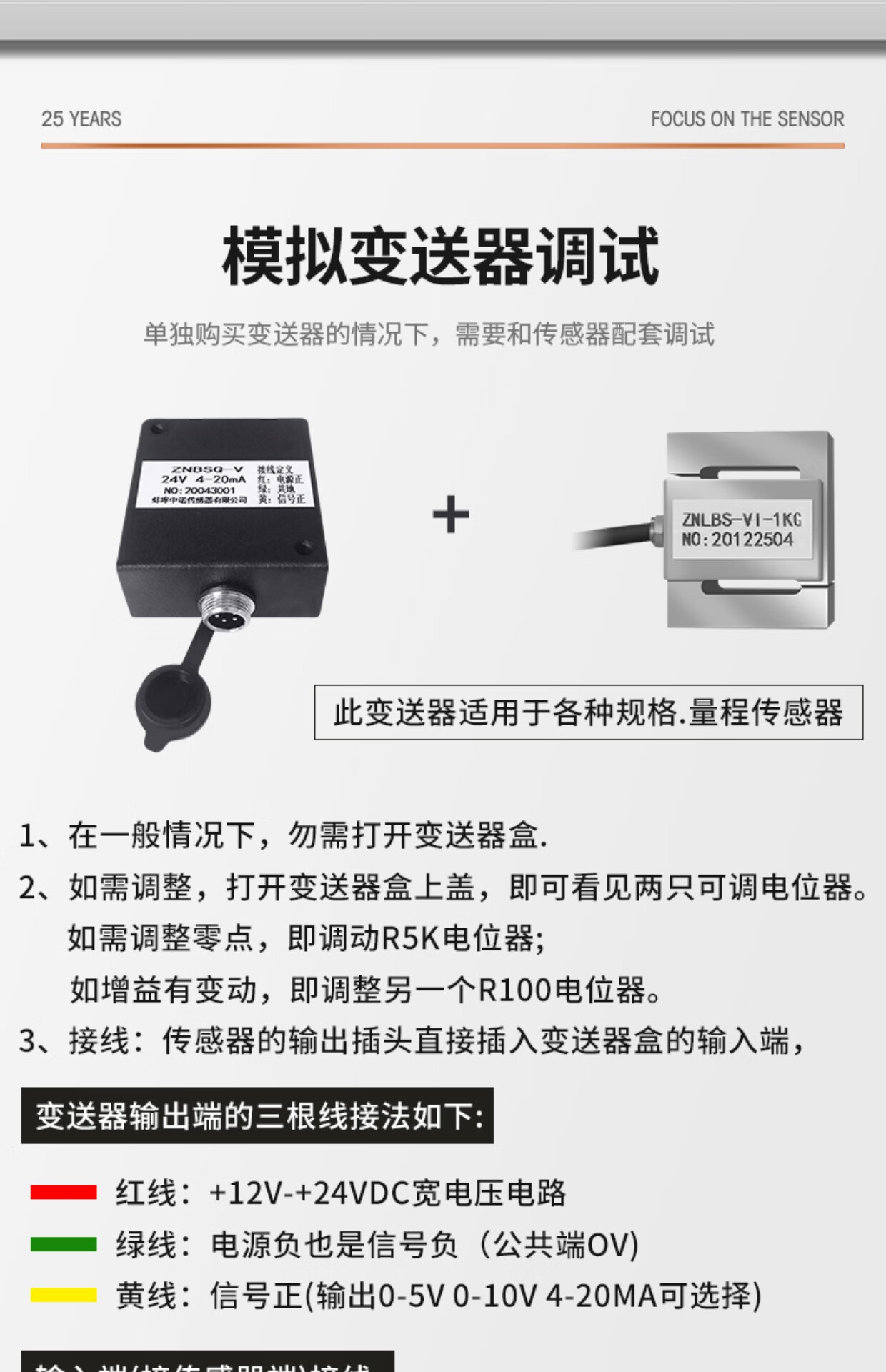 Yue Changsheng Zhongnuo sensor manufacturer direct sales anti-interference weighing transmitter sensor signal amplifier 0-5V0-10 485 serial port + data line + adapter