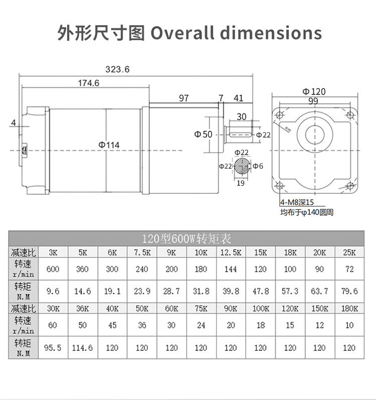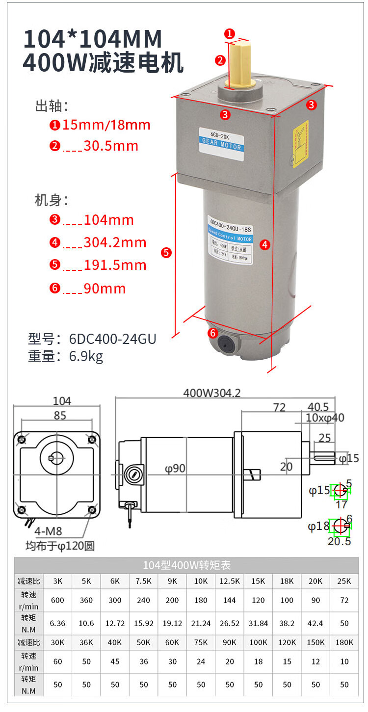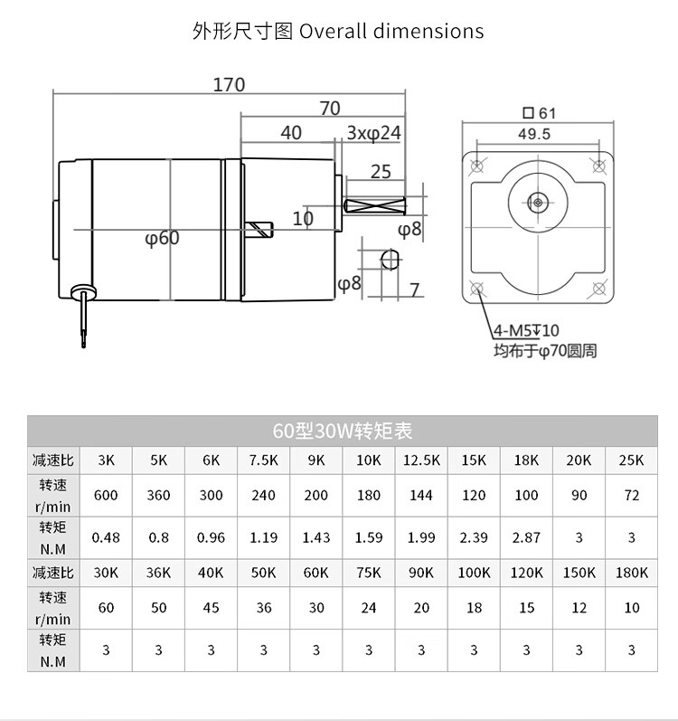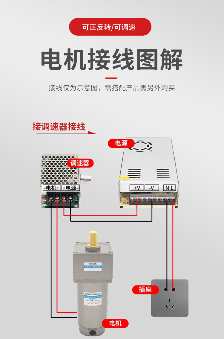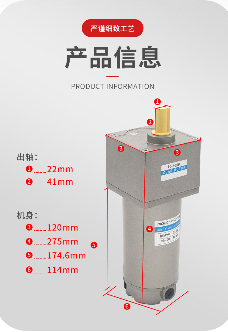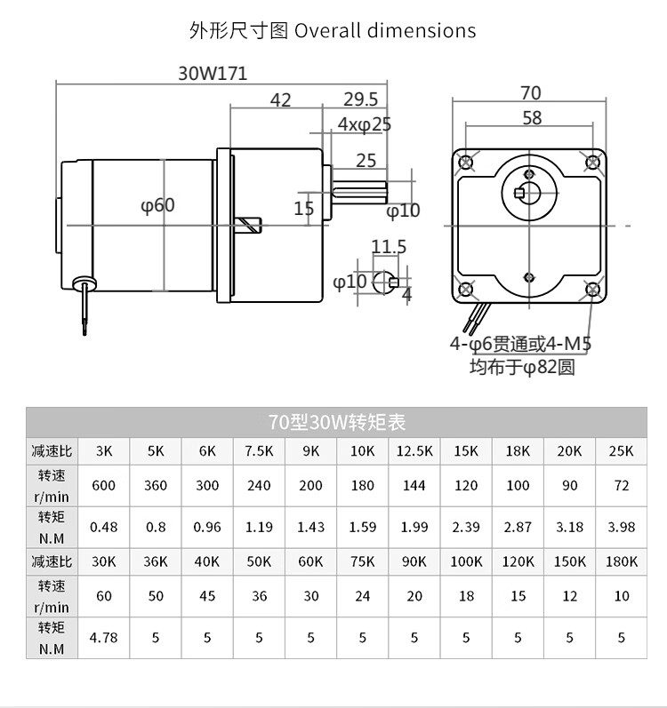 Yue Changsheng DC brushed reduction motor high torque 12v24V48v adjustable speed forward and reverse/torque gear micro motor 80 type 100W output shaft 10MM key 4 6-10 rpm DC motor DC12V