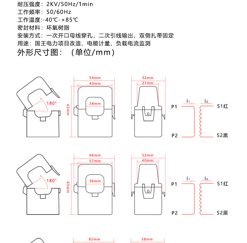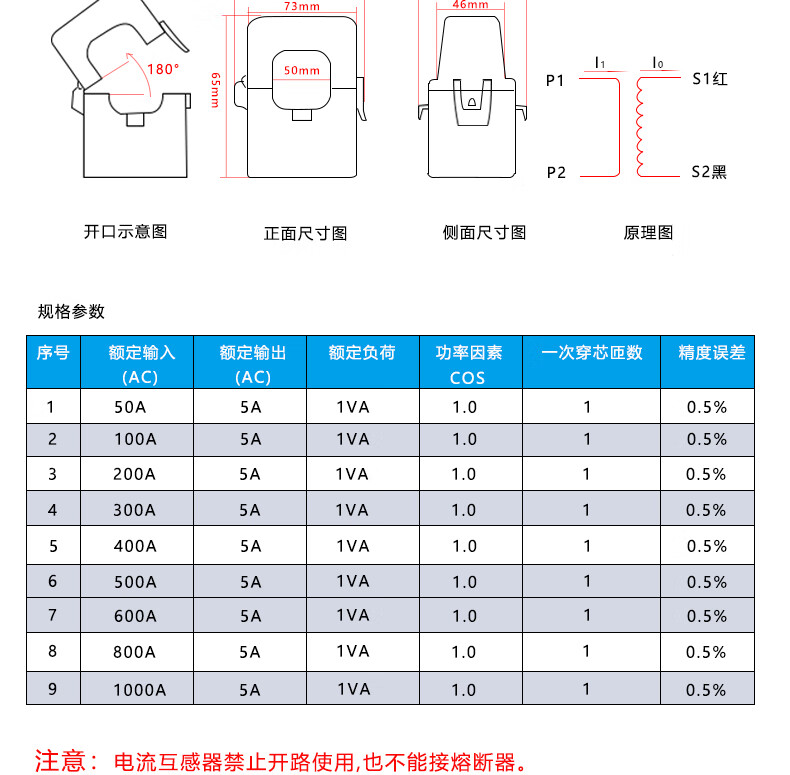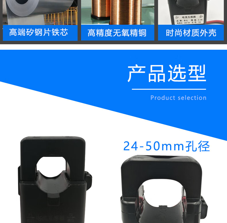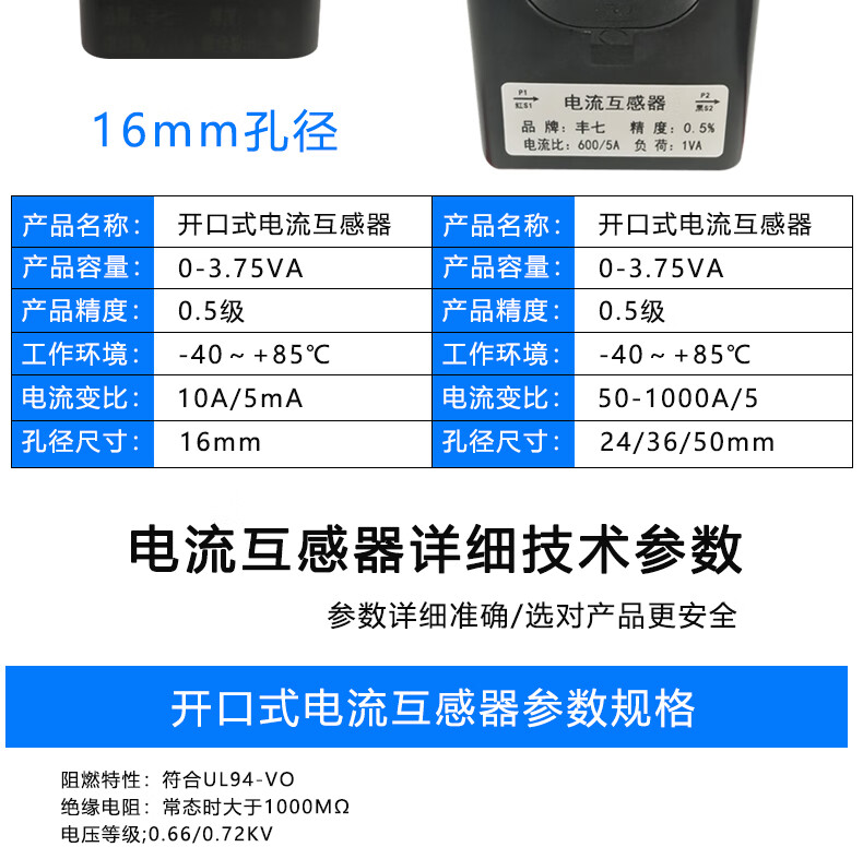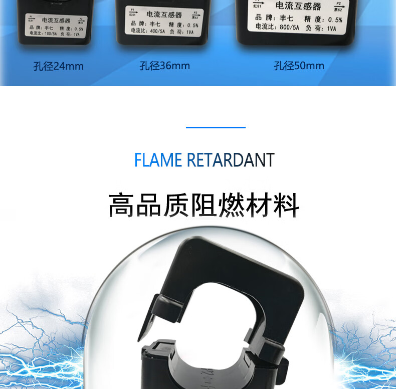 Fengqi open-type high-precision current transformer open-and-close small three-phase AC free card line 10-1000A open-type transformer aperture 36mm/200A