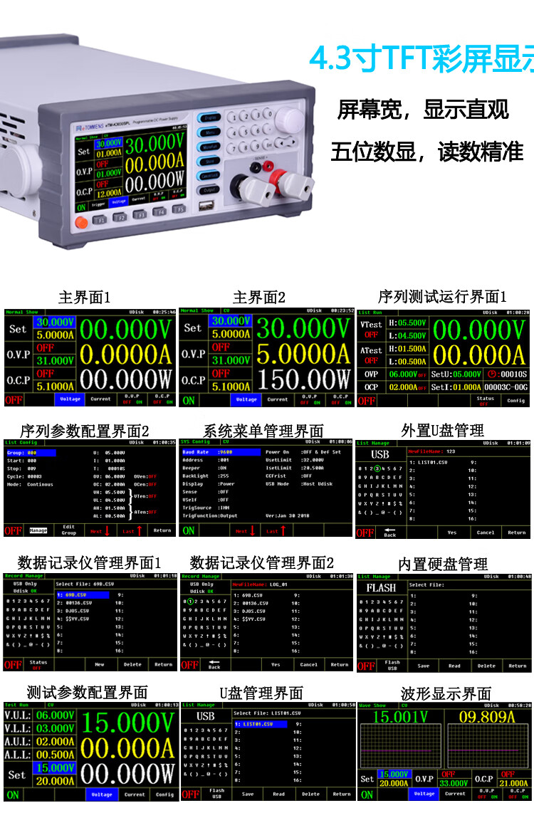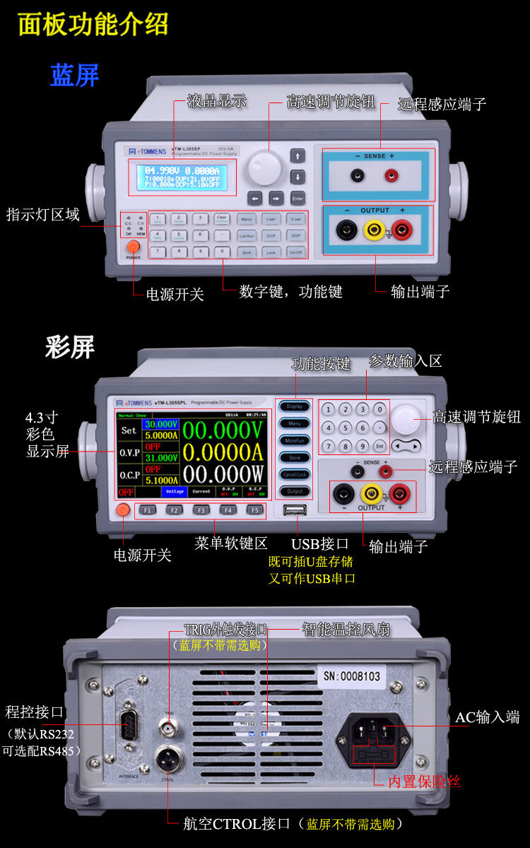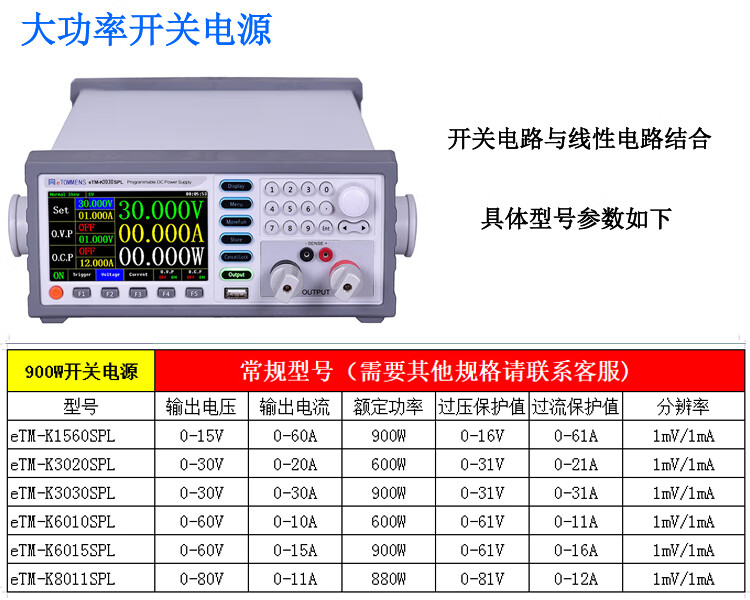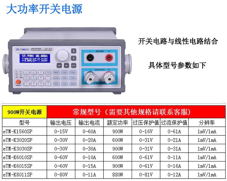 Yue Changsheng high-precision adjustable DC regulated power supply 0-30V60V5A10A high-power programmable programmable power supply eTM-K8011SP (80V11A blue screen)