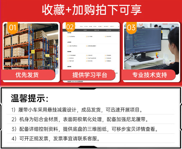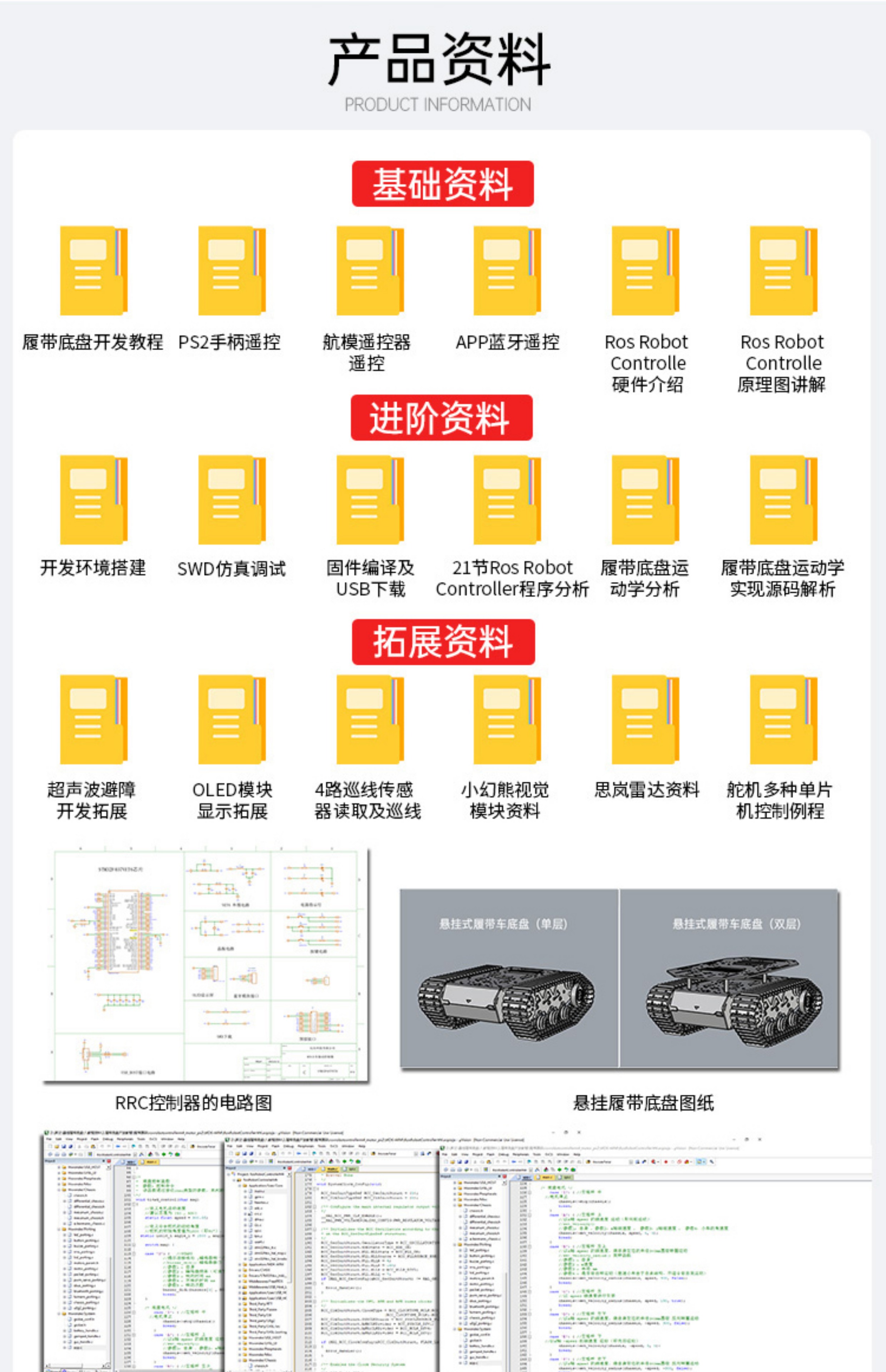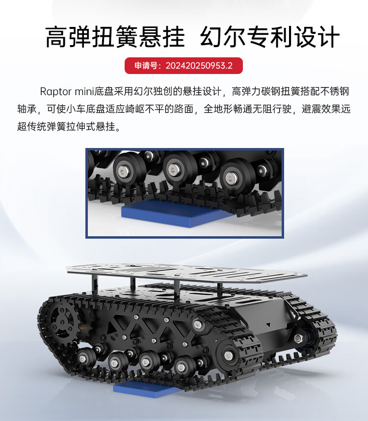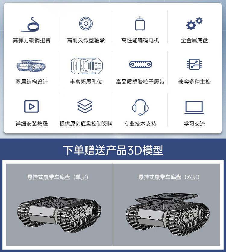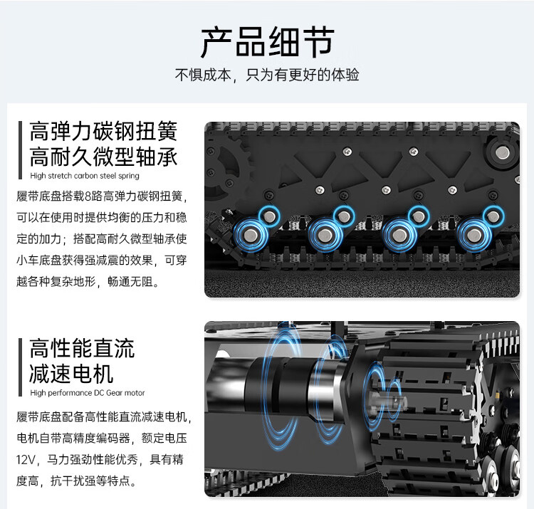 Yue Changsheng crawler vehicle chassis, all-metal suspension strong shock-absorbing tank robot coding motor, smart car chassis, complete chassis development package (STM32)