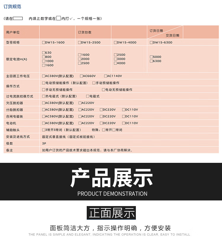 People's Electrical Frame Universal Circuit Breaker DW15-630A1000A1600A2500A4000A Thermal Electromagnetic DW15-1000A Thermal Electromagnetic Electric AC220V