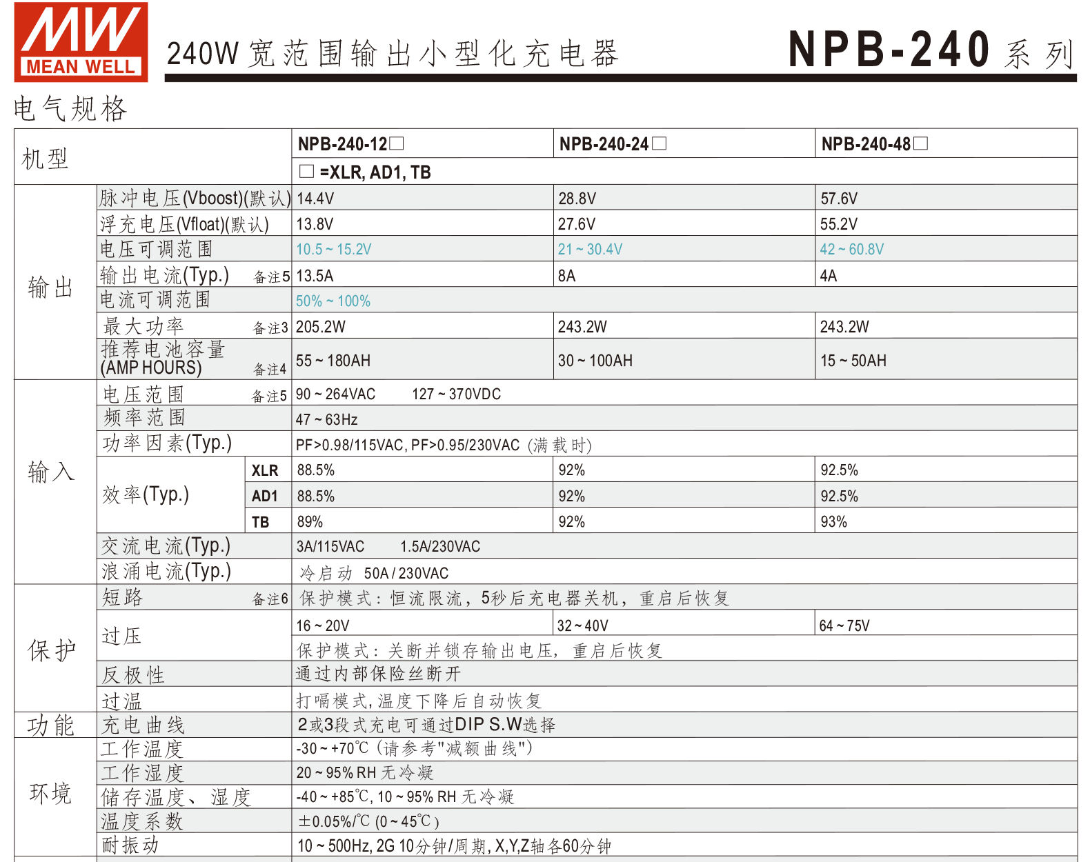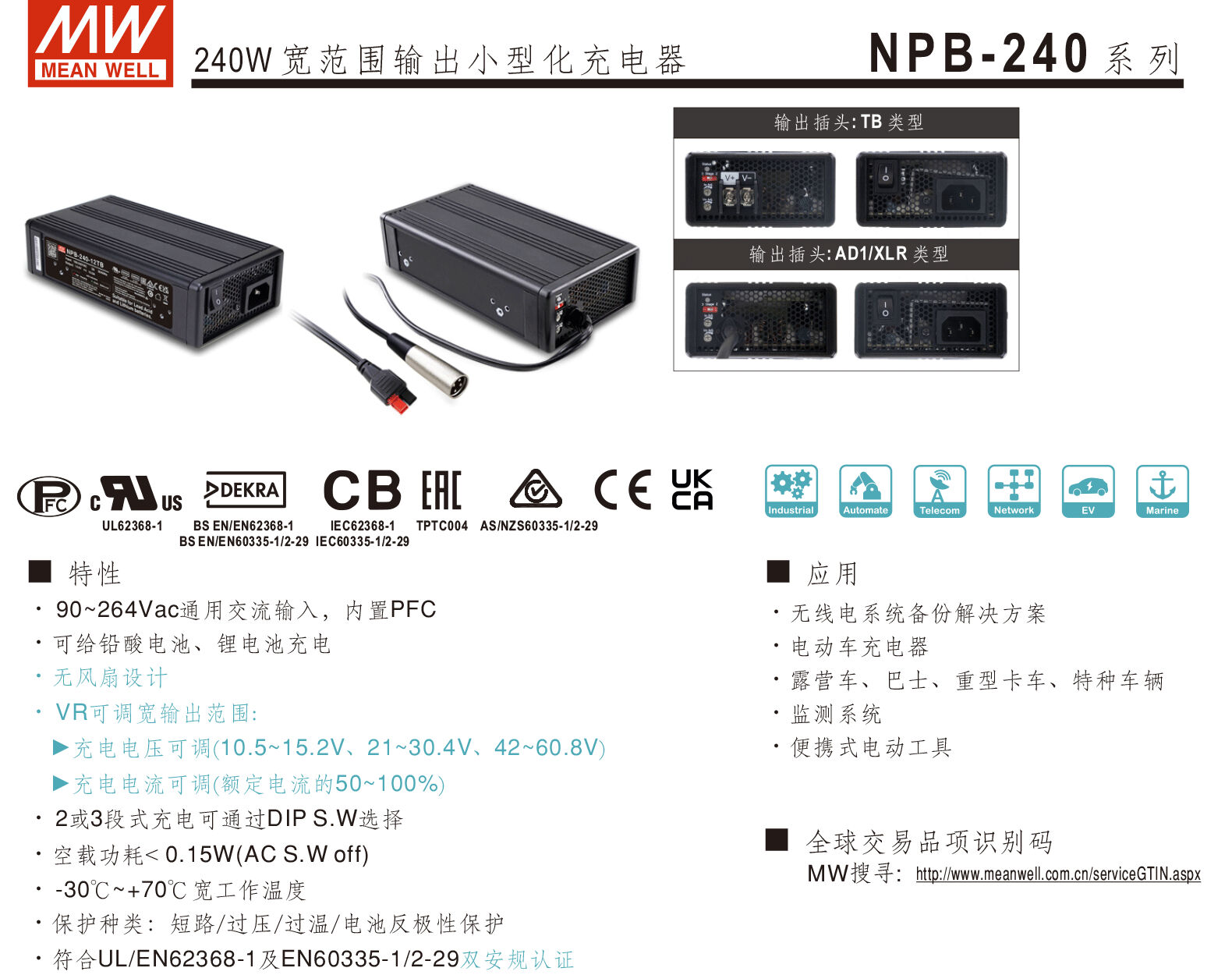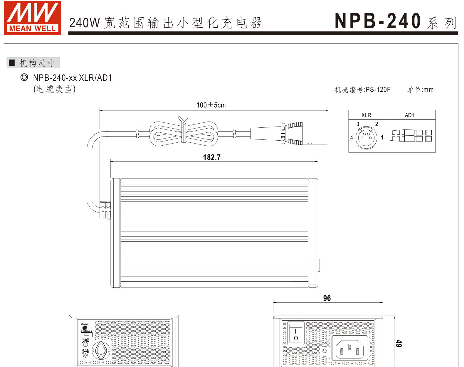 MEAN WELL Power NPB-240-12/24/48 TB/XLR 2/3-stage lead-acid/lithium battery charger 240W NPB-240-12TB12V charger does not include accessories