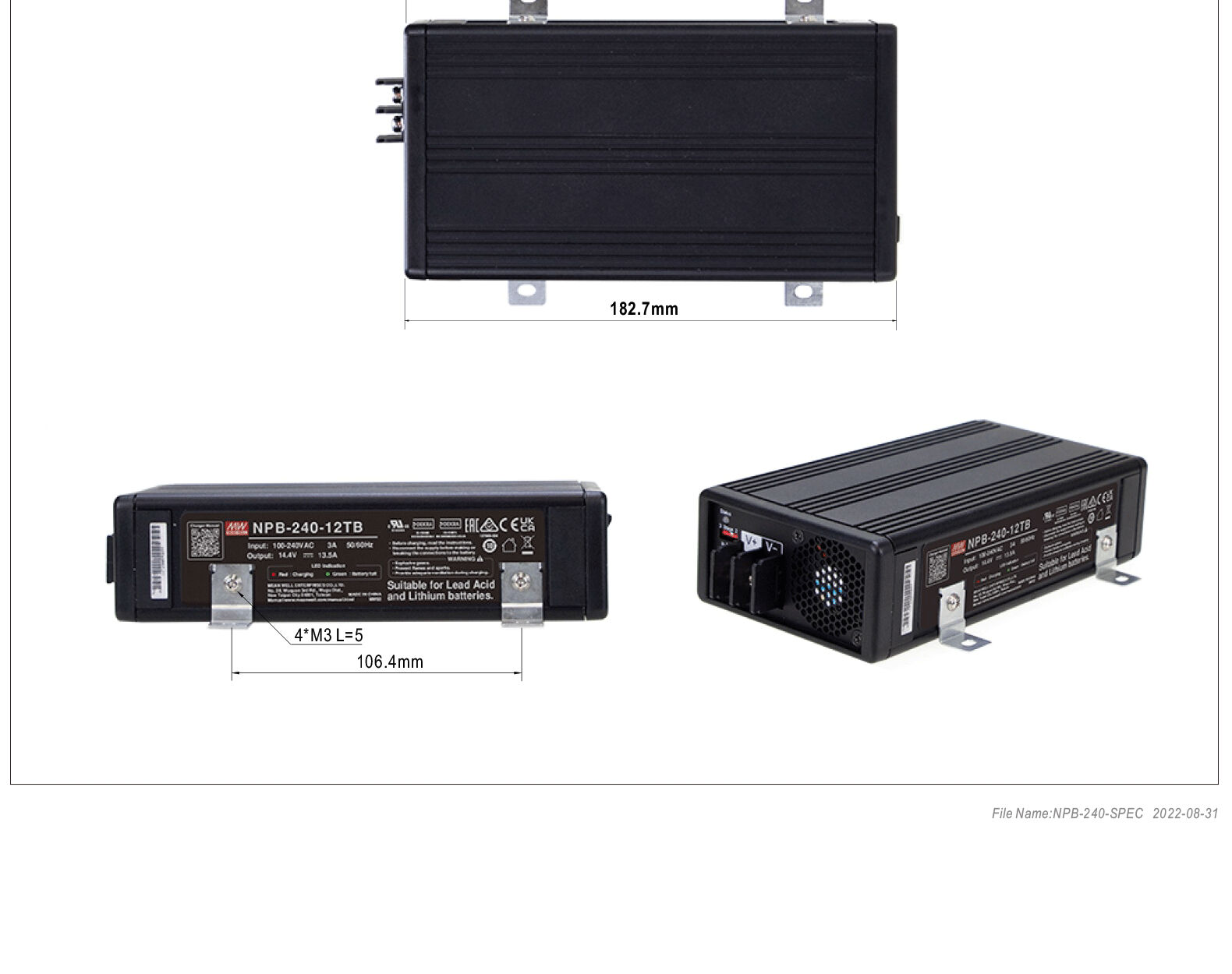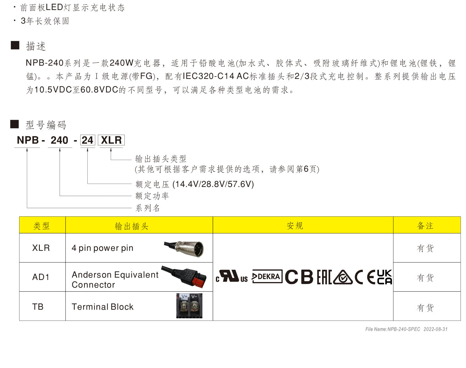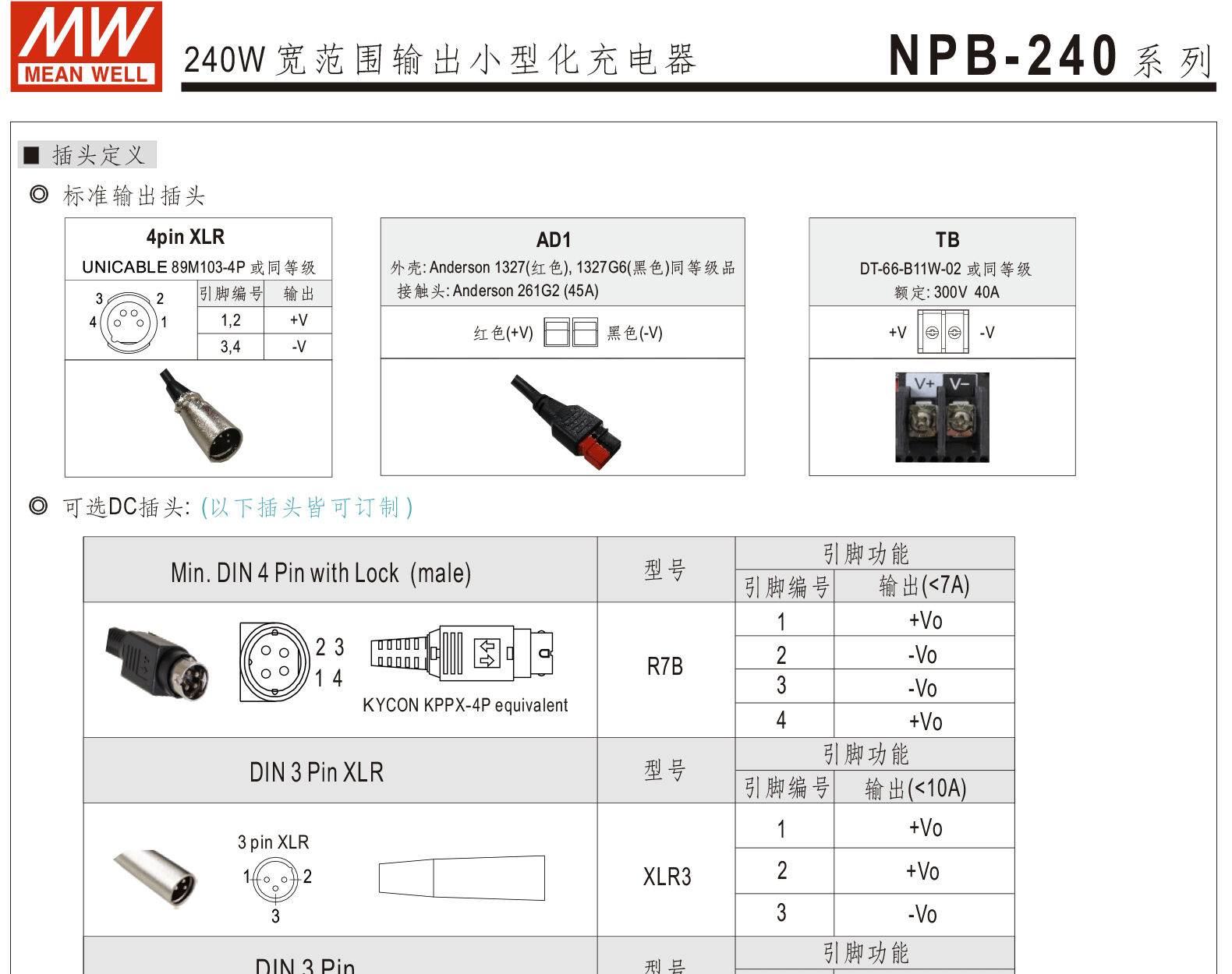 MEAN WELL Power NPB-240-12/24/48 TB/XLR 2/3-stage lead-acid/lithium battery charger 240W NPB-240-12TB12V charger does not include accessories