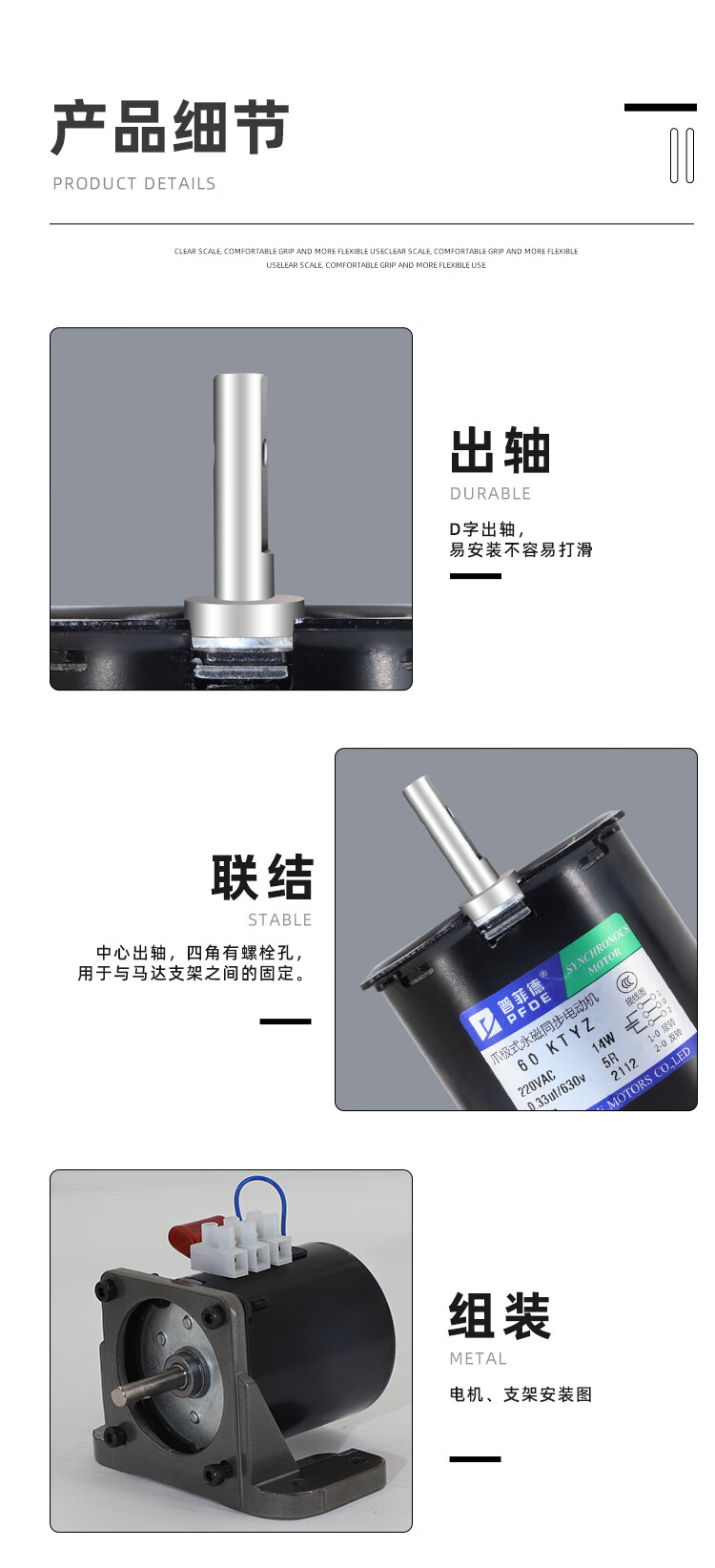 Yue Changsheng low speed micro AC 220V/60KTYZ permanent magnet synchronous motor reduction motor/14w slow speed small motor lotus color 68KTYZ110 rpm eccentric shaft 8MM shaft without hole