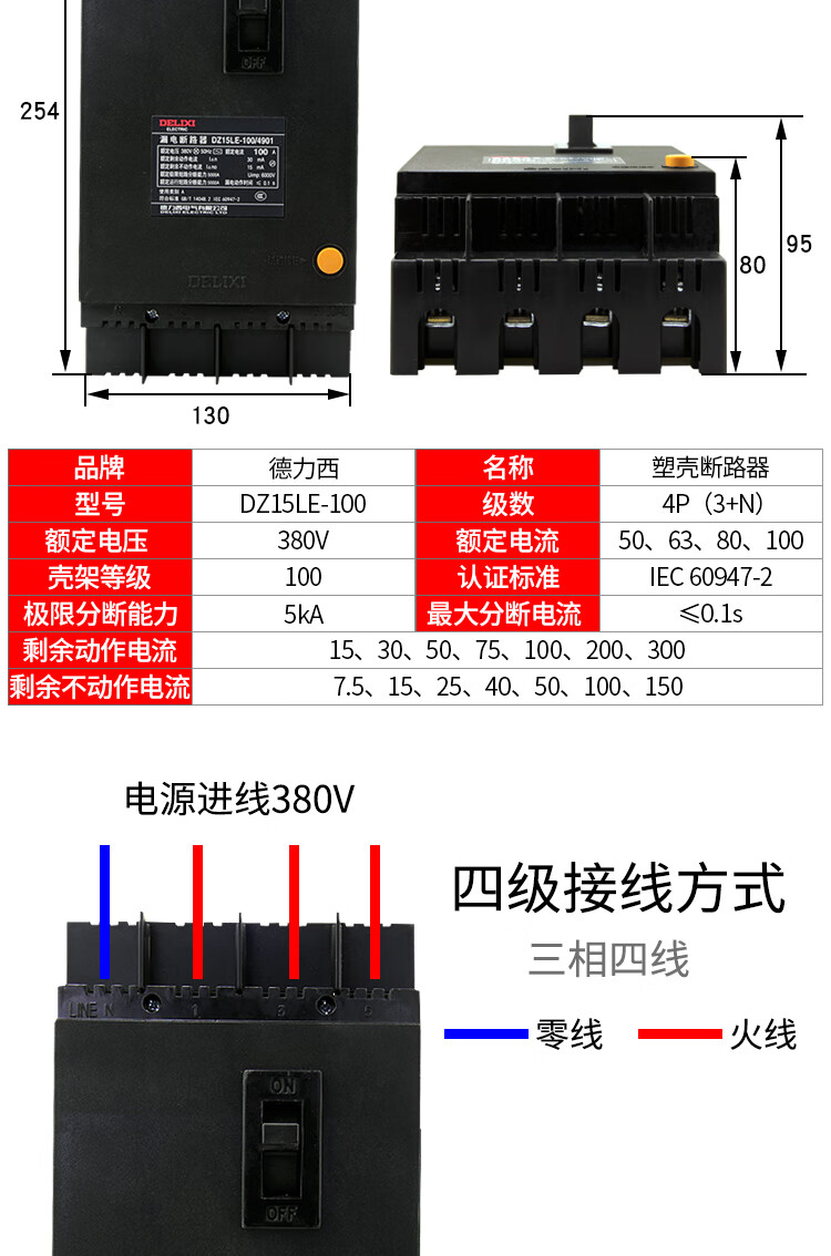 DZ15LE-100/4901 plastic case leakage protection switch 100A 63A 50A circuit breaker 80A 50A 4p