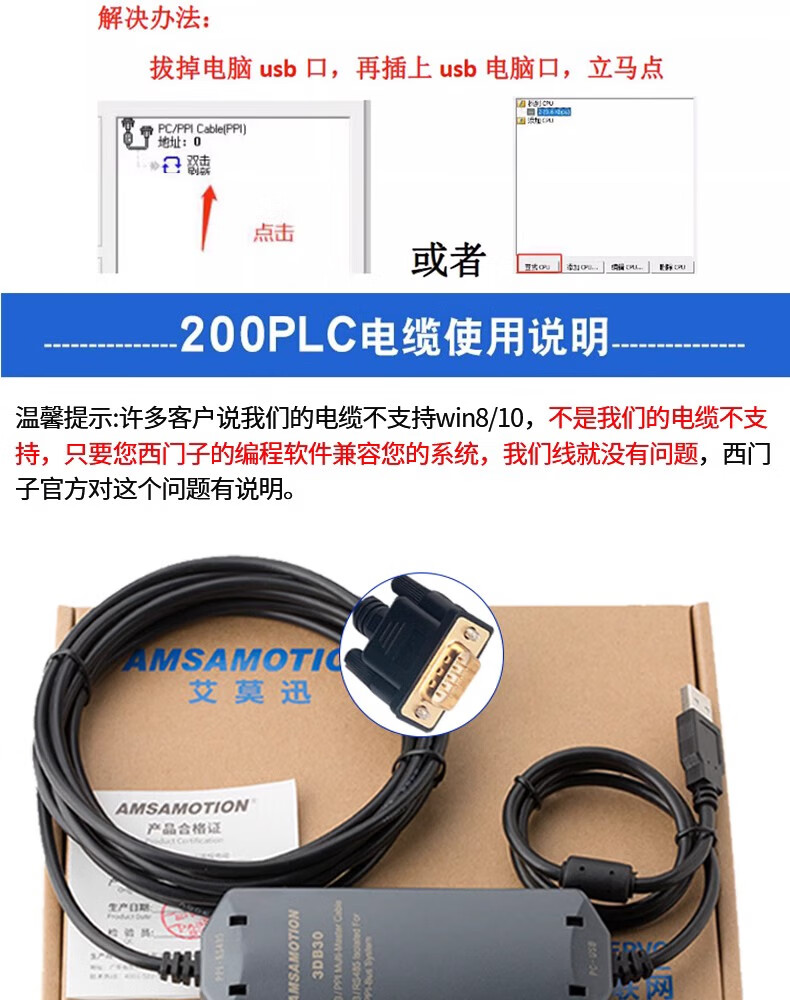Yue Changsheng Aimoxun 6ES7901-3DB30-0XA0 supports Siemens S7-200PLC programming cable download line, economical driver-free 3DB30 software selection USB port