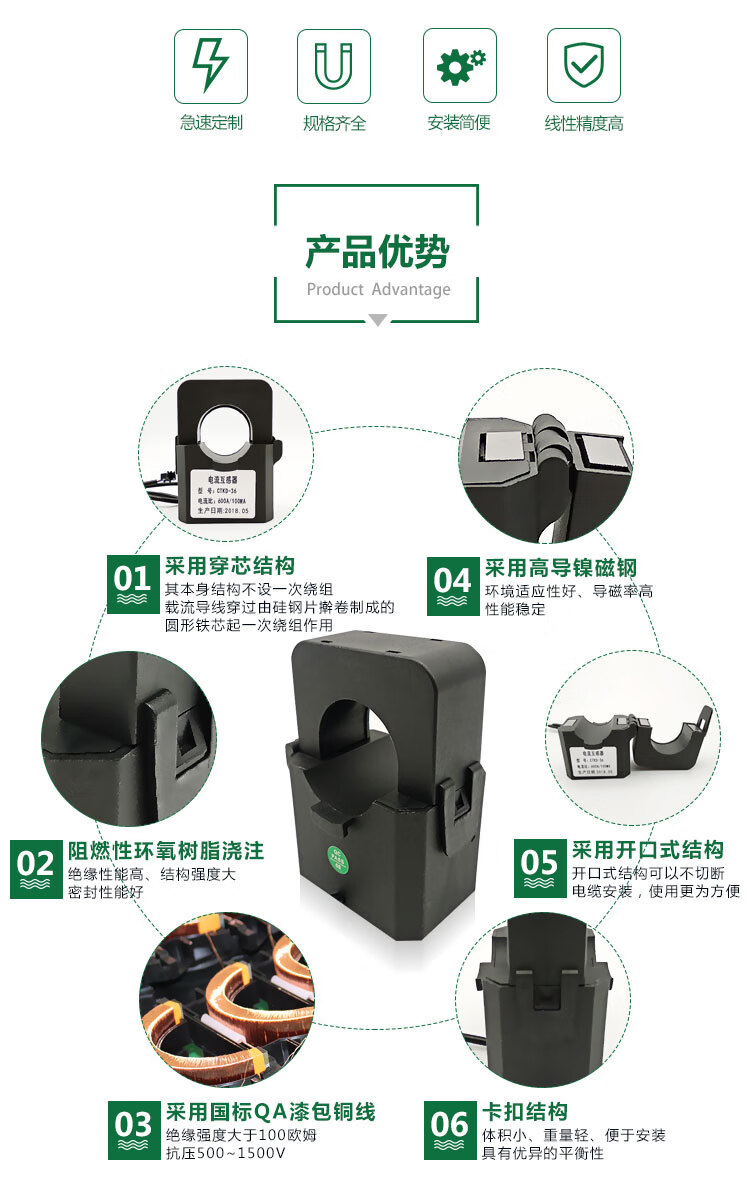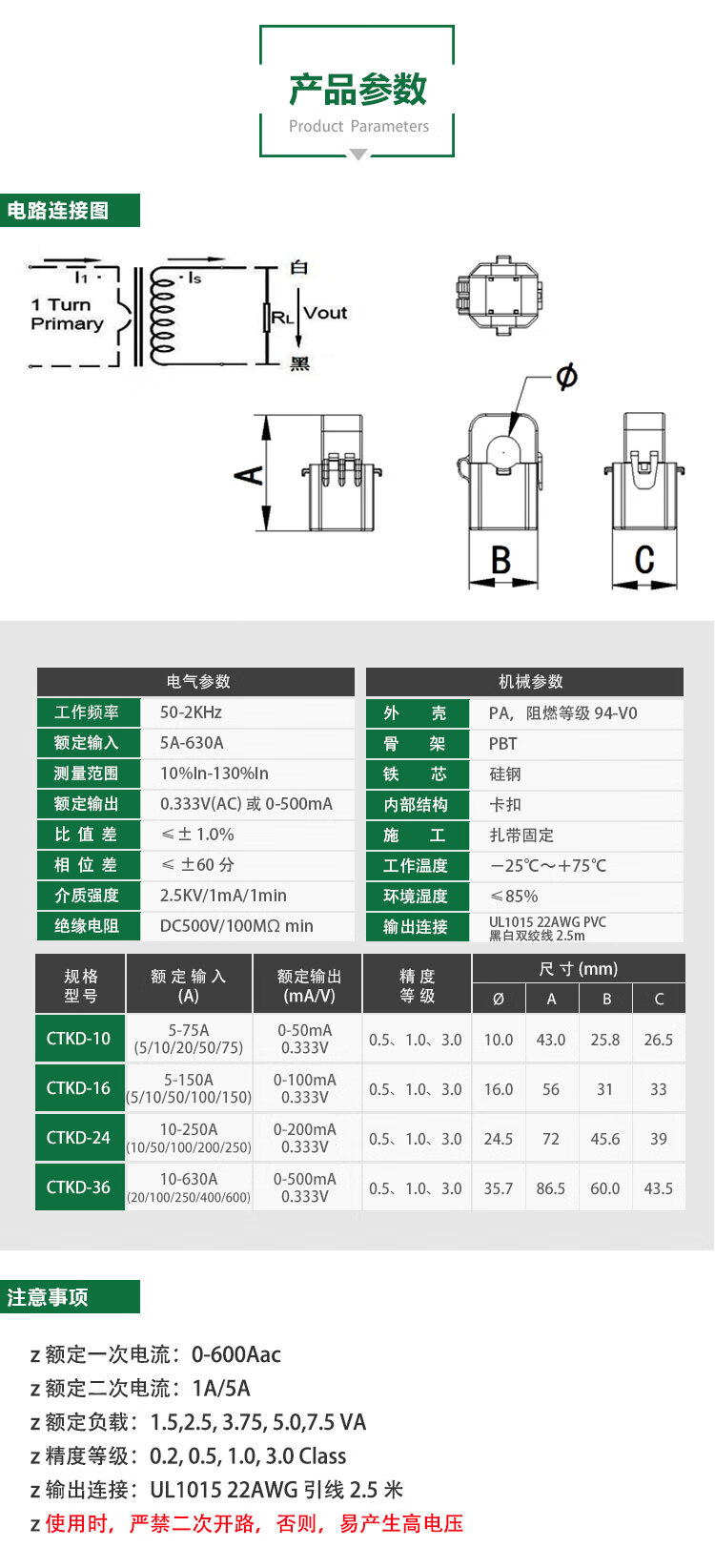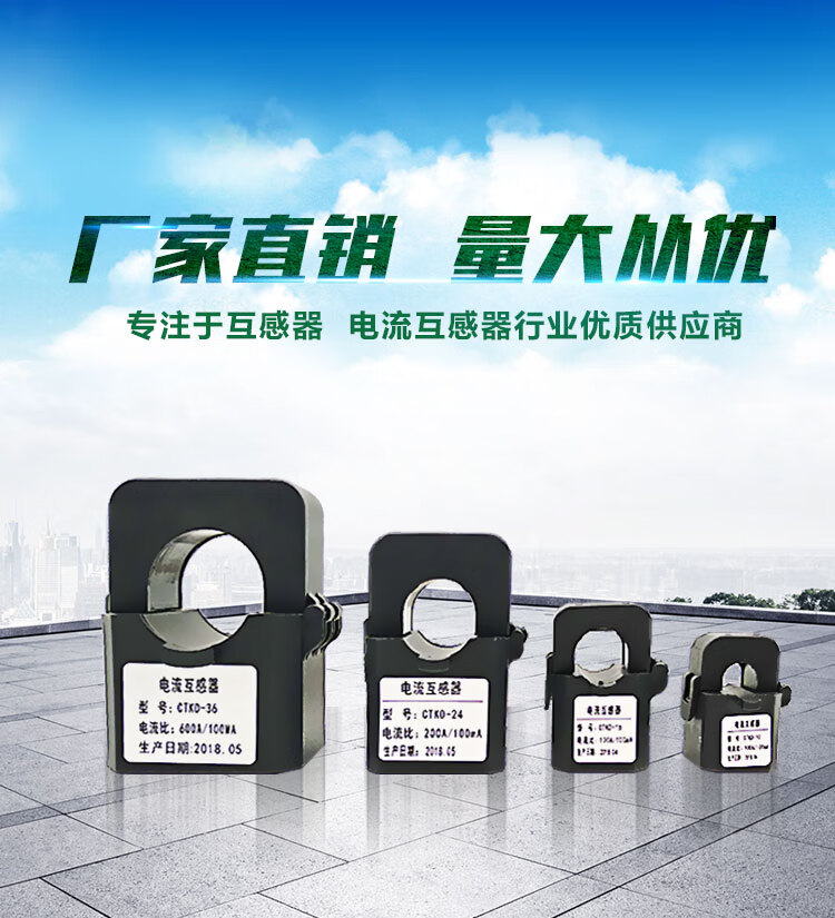 Open current transformer energy consumption management high frequency current monitoring electrical fire monitoring residual leakage zero sequence 16mm0-100A 2000/11A/05mA