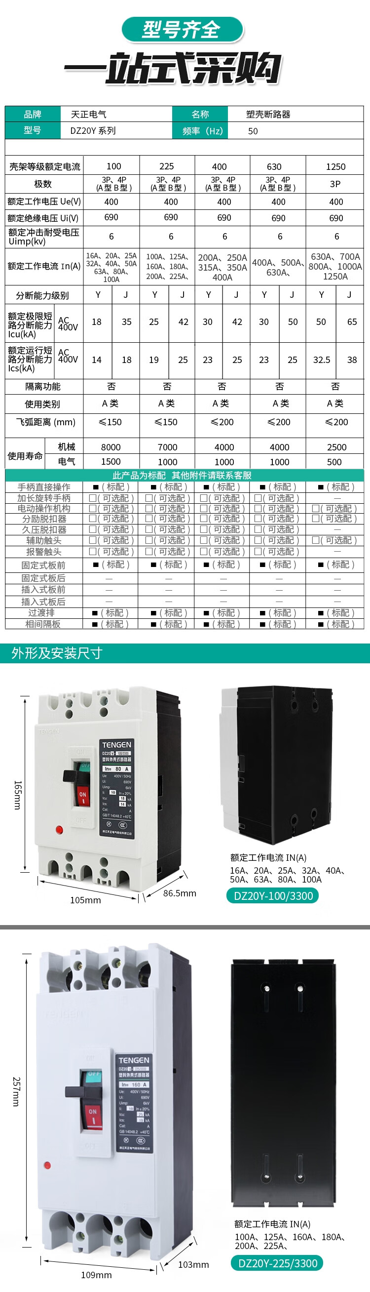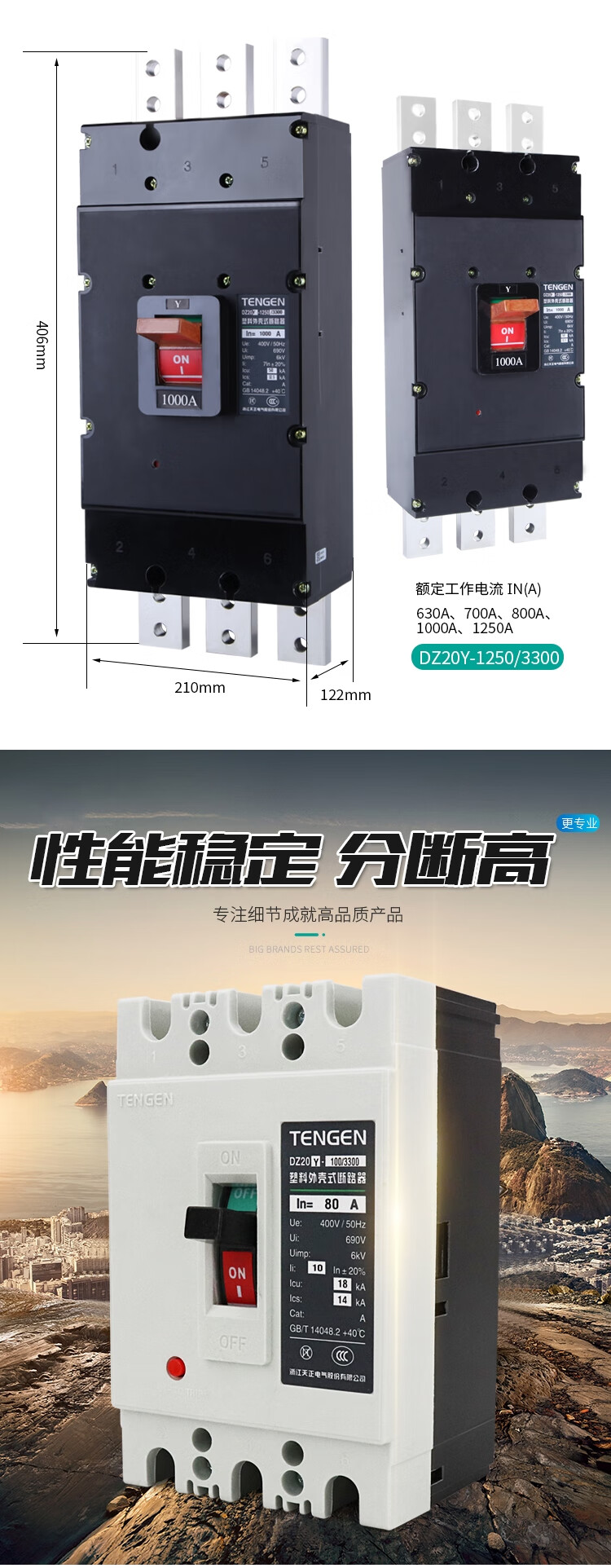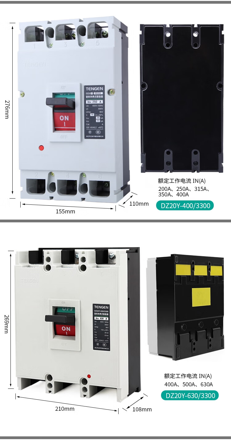 Tianzheng DZ20Y plastic case circuit breaker 3300 air switch 3P three-phase 100A 225 400A 630A 380V DZ20Y-400 (200A-400A) white shell