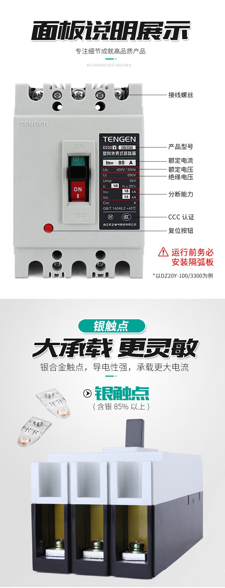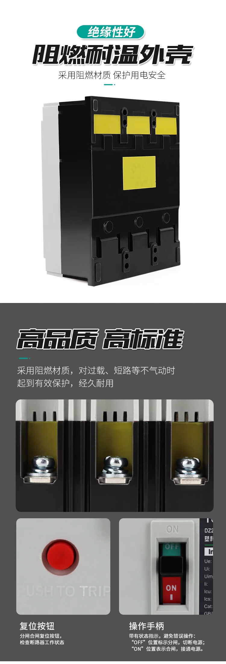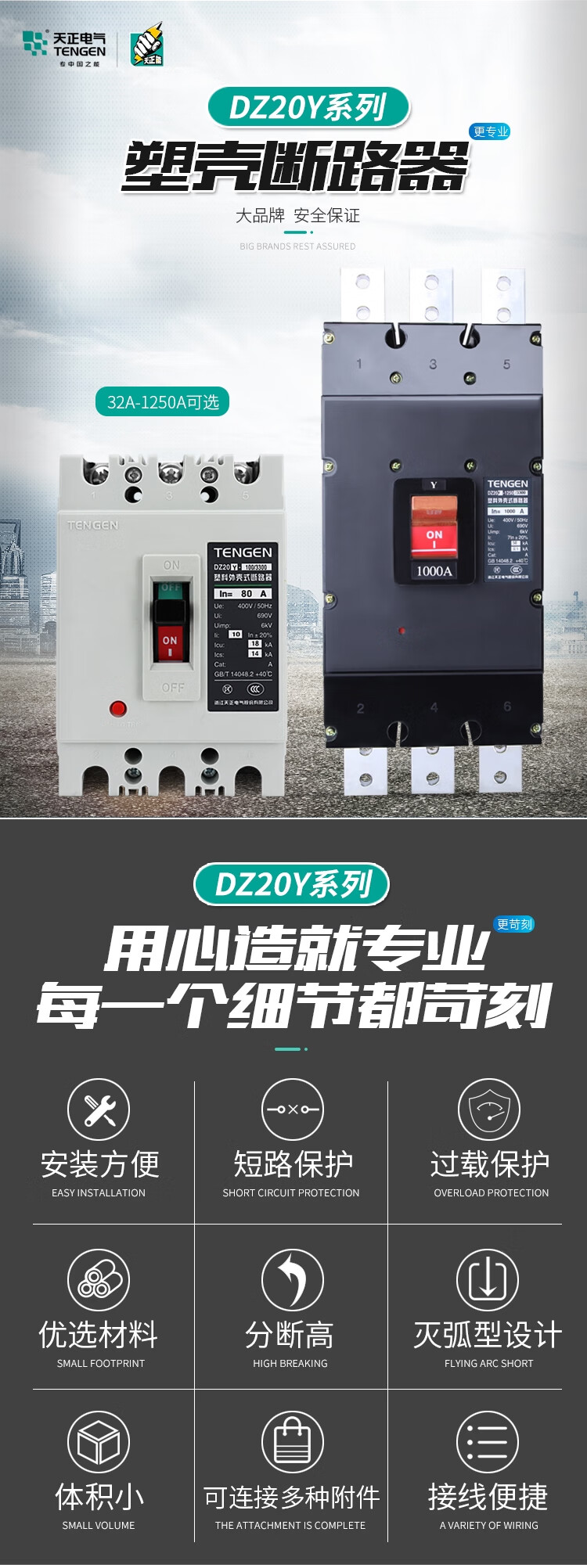 Tianzheng DZ20Y plastic case circuit breaker 3300 air switch 3P three-phase 100A 225 400A 630A 380V DZ20Y-400 (200A-400A) white shell