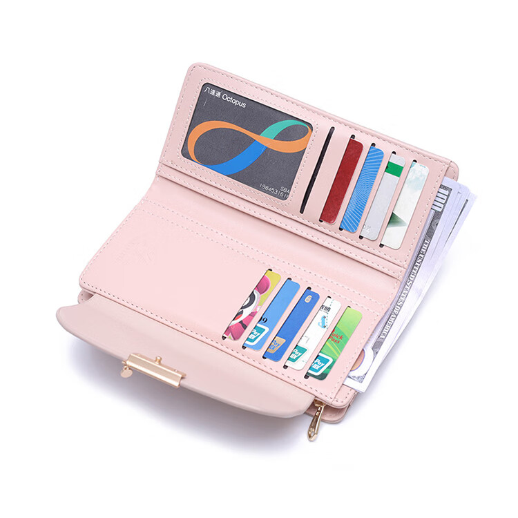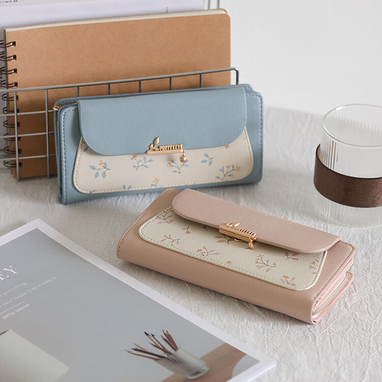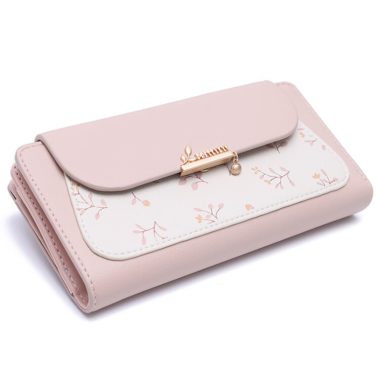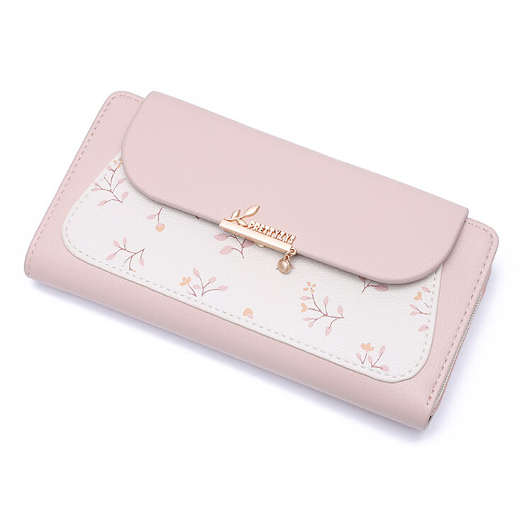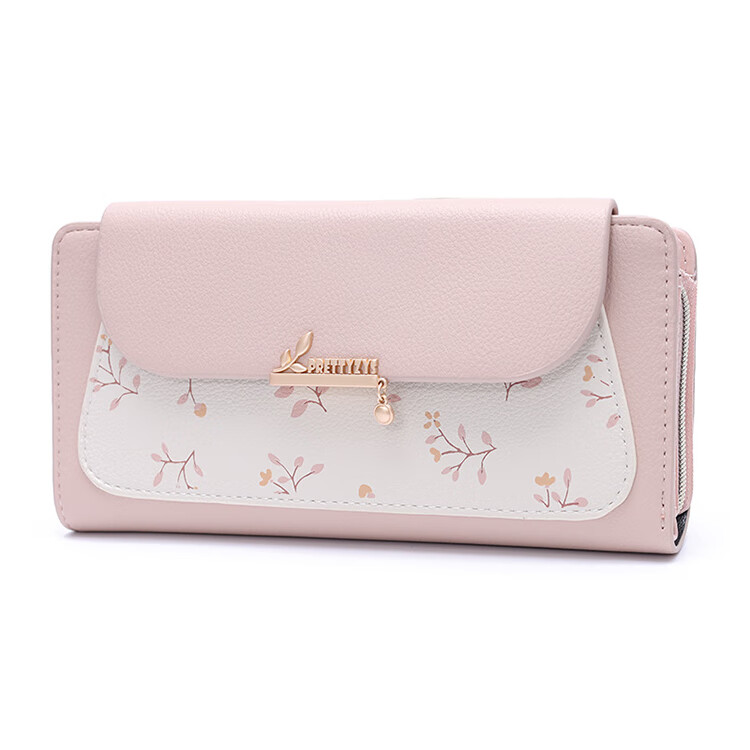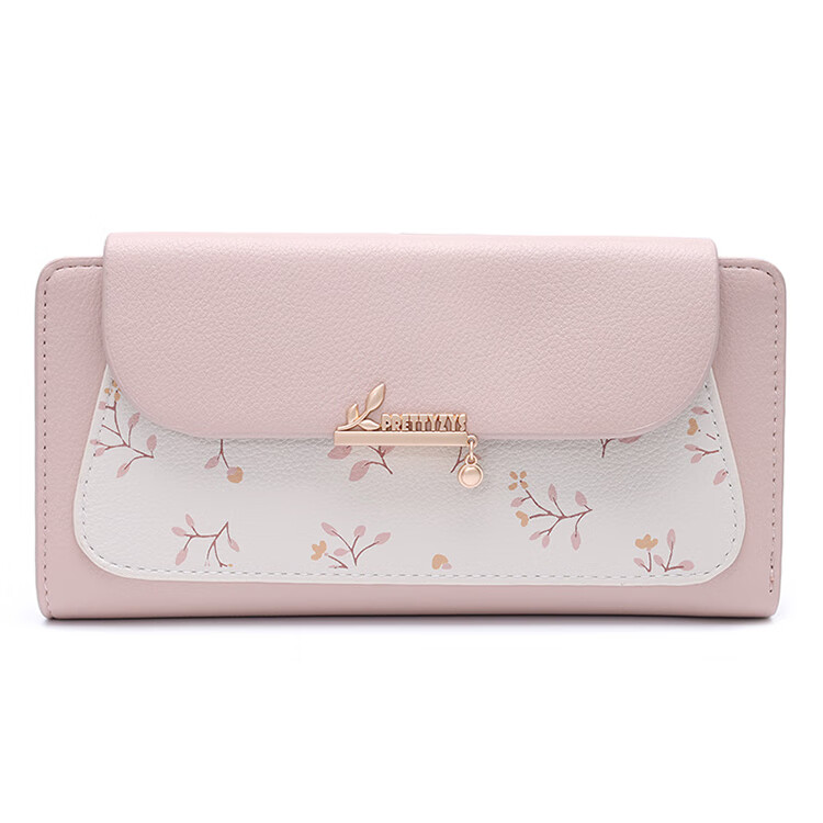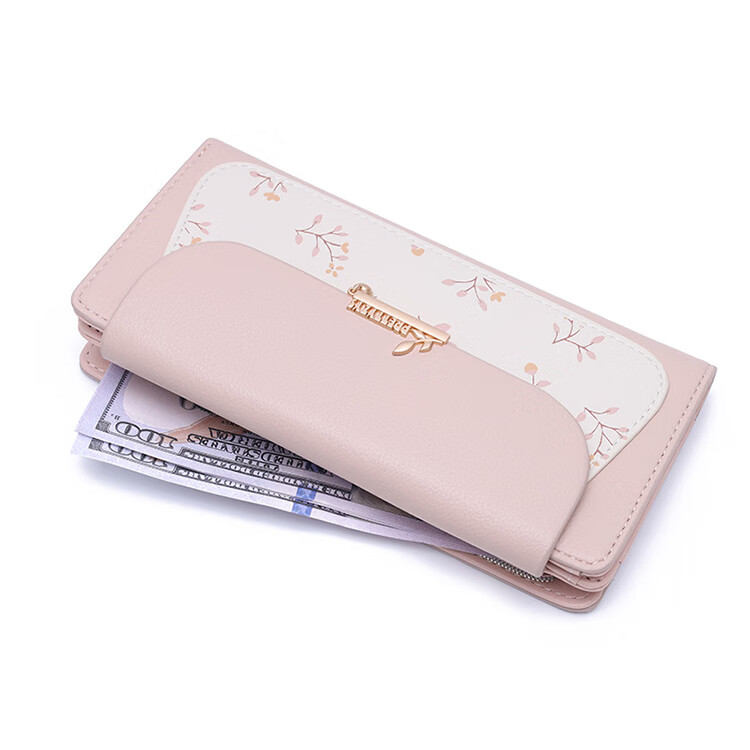 Casa-kupsCK small fresh printed long pink wallet for women 2025 new large capacity folding card bag women's clutch pink