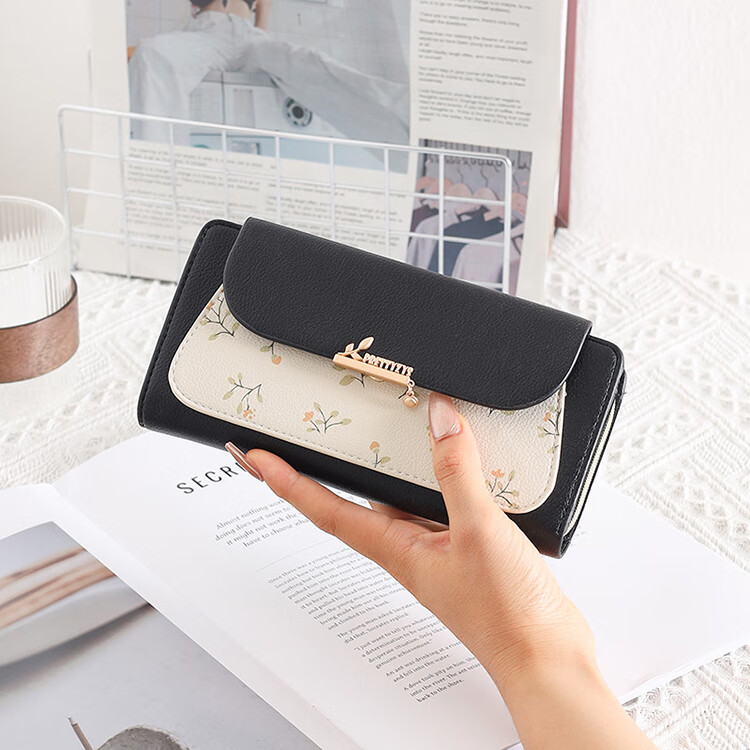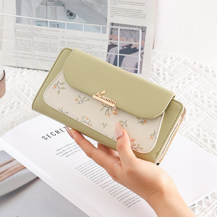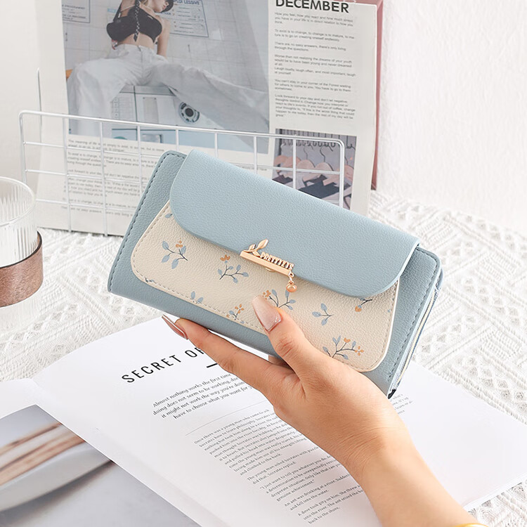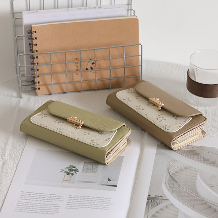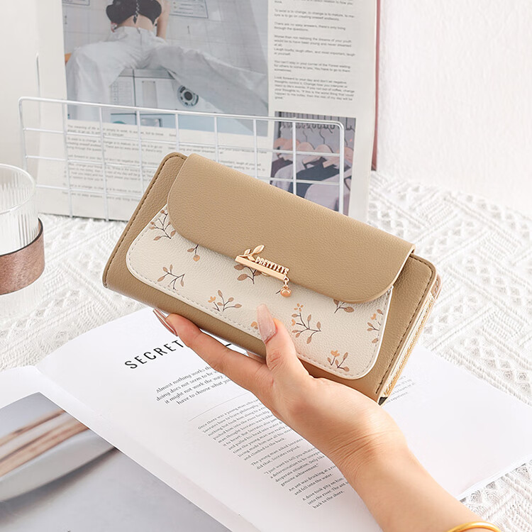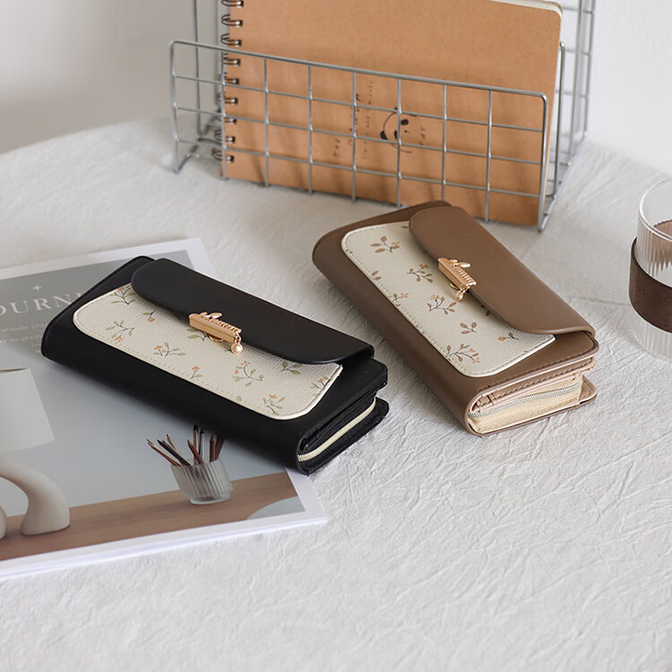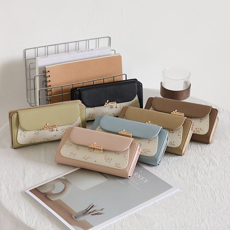 Casa-kupsCK small fresh printed long pink wallet for women 2025 new large capacity folding card bag women's clutch pink