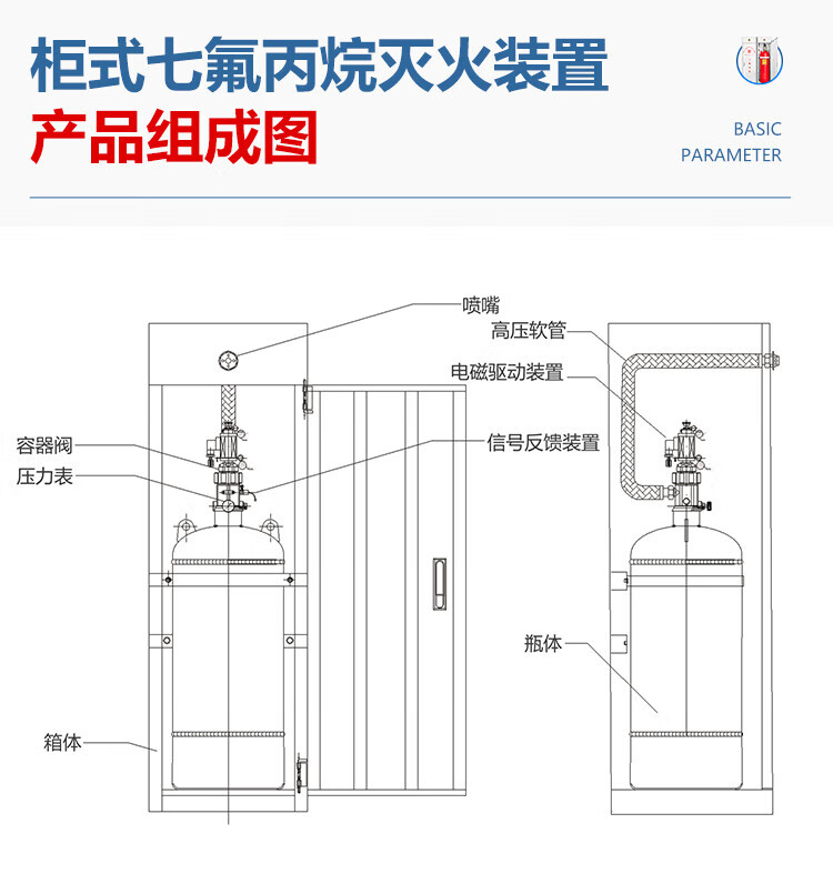 Cabinet type heptafluoropropane gas fire extinguishing device GQQ70L distribution room machine room automatic fire extinguishing fire protection customization 40L cabinet type heptafluoropropane gas fire extinguishing device-customized model