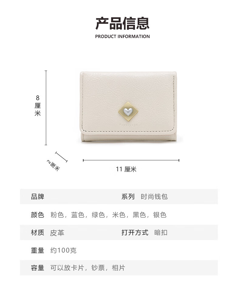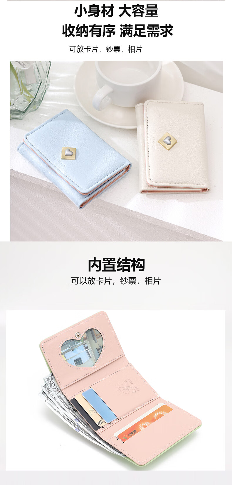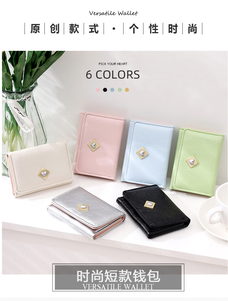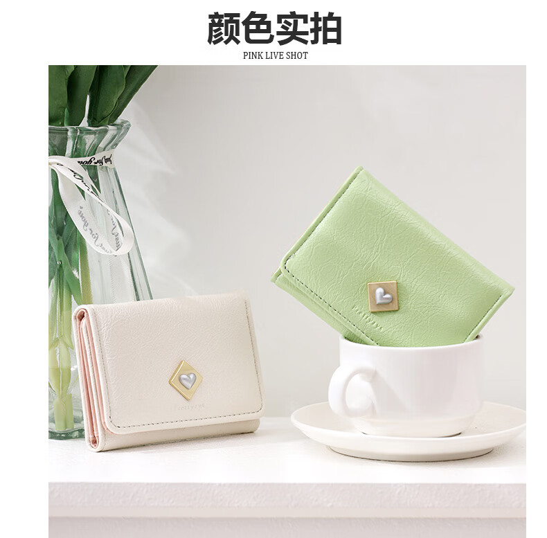 Casa-kupsCK Korean version of the new sweet girly heart mini folding short wallet student niche short wallet off-white
