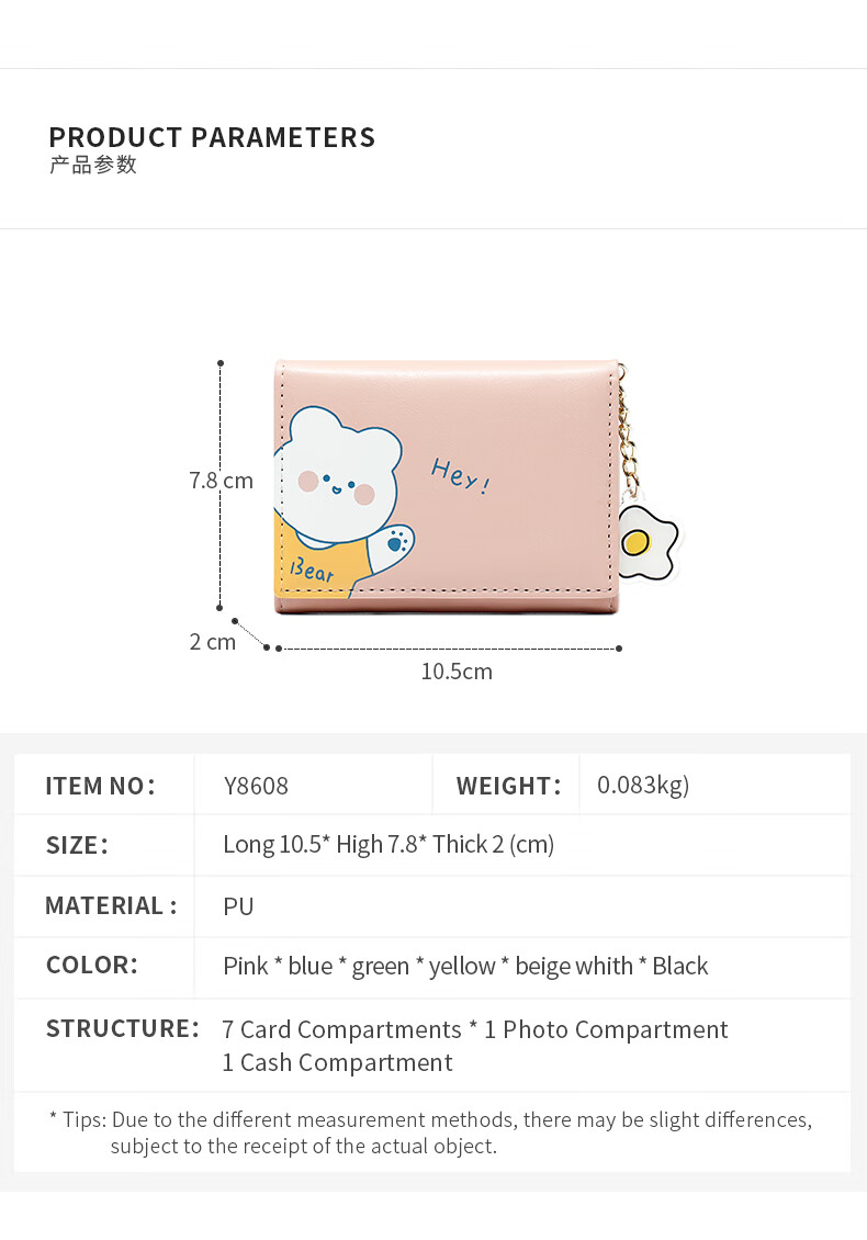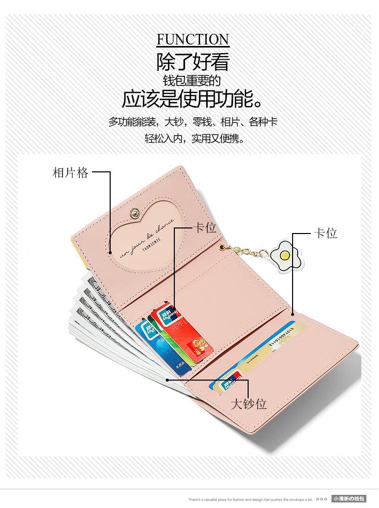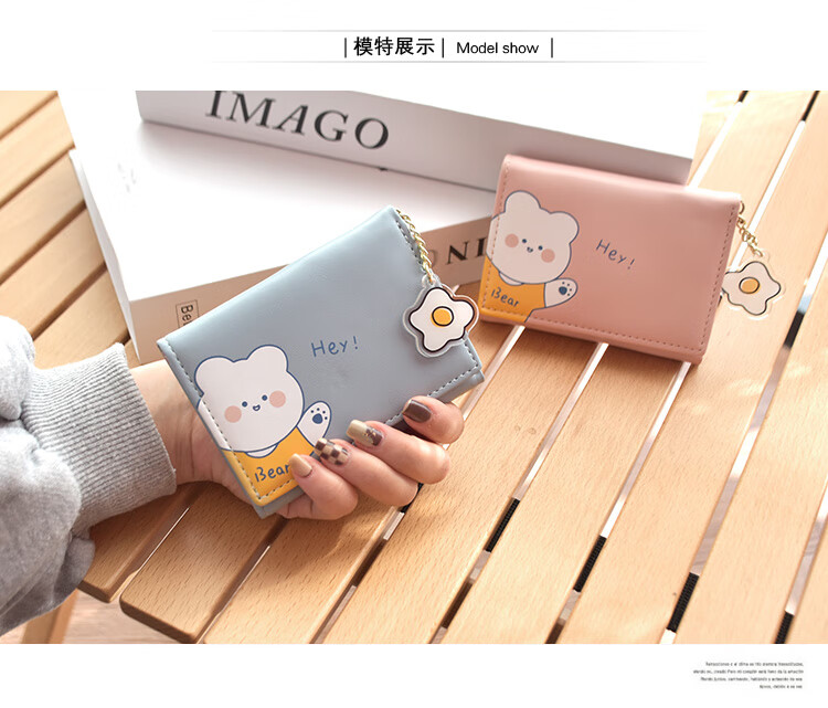 Casa-kupsCK Japanese and Korean small fresh printed short folding women's small wallet mini fashion trendy cute student small wallet 8608 pink