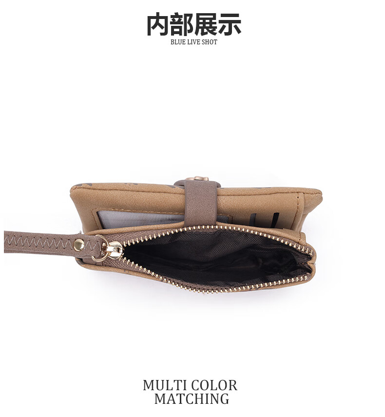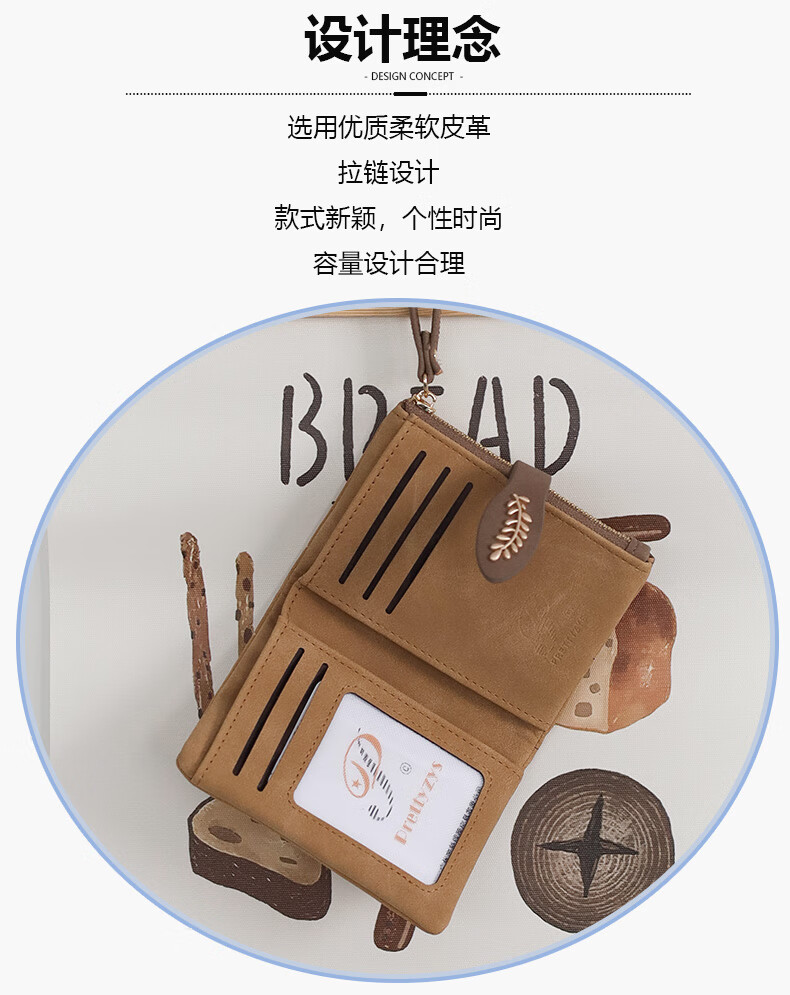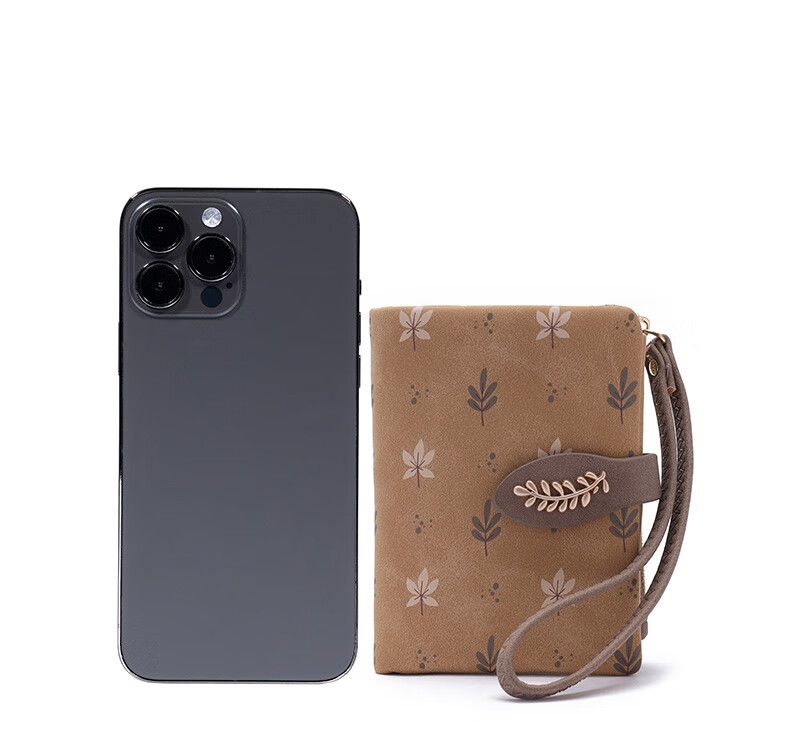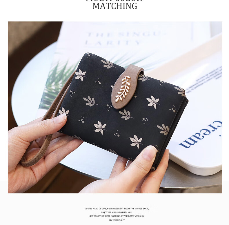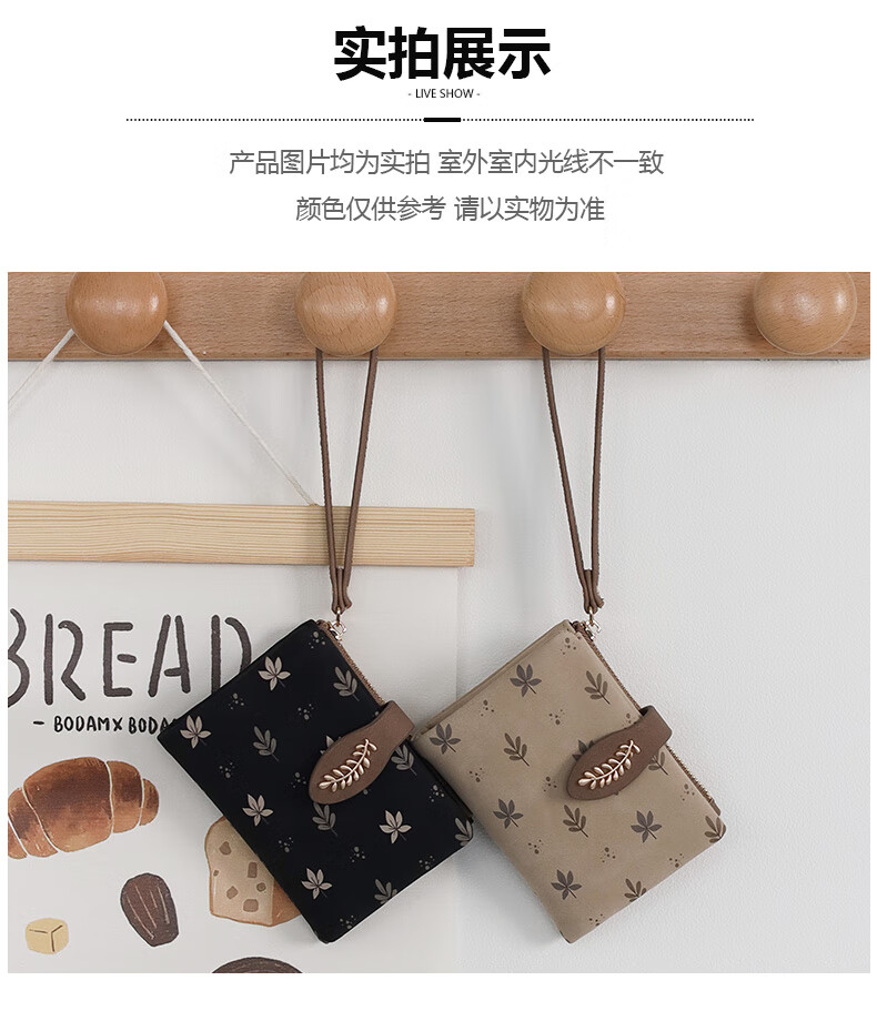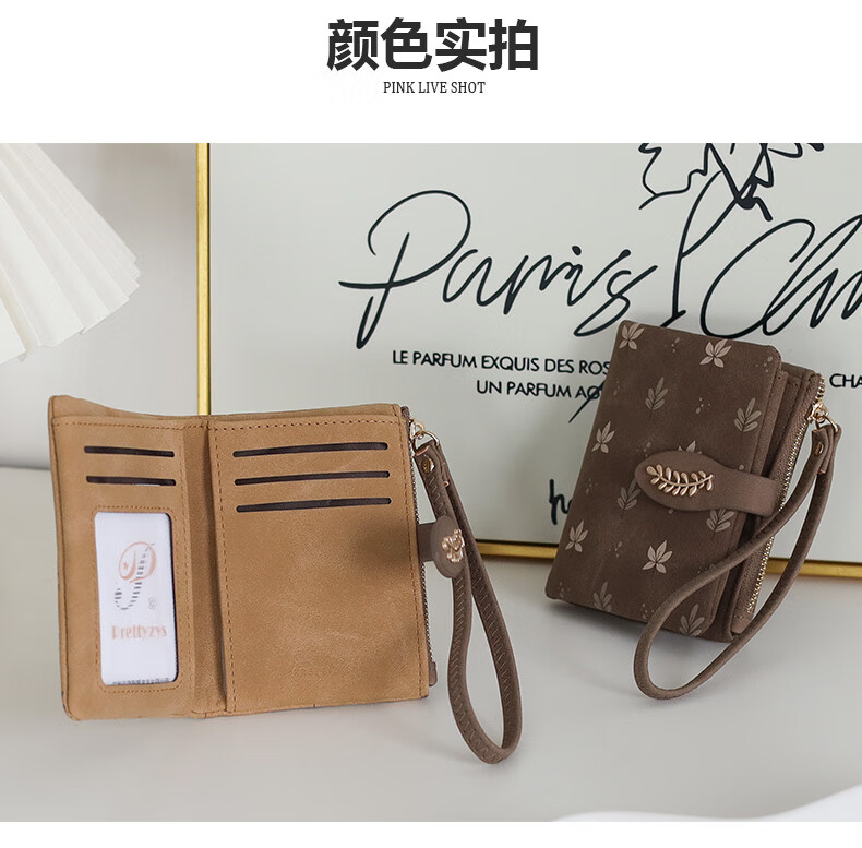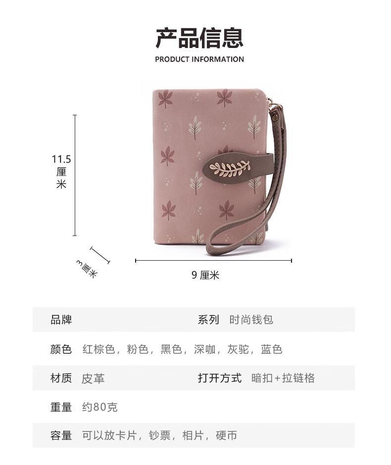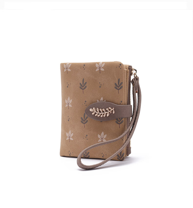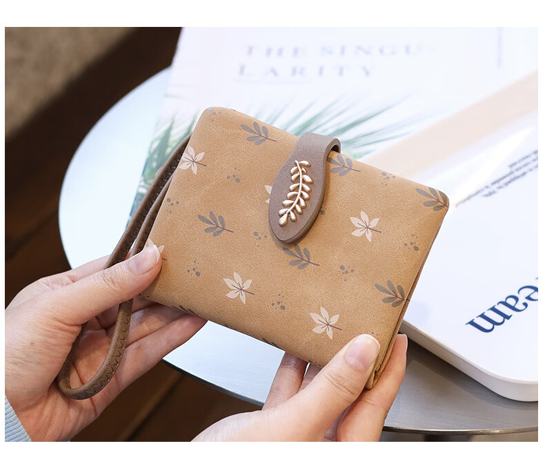 Casa-kupsCK Korean style small fresh leaf print short women's wallet hand strap niche design multi-card slot student coin purse pink