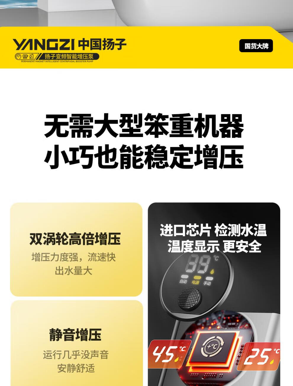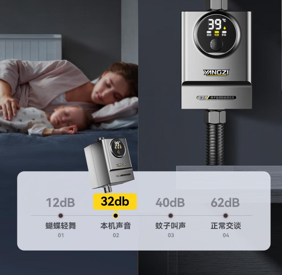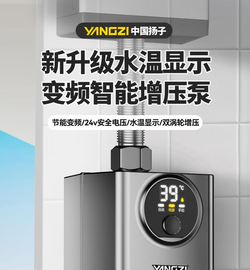 Yangzi Water Heater Booster Pump Household Fully Automatic Tap Water Pressure Shower Special Gas Toilet Pressure Pump 130W-24V Water Heater-Faucet-Shower-