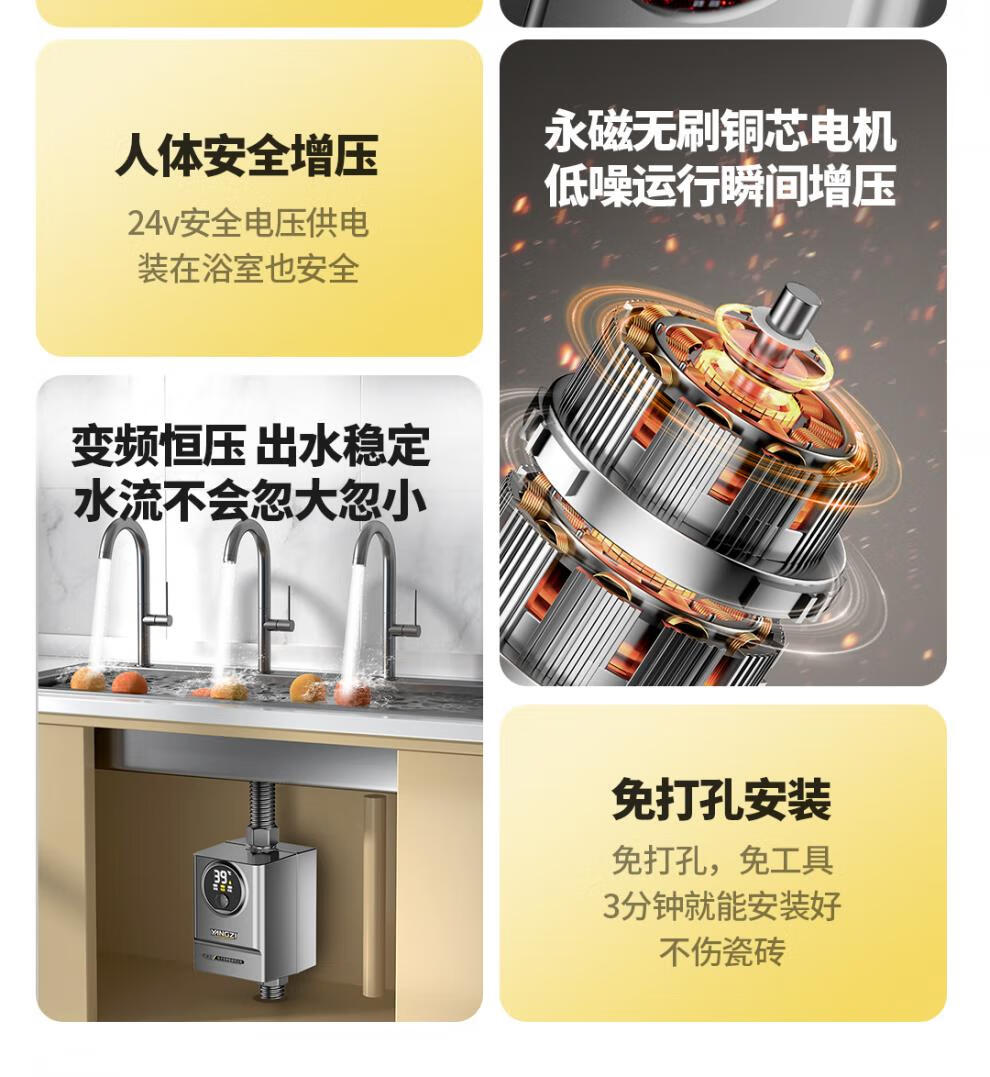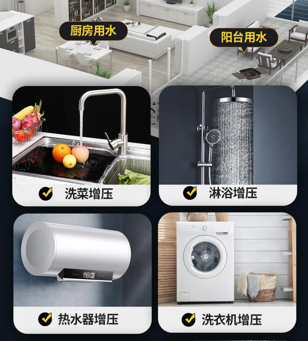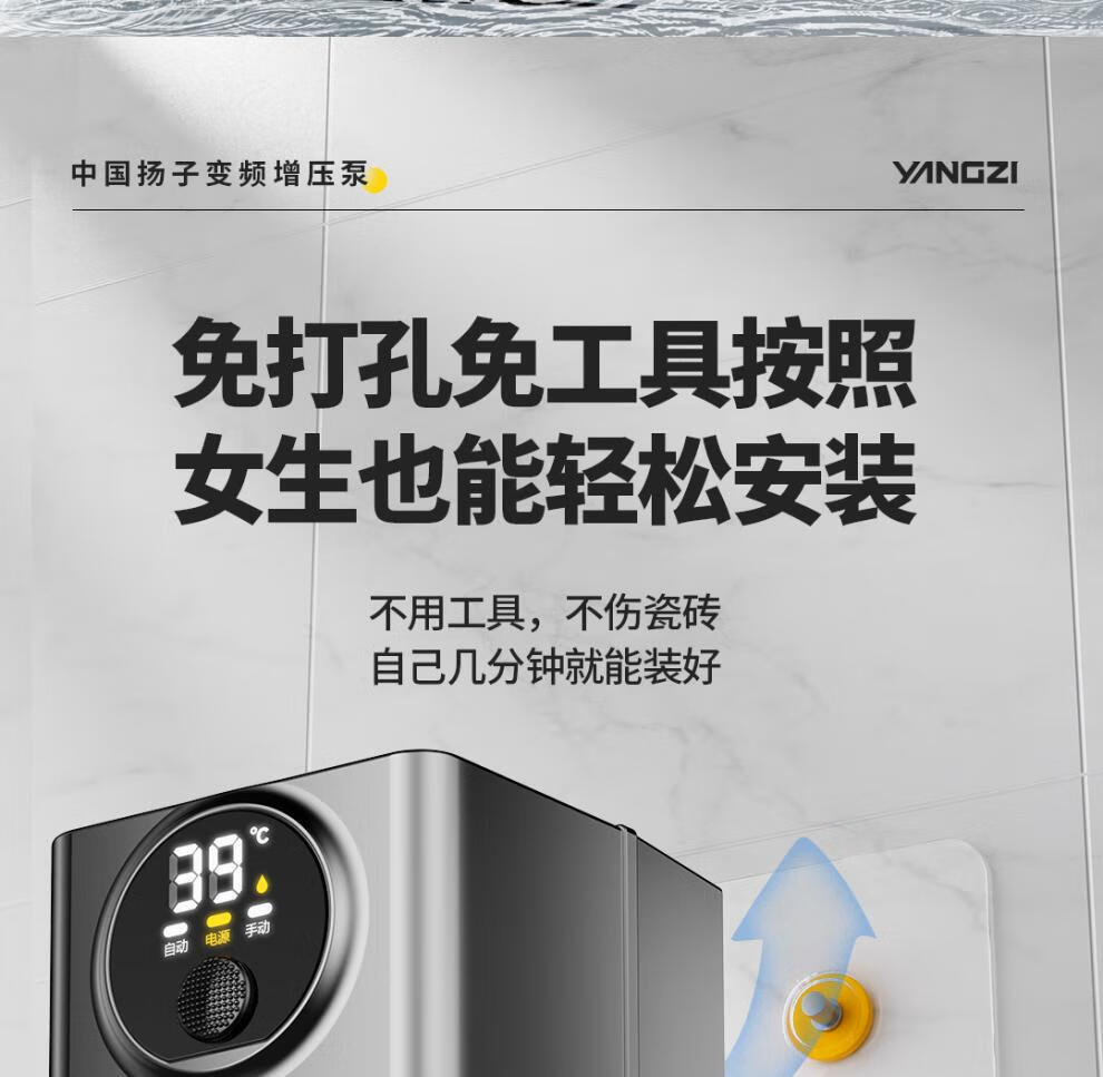 Yangzi Water Heater Booster Pump Household Fully Automatic Tap Water Pressure Shower Special Gas Toilet Pressure Pump 130W-24V Water Heater-Faucet-Shower-