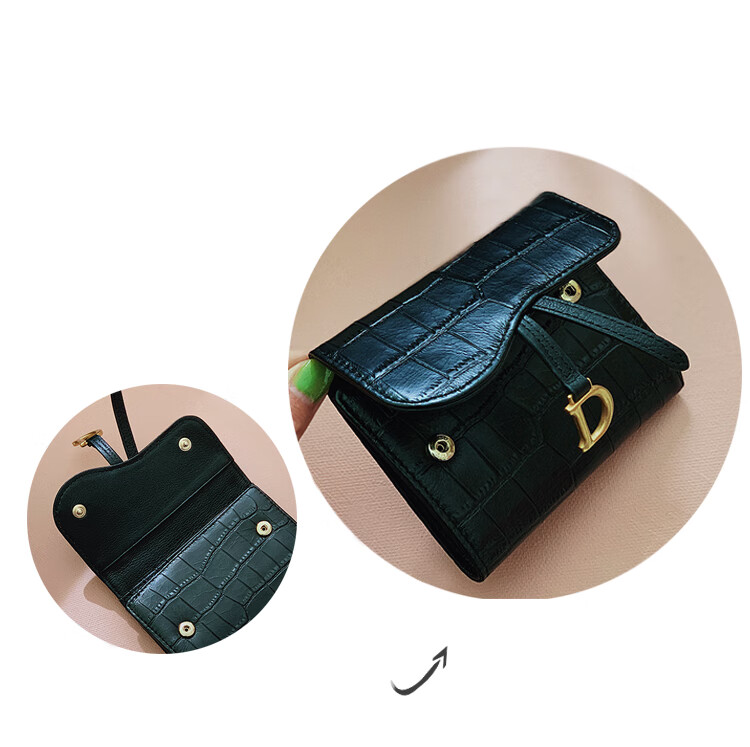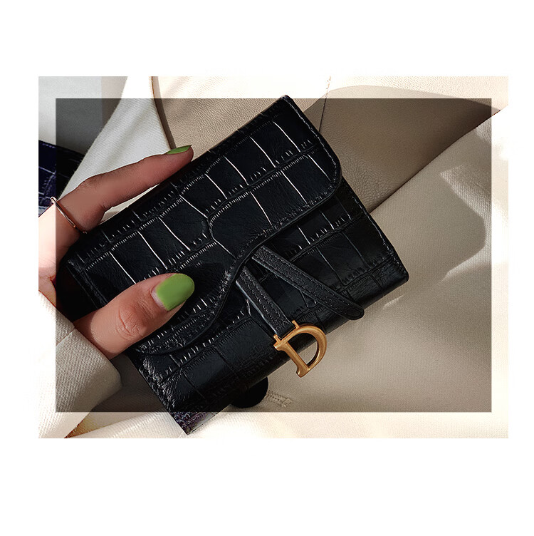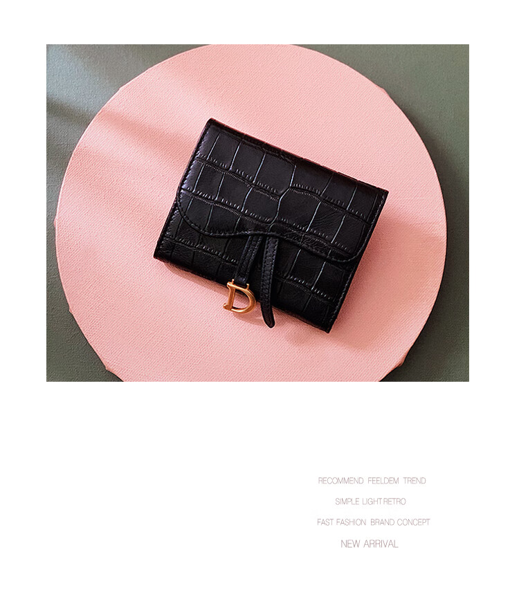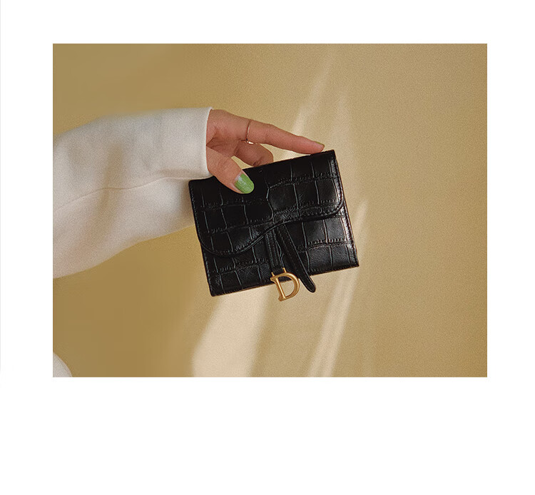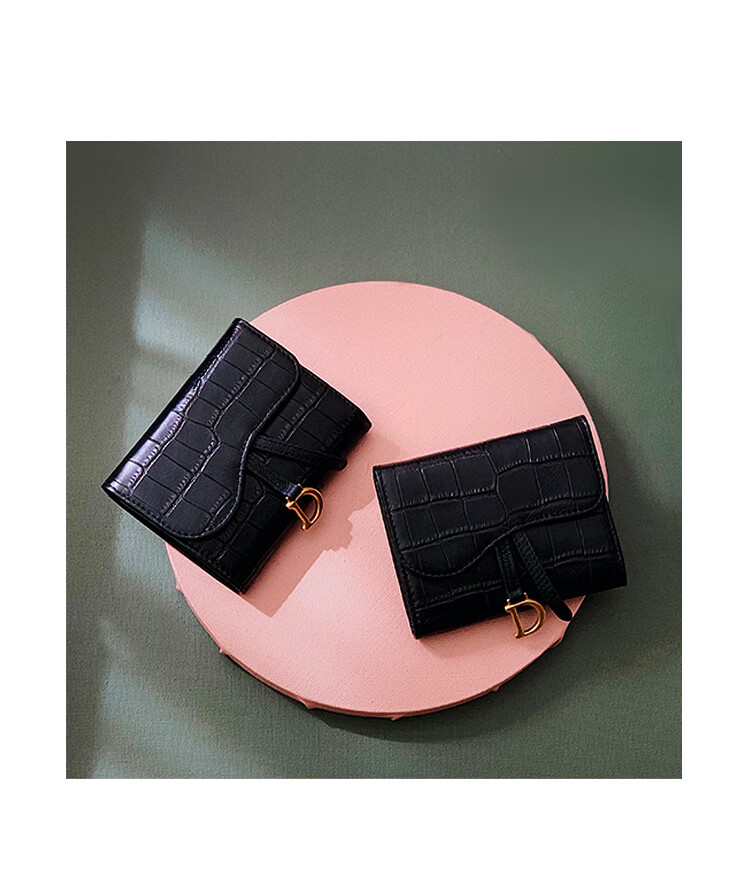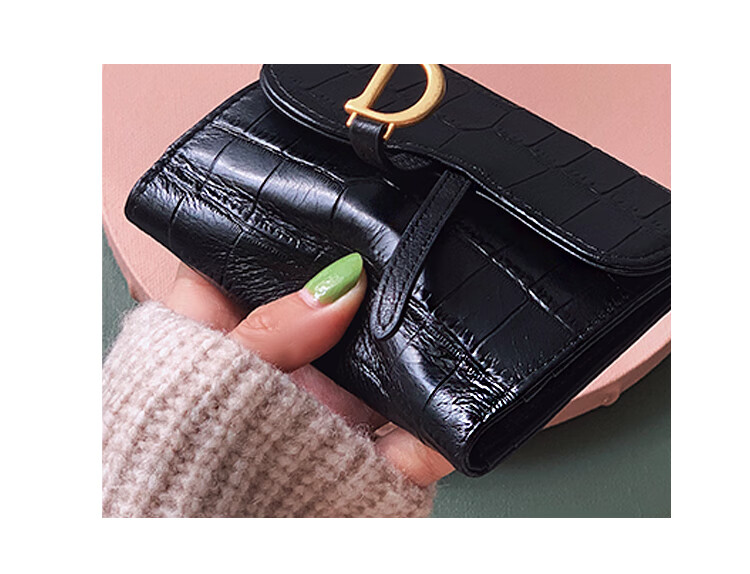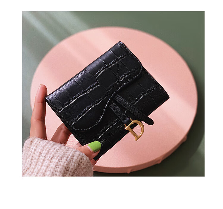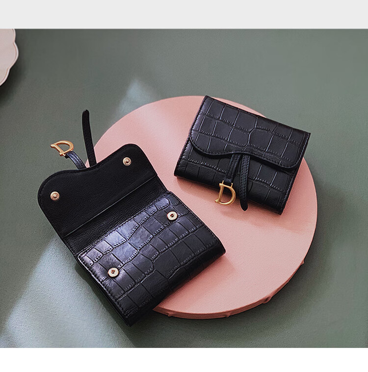 Casa-kupsCK genuine leather wallet women's short European and American 2025 new crocodile pattern cowhide embossed buckle coin purse three-fold card holder black