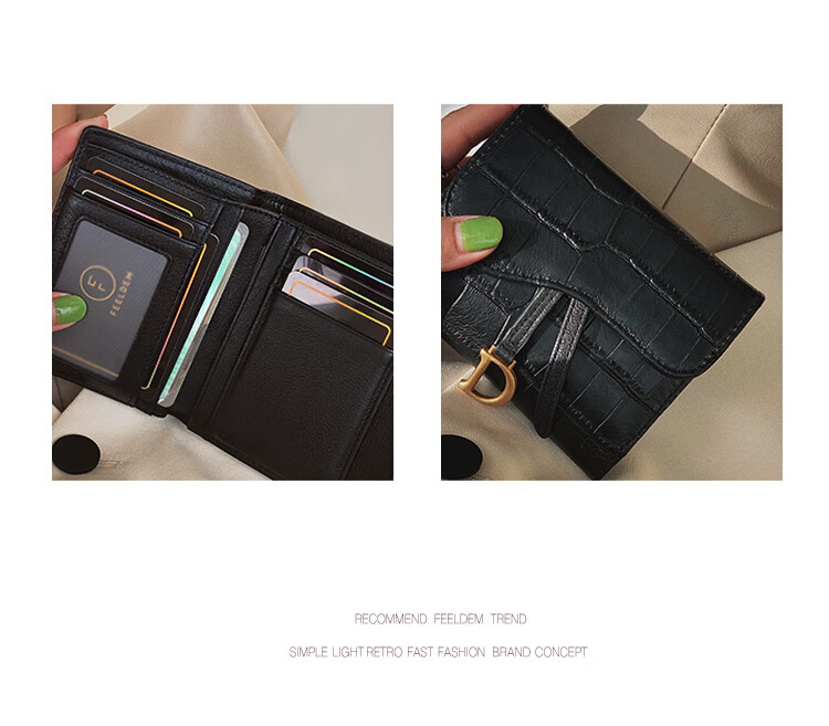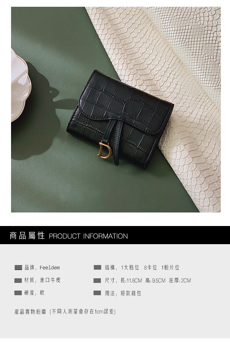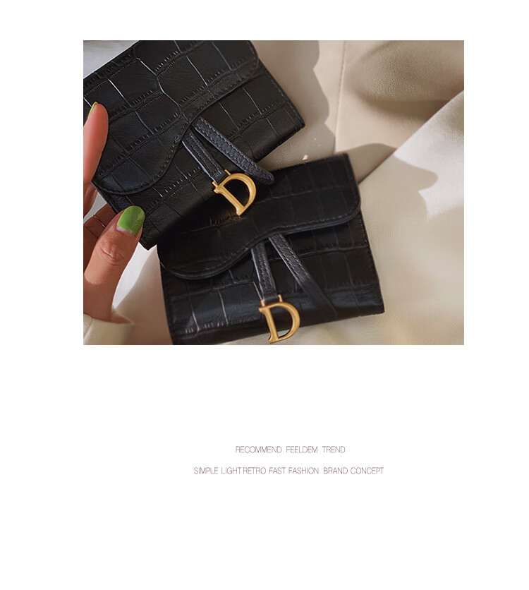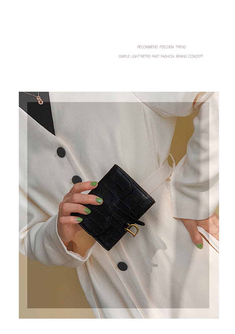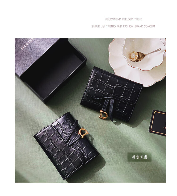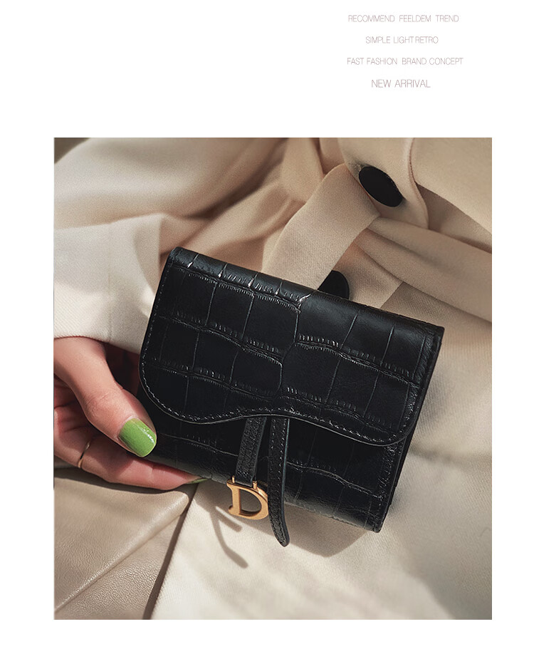 Casa-kupsCK genuine leather wallet women's short European and American 2025 new crocodile pattern cowhide embossed buckle coin purse three-fold card holder black