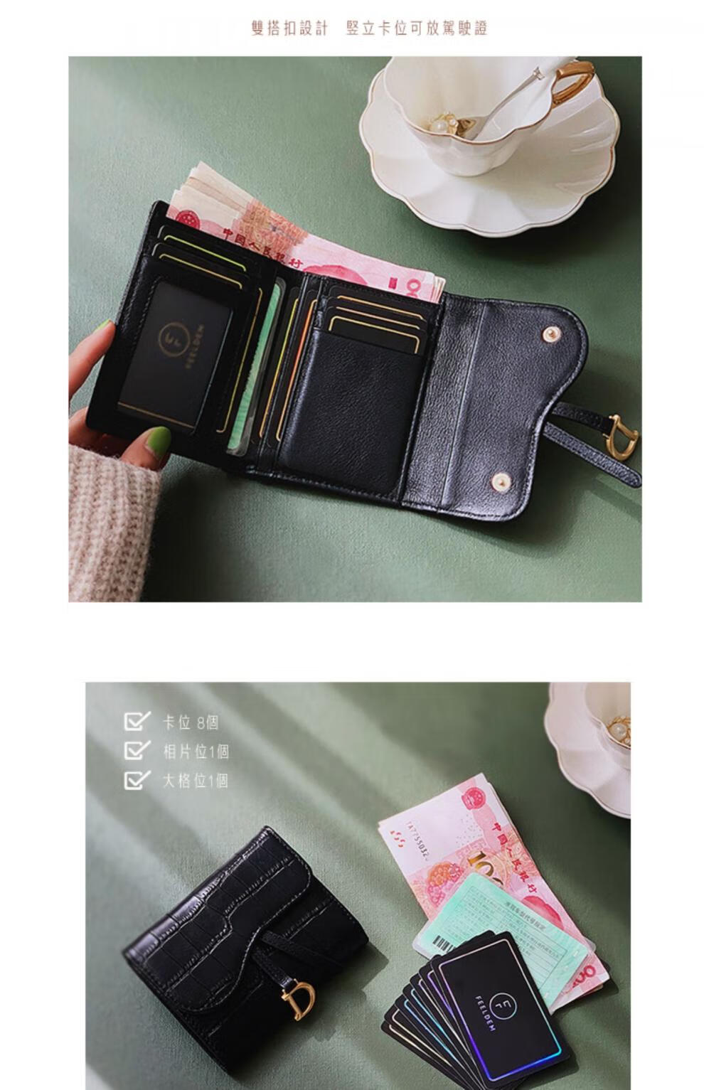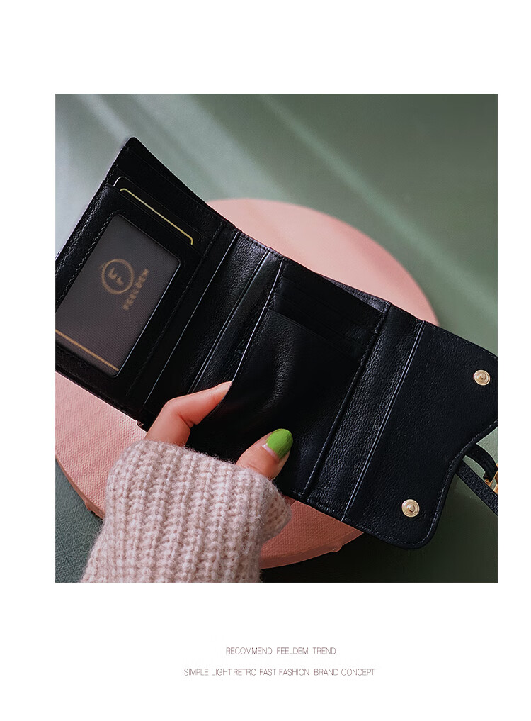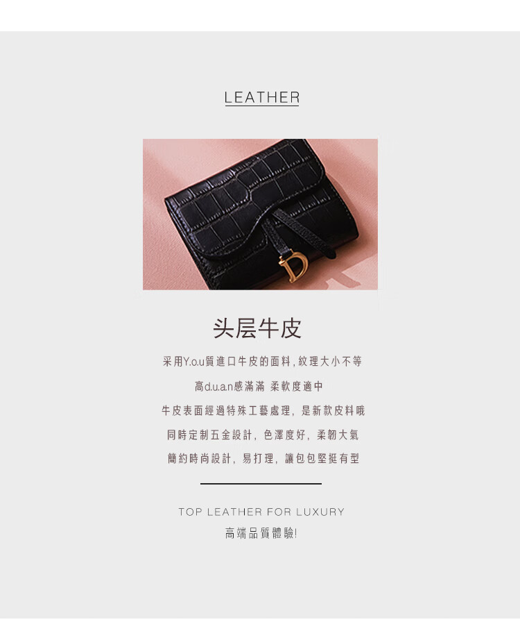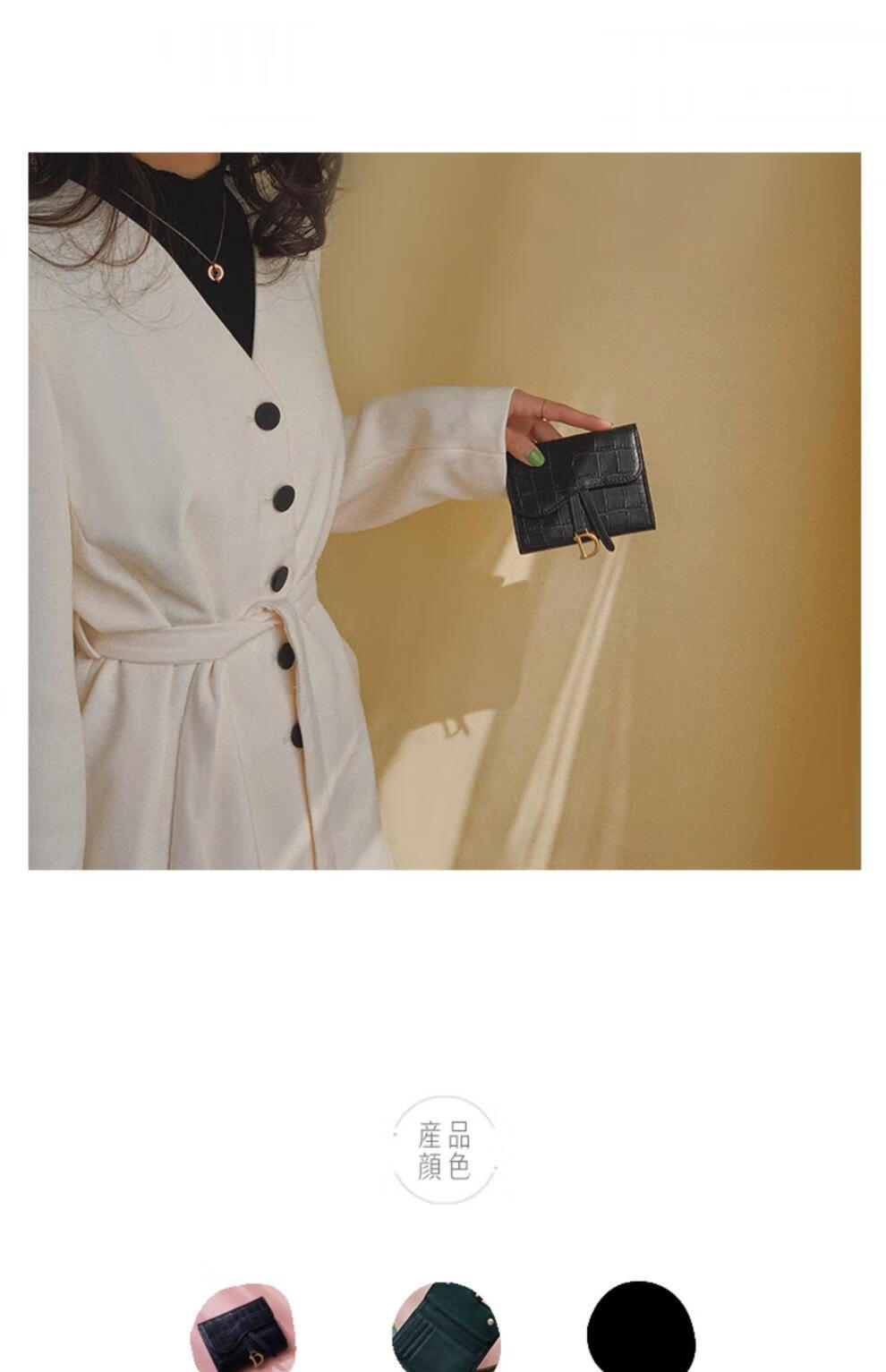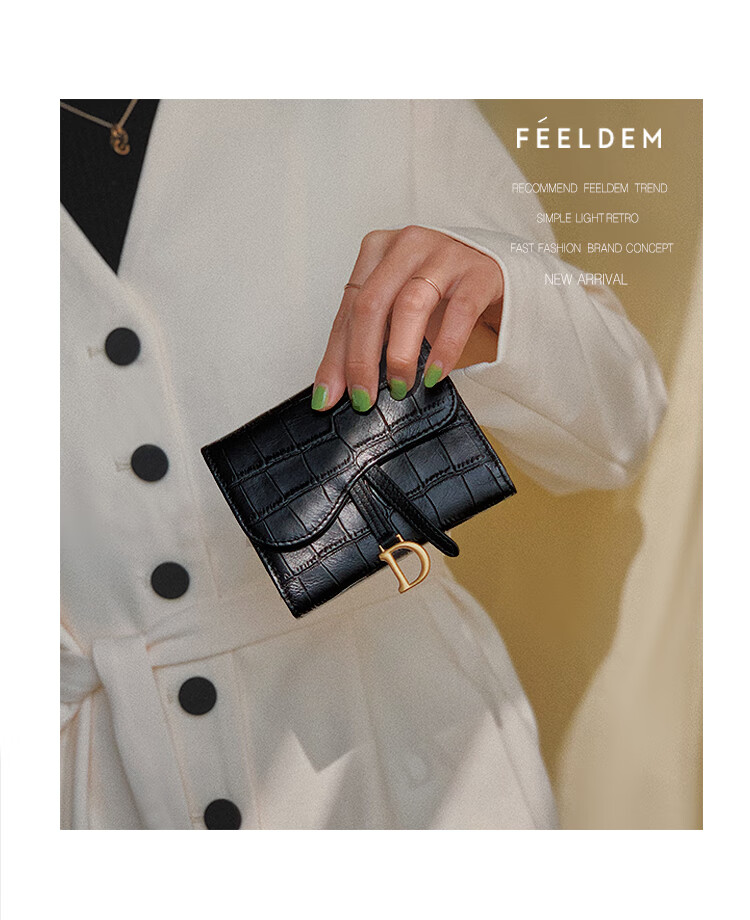 Casa-kupsCK genuine leather wallet women's short European and American 2025 new crocodile pattern cowhide embossed buckle coin purse three-fold card holder black