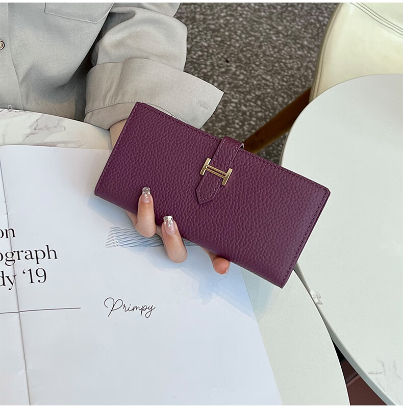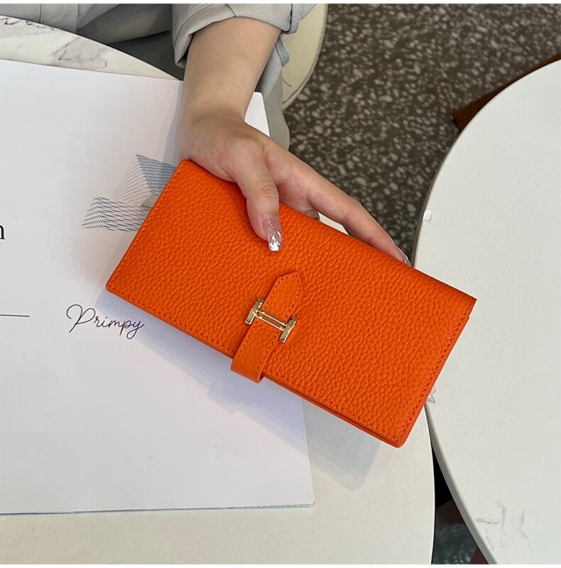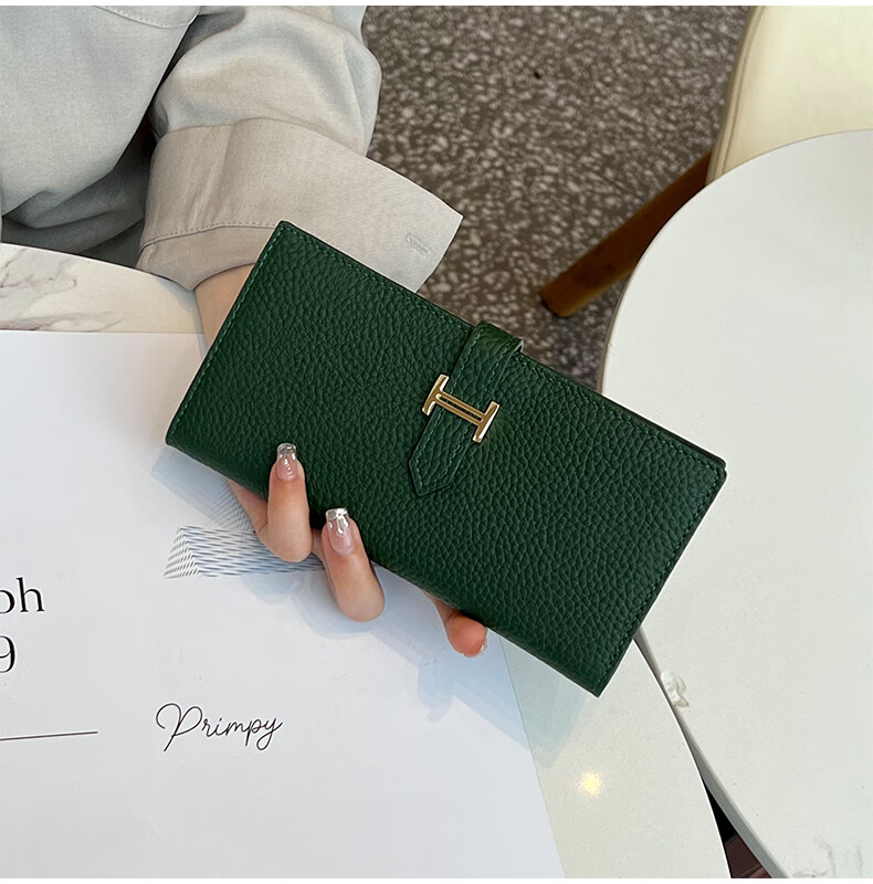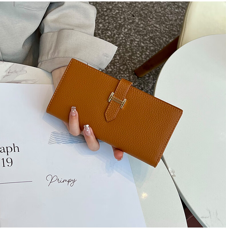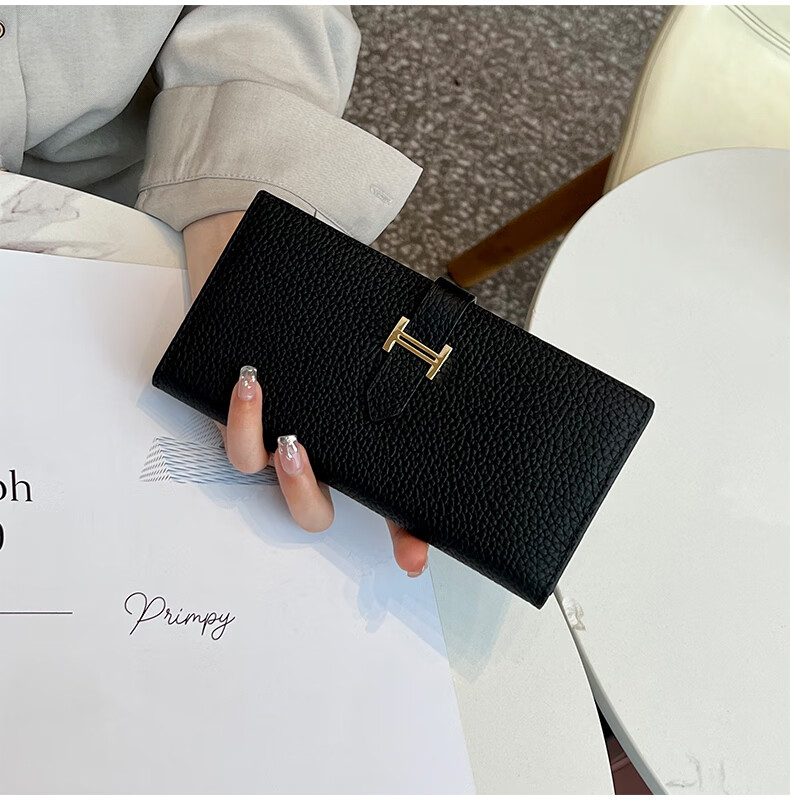 Casa-kupsCK pure cowhide genuine leather wallet women's long multi-functional 2025 new folding exquisite mobile phone bag black with box