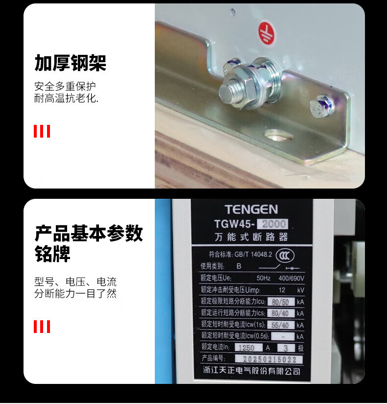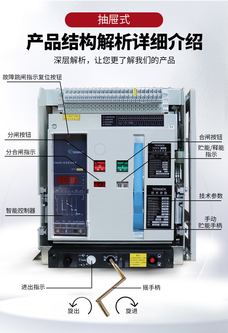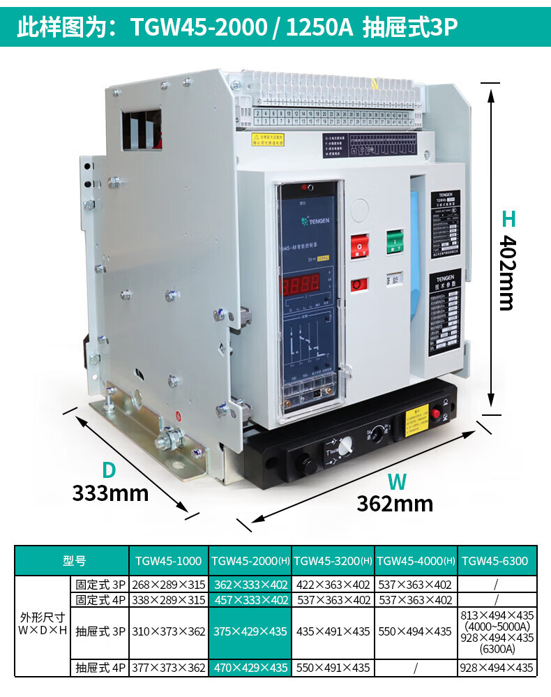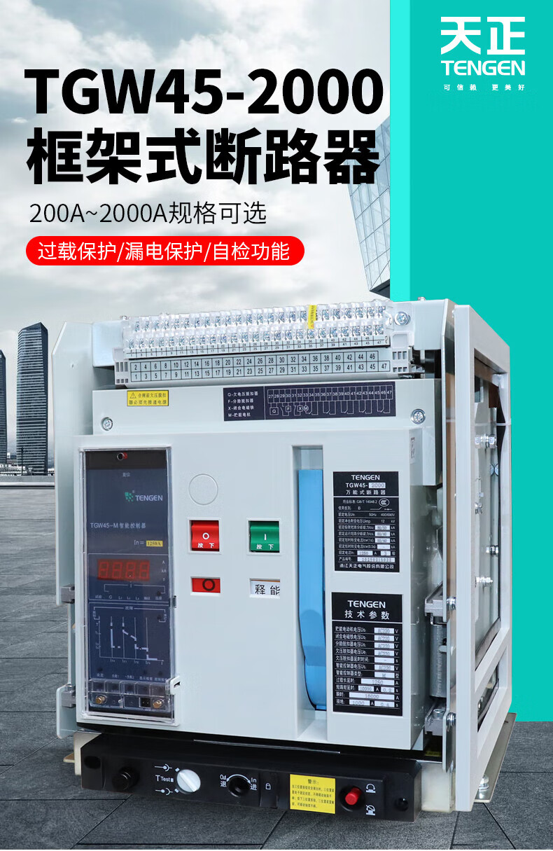 Tianzheng Electric TGW45-2000/3P intelligent frame circuit breaker 1600A1250A2000A TGW45-2000/3P 800A with undervoltage 220V fixed level