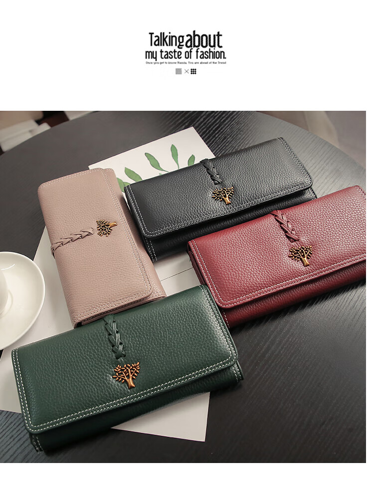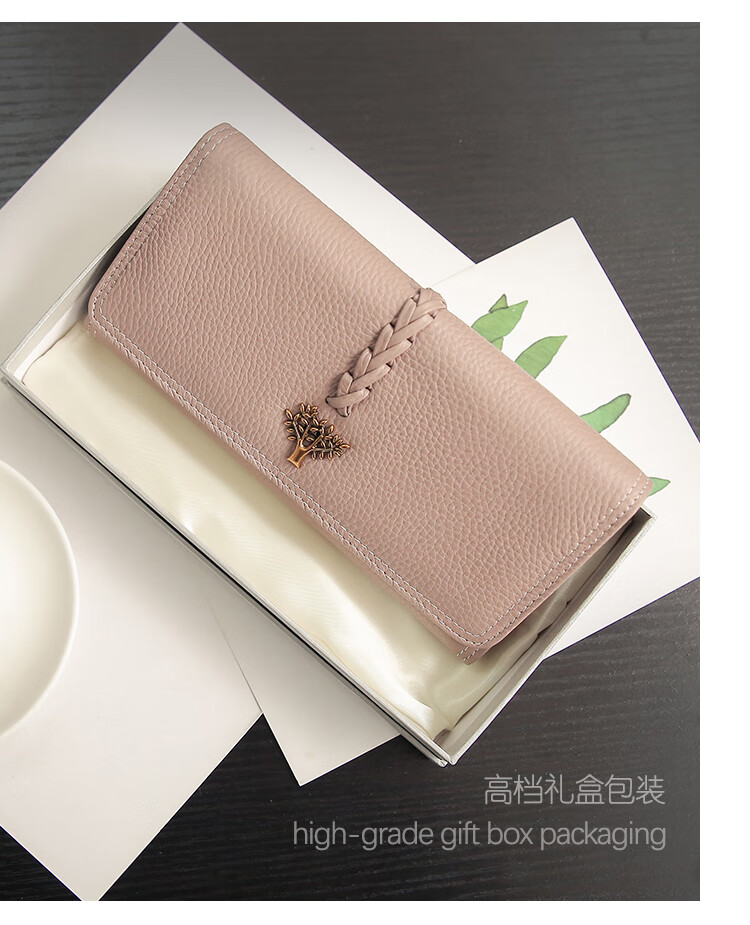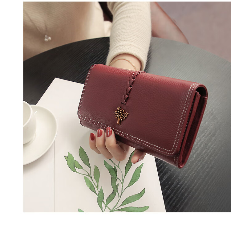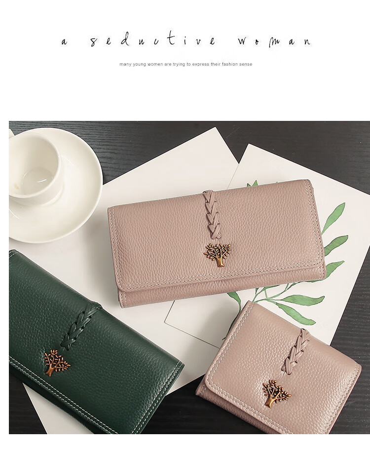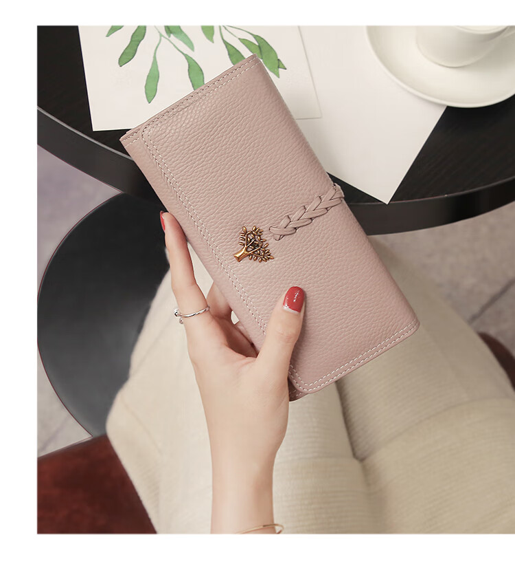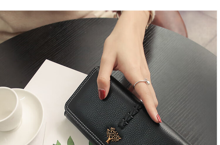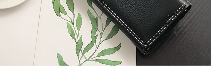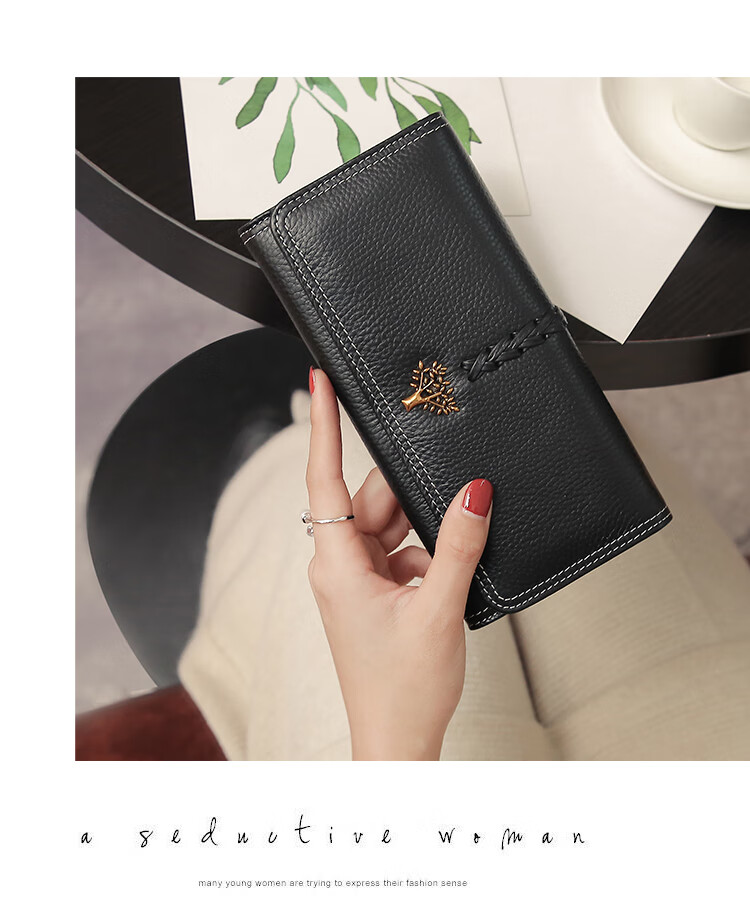 Casa-kupsCK Korean style trendy genuine leather two-fold women's wallet folding first layer cowhide wallet long wallet 2025 new style black