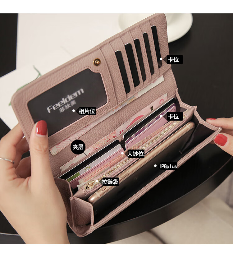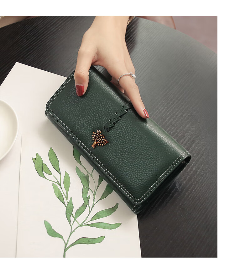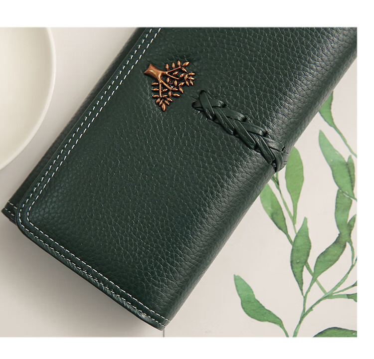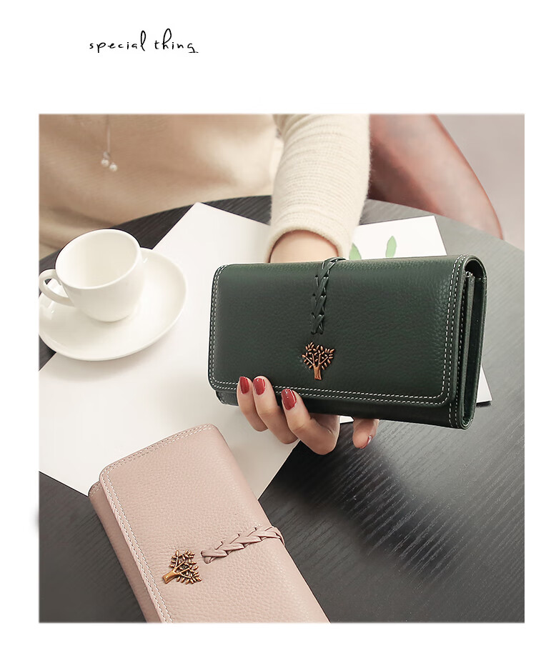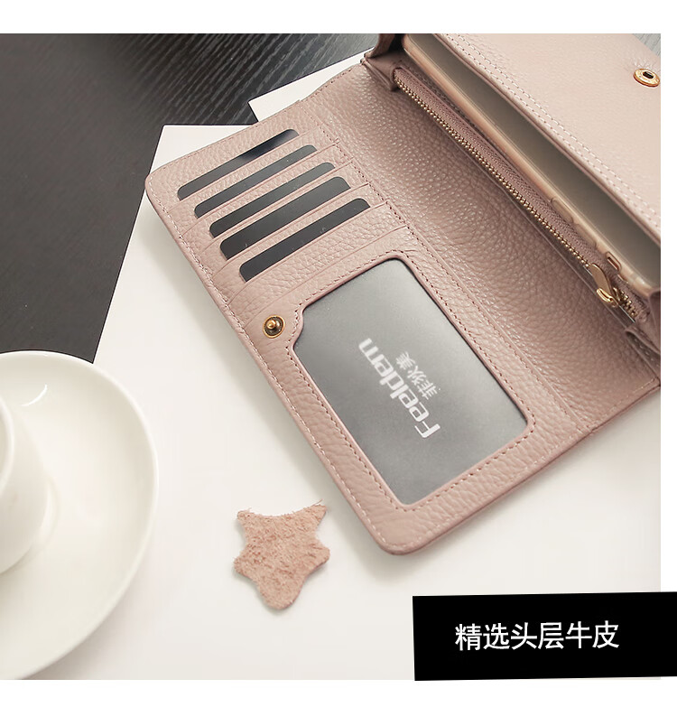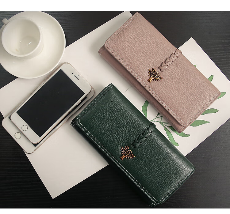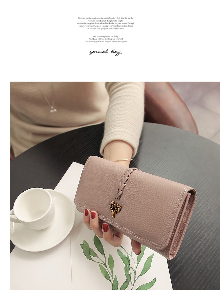 Casa-kupsCK Korean style trendy genuine leather two-fold women's wallet folding first layer cowhide wallet long wallet 2025 new style black