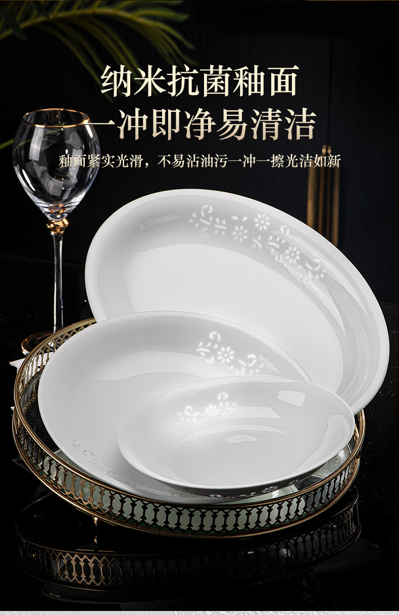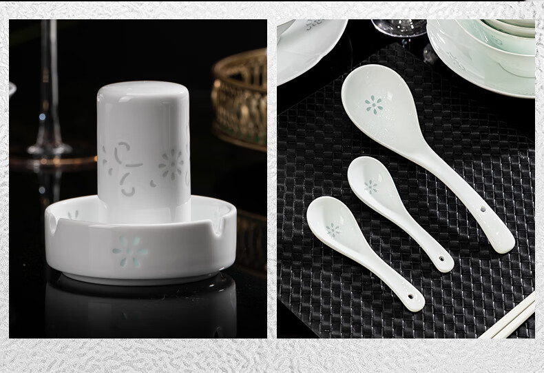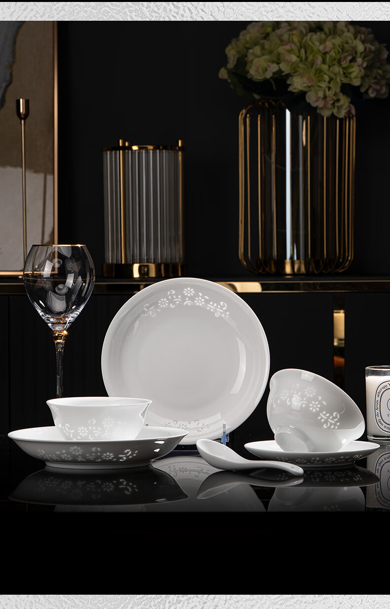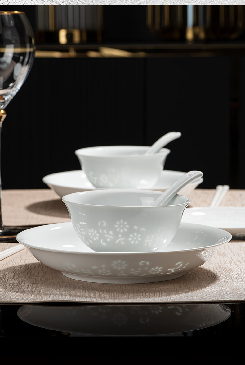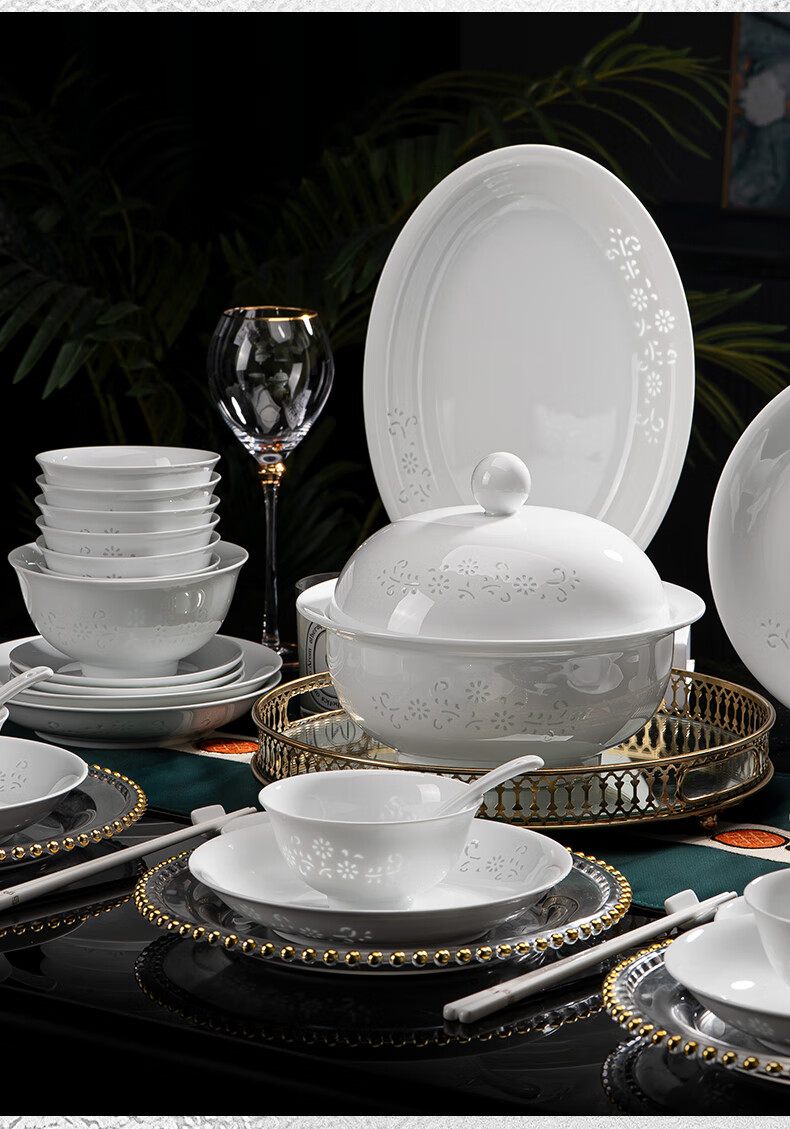 Tao Xianghui ceramic dish set housewarming gift complete set of plates and bowls high-end Chinese Jingdezhen exquisite white porcelain 72-piece tableware 72-piece white exquisite dandelion for 10 people
