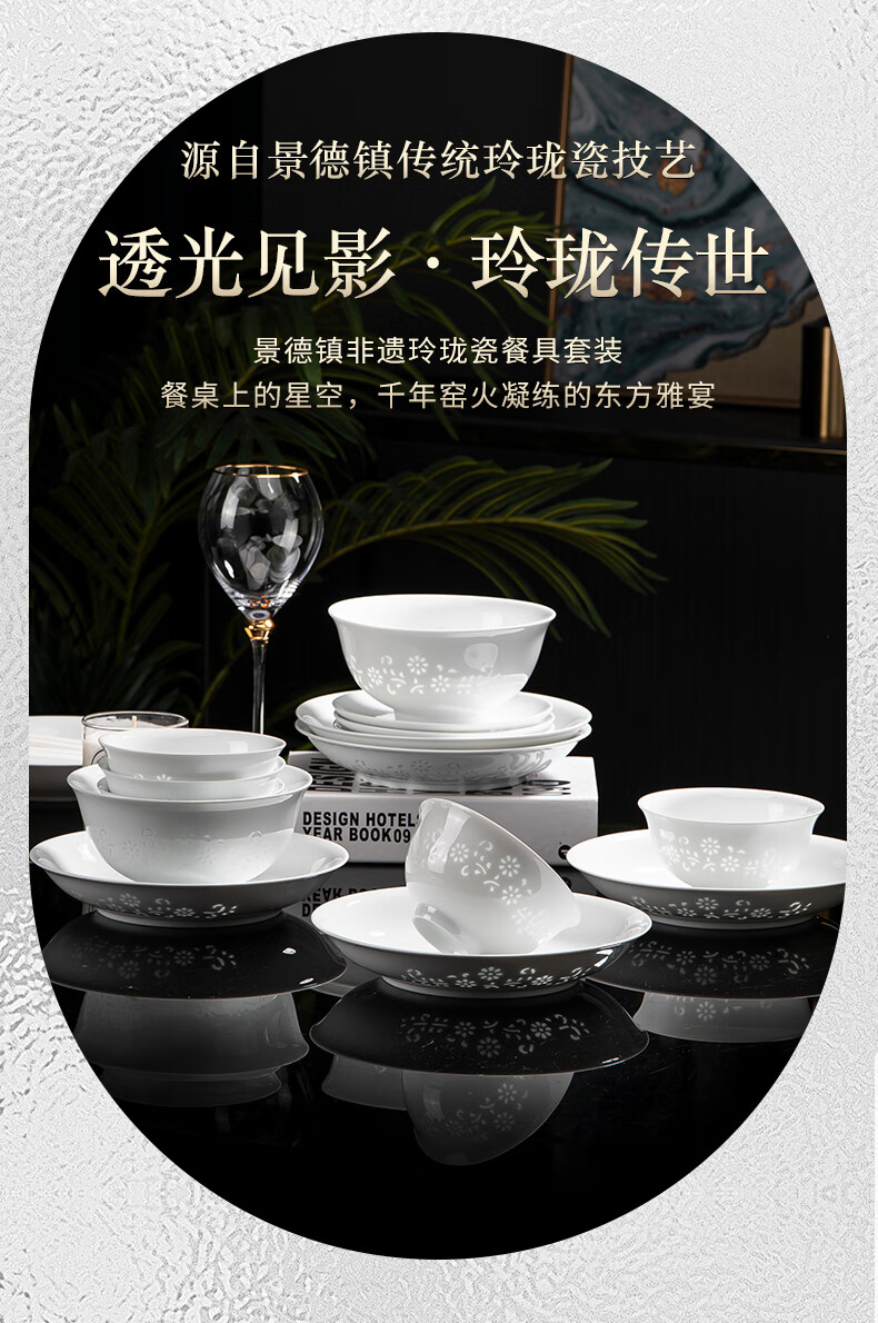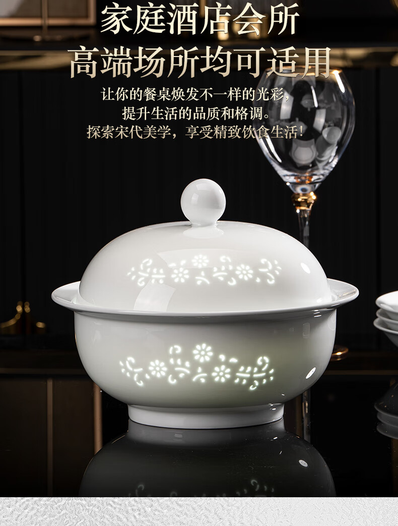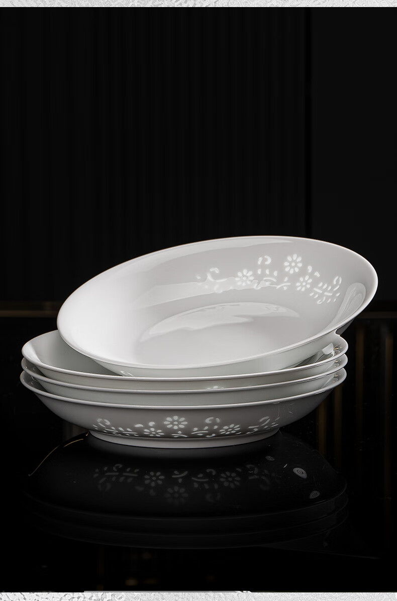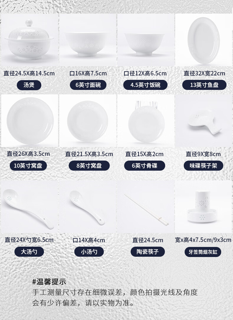 Tao Xianghui ceramic dish set housewarming gift complete set of plates and bowls high-end Chinese Jingdezhen exquisite white porcelain 72-piece tableware 72-piece white exquisite dandelion for 10 people
