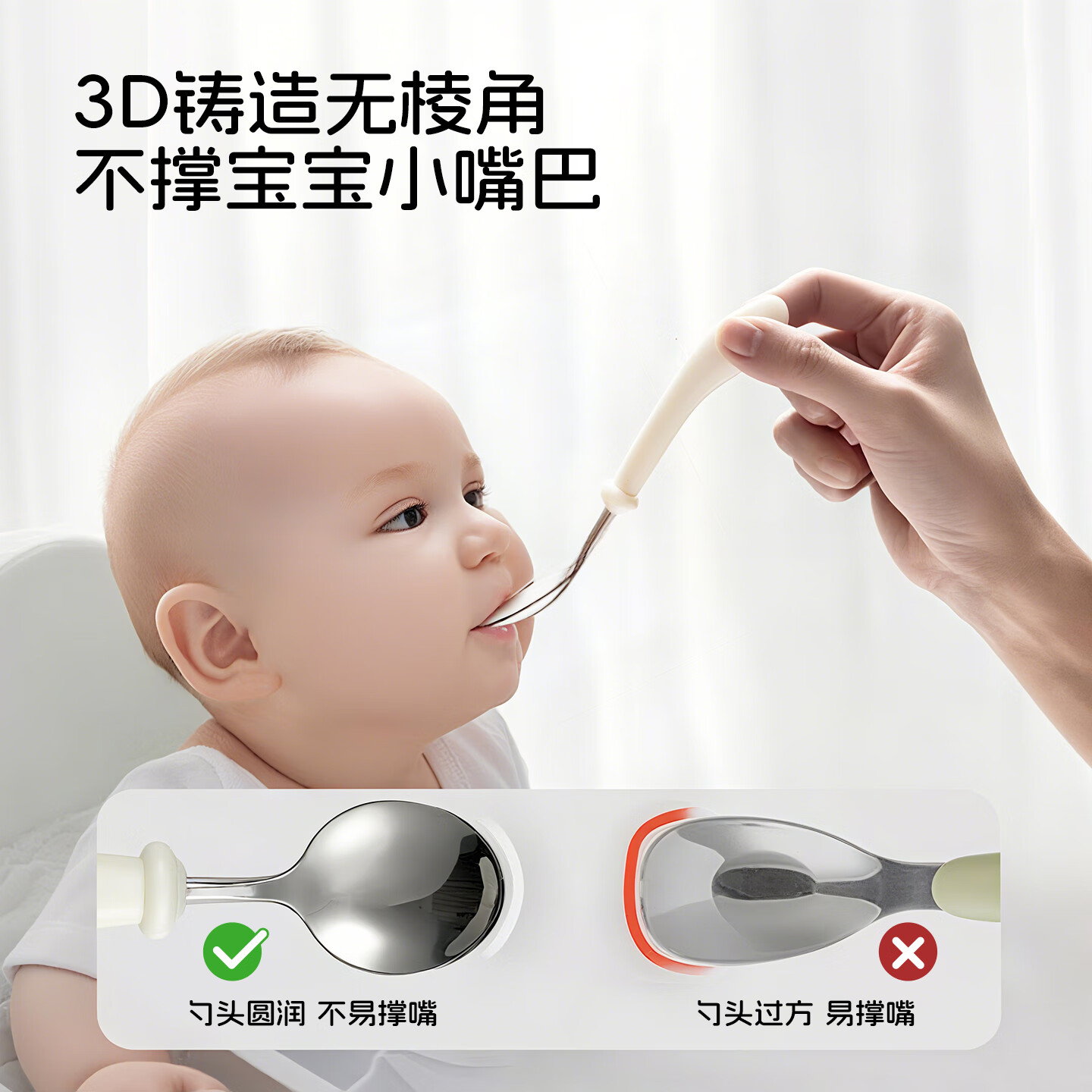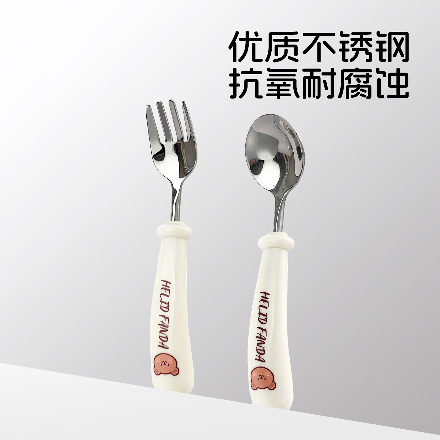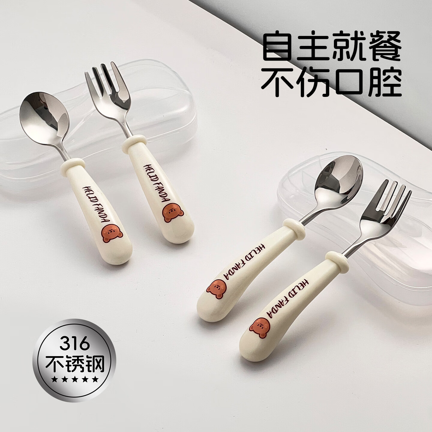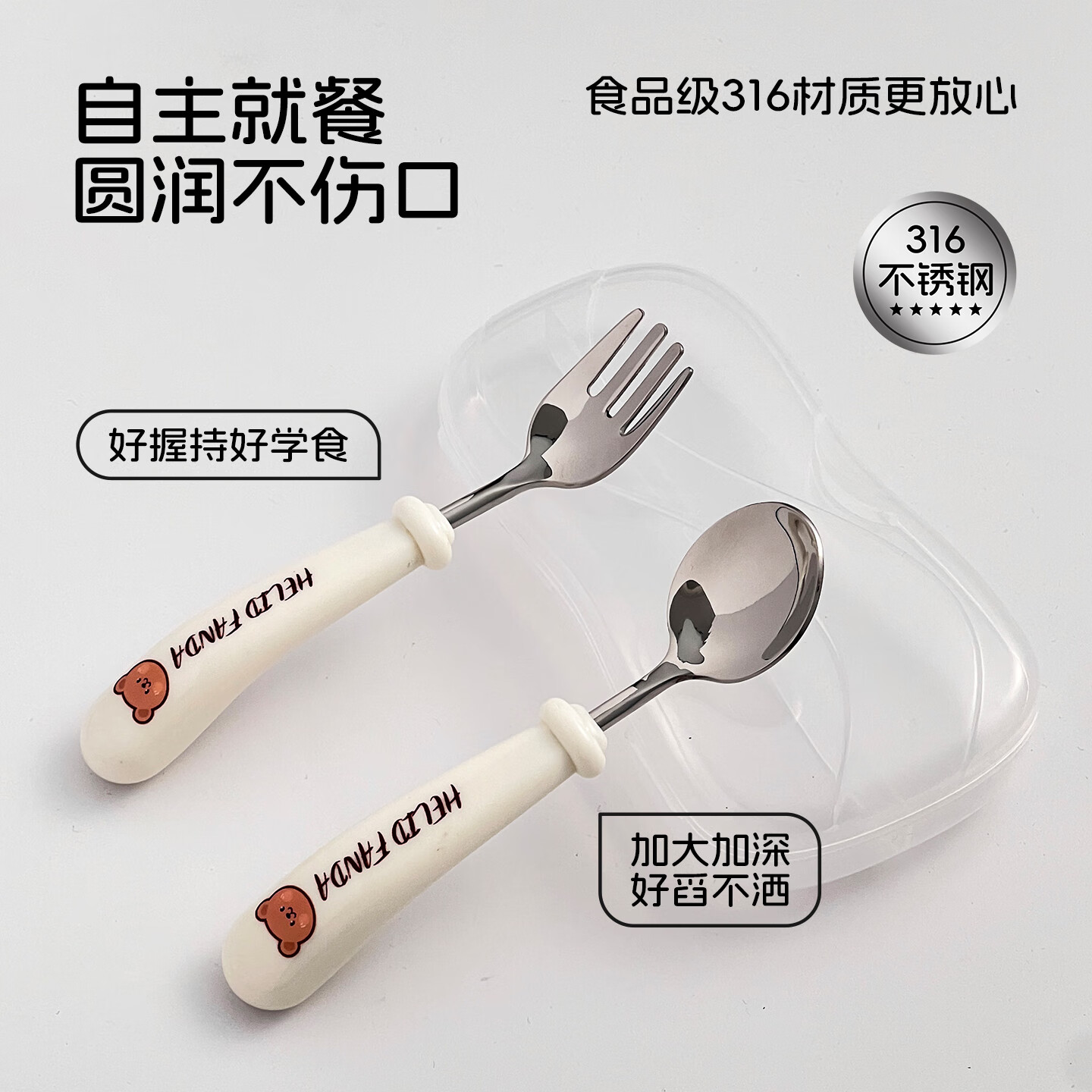 WORTHBUY food grade 316 stainless steel fork and spoon set baby spoon learning to eat training spoon children's meal spoon soup spoon 316 stainless steel straight handle spoon