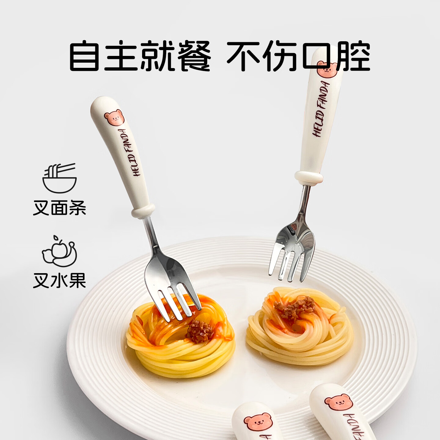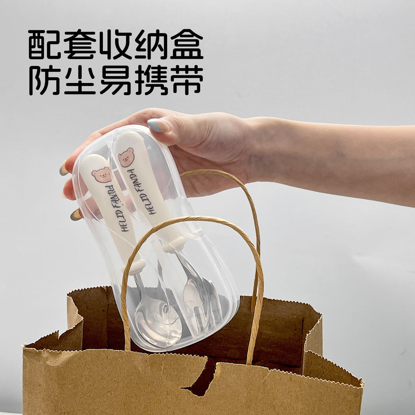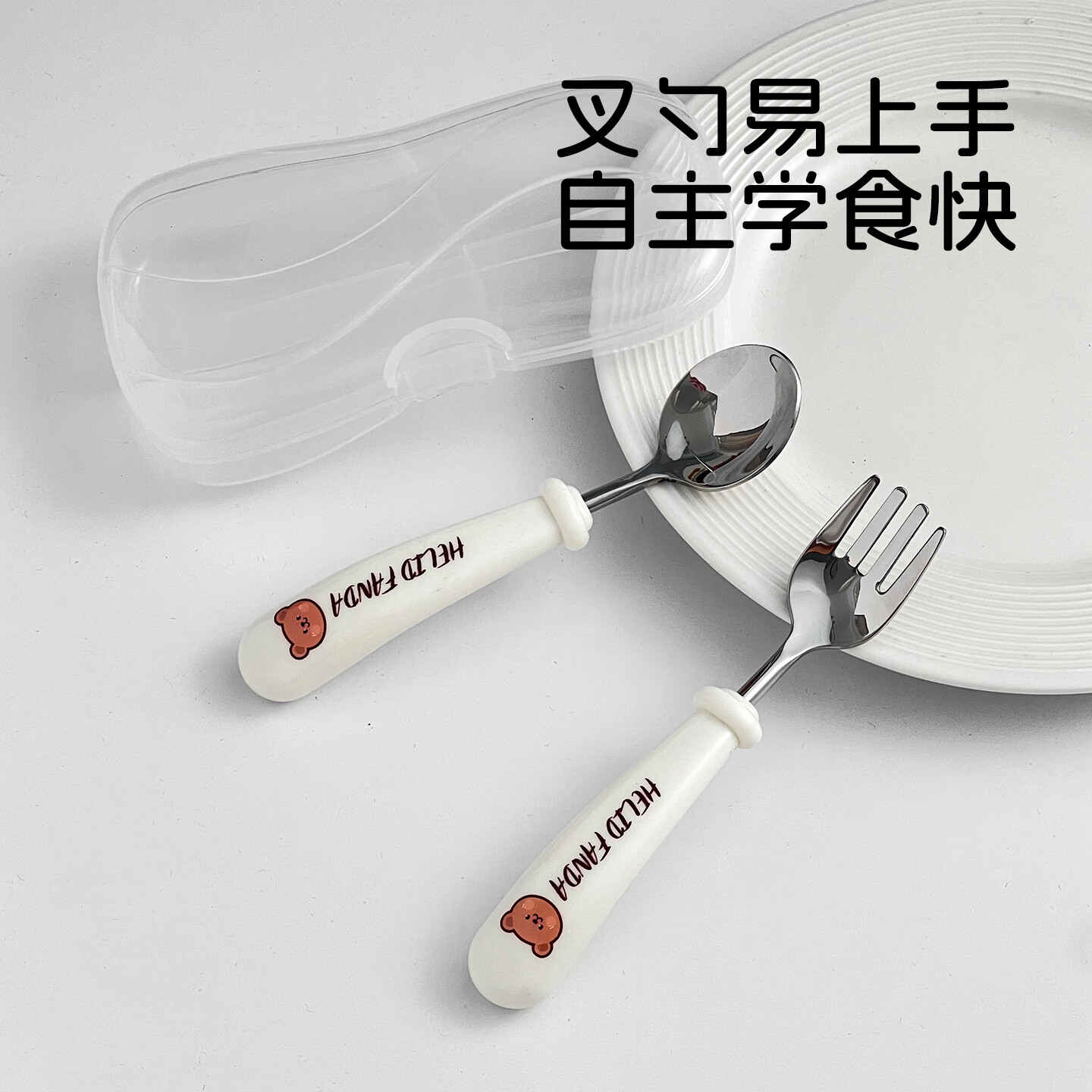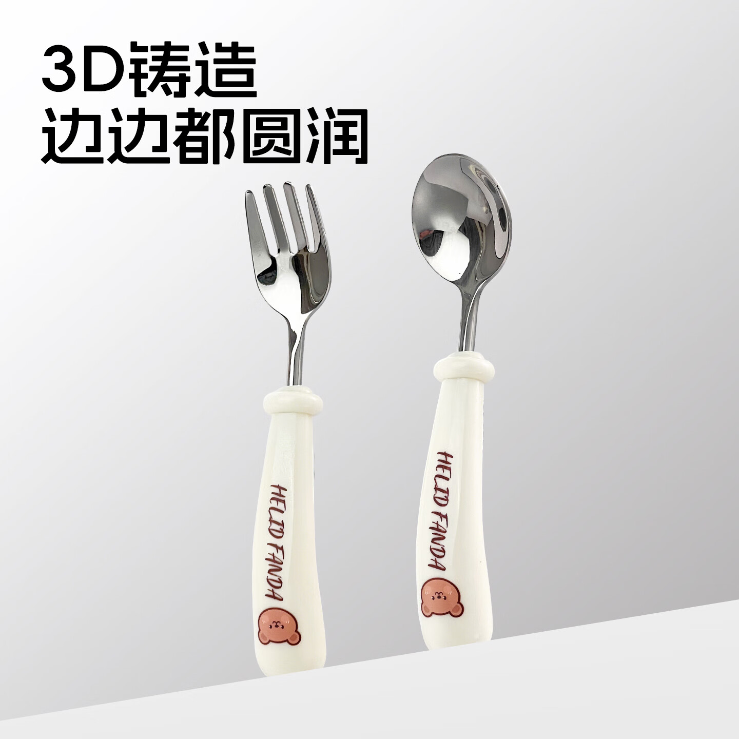 WORTHBUY food grade 316 stainless steel fork and spoon set baby spoon learning to eat training spoon children's meal spoon soup spoon 316 stainless steel straight handle spoon