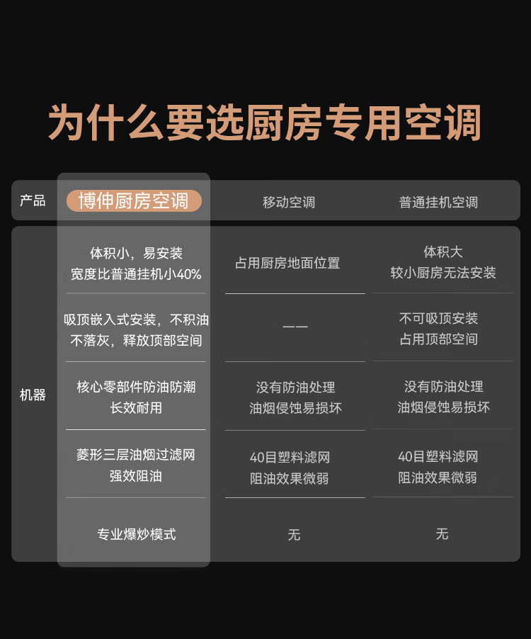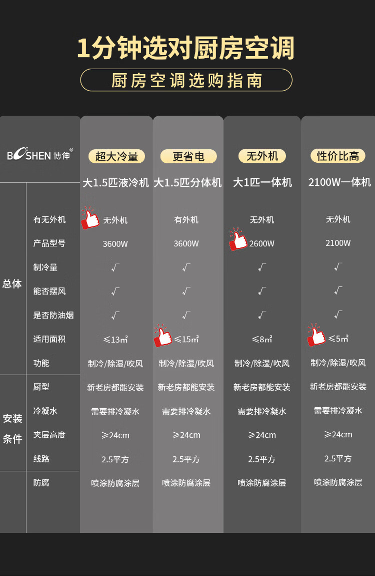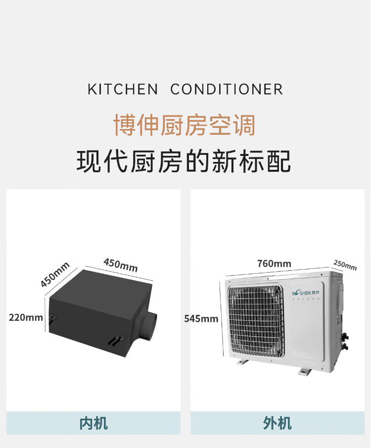 Boshen kitchen air conditioner forced cooling large cooling capacity embedded refrigerator ceiling split type home kitchen special air conditioner large 1.5 HP COOL home series