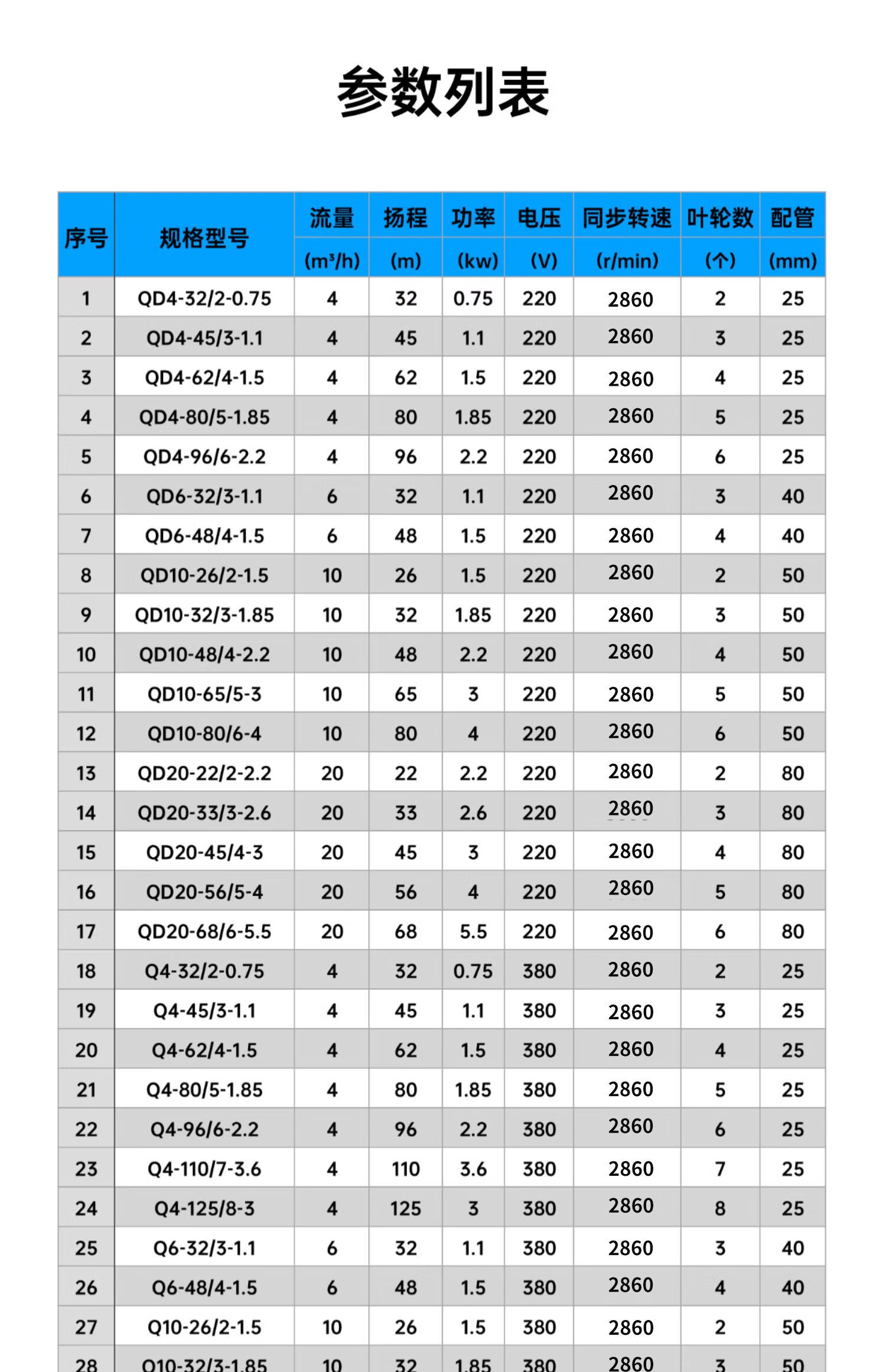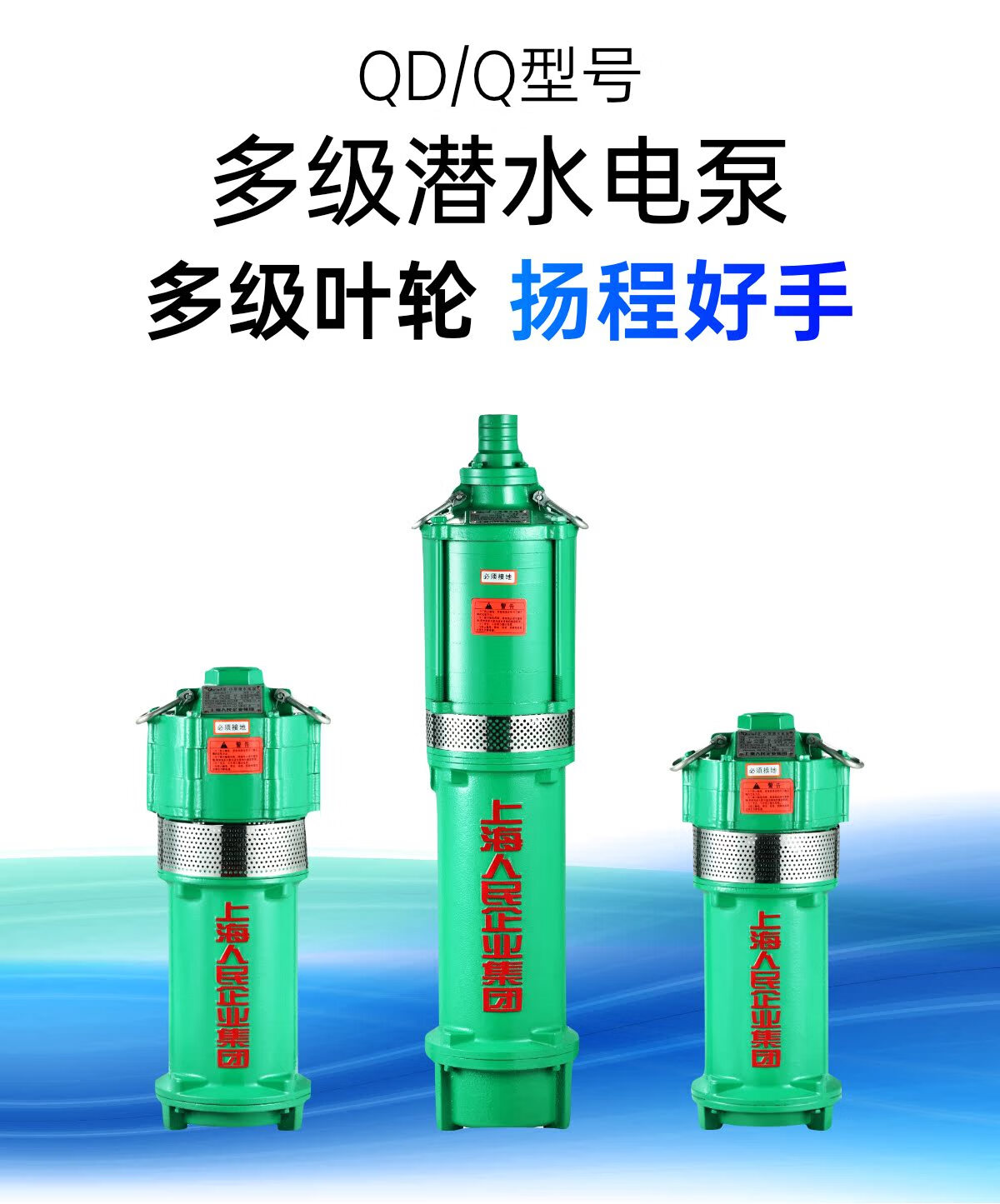 Shanghai People's Water Pump QD multi-stage submersible pump household 220V380V small mouse QD10-36/3-1.85